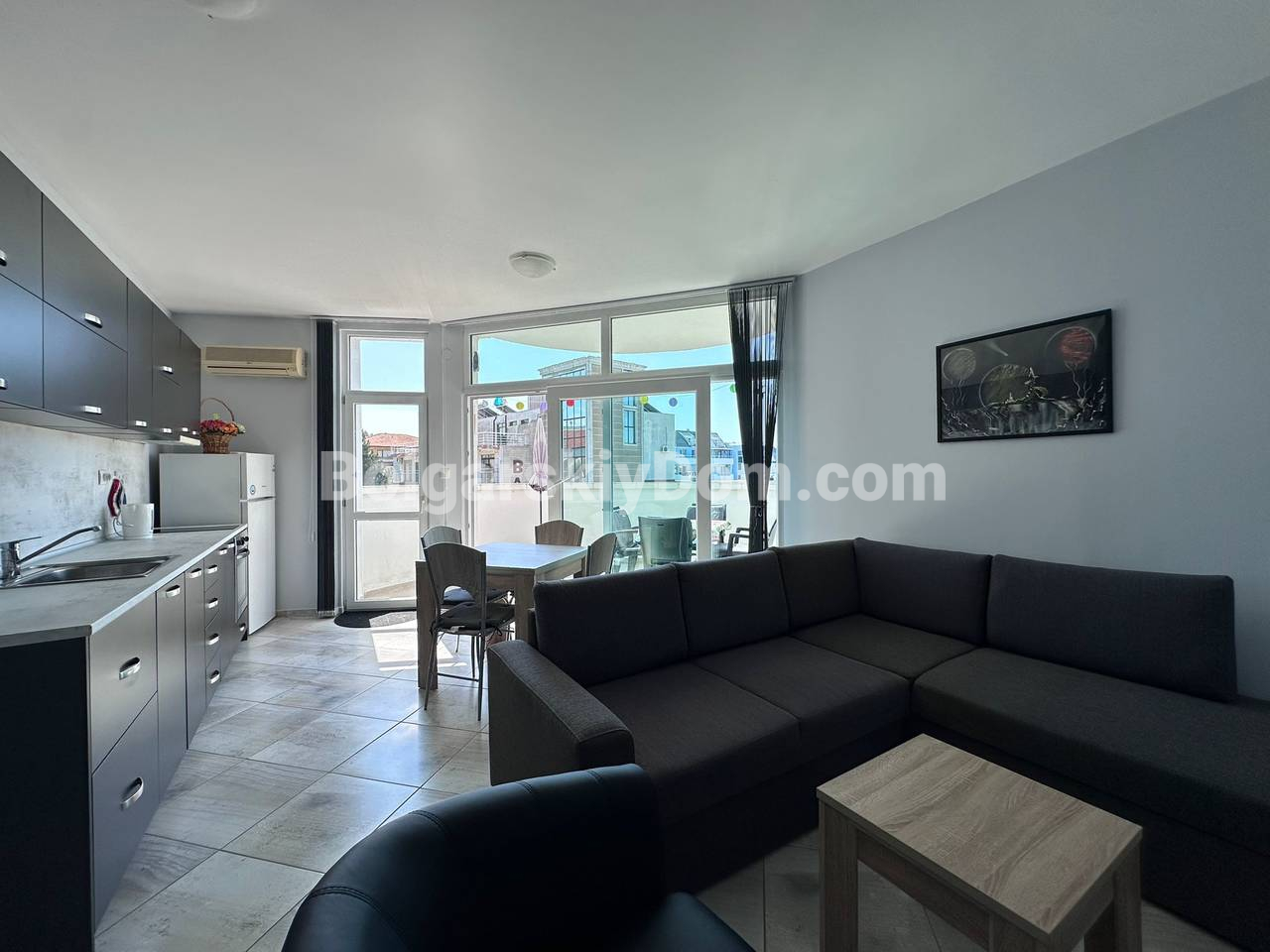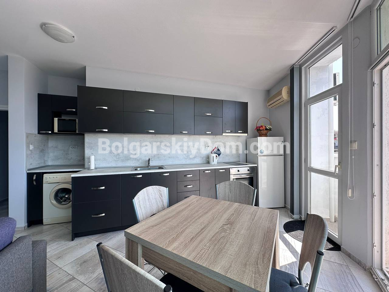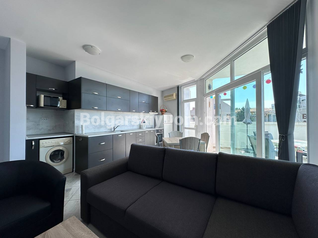 Пополнение каталога, новинка открыта к продаже! В самом центре Солнечного берега предлагается просторная трехкомнатная квартира площадью 97 кв.м. с современным интерьером, мебелью и всей необходимой техникой. Светлые автономные комнаты, две отдельные спальни с кондиционерами, большая кухня, объединенная с обеденной зоной, создают уютное пространство для жизни. Квартира находится в отличном жилом состоянии и полностью готова к заселению. Такса обслуживания 12 евро за кв.м., до пляжа всего 600 метров. Эти и другие преимущества - только для клиентов Болгарского Дома, свяжитесь с нашим агентом!