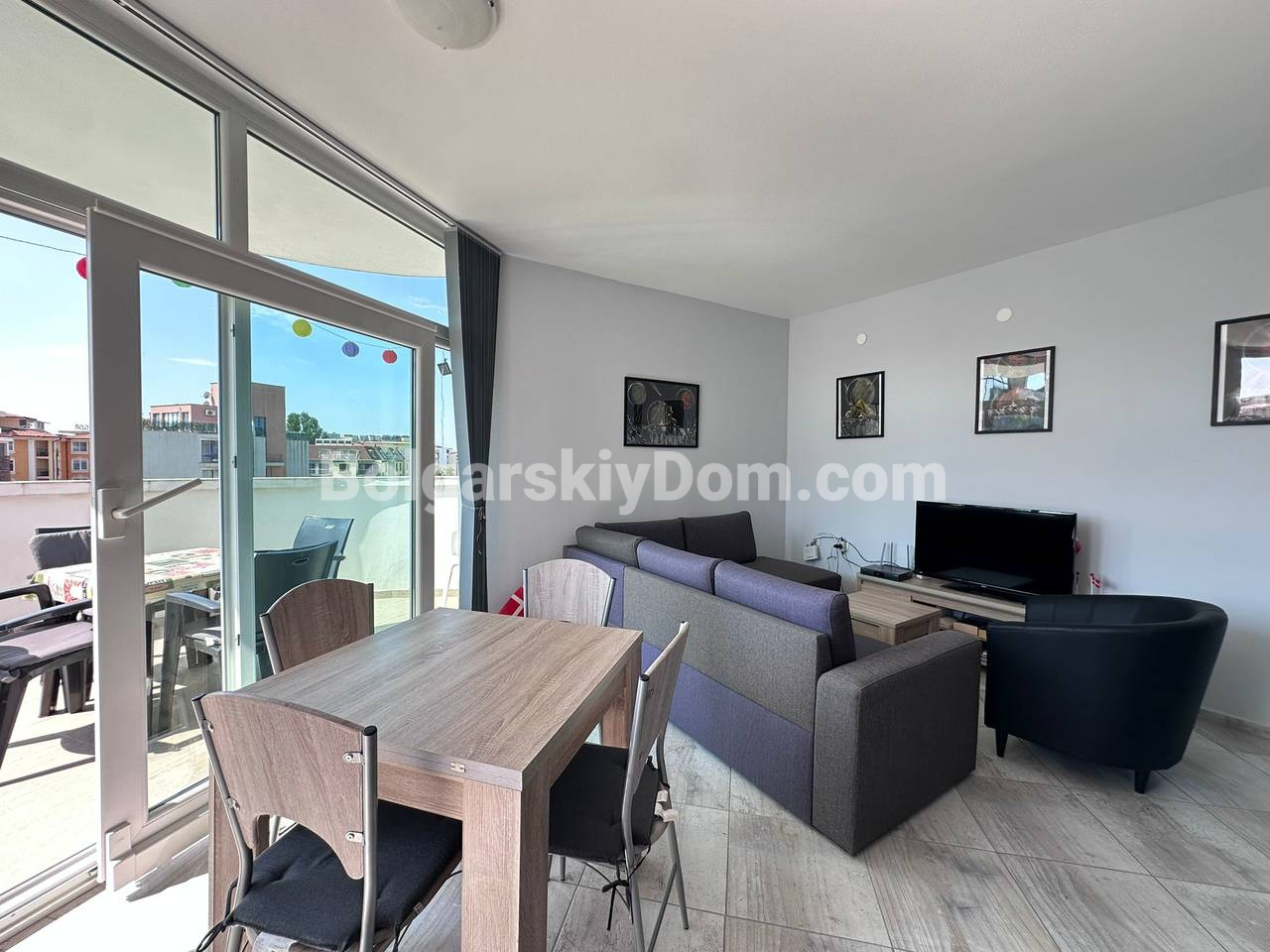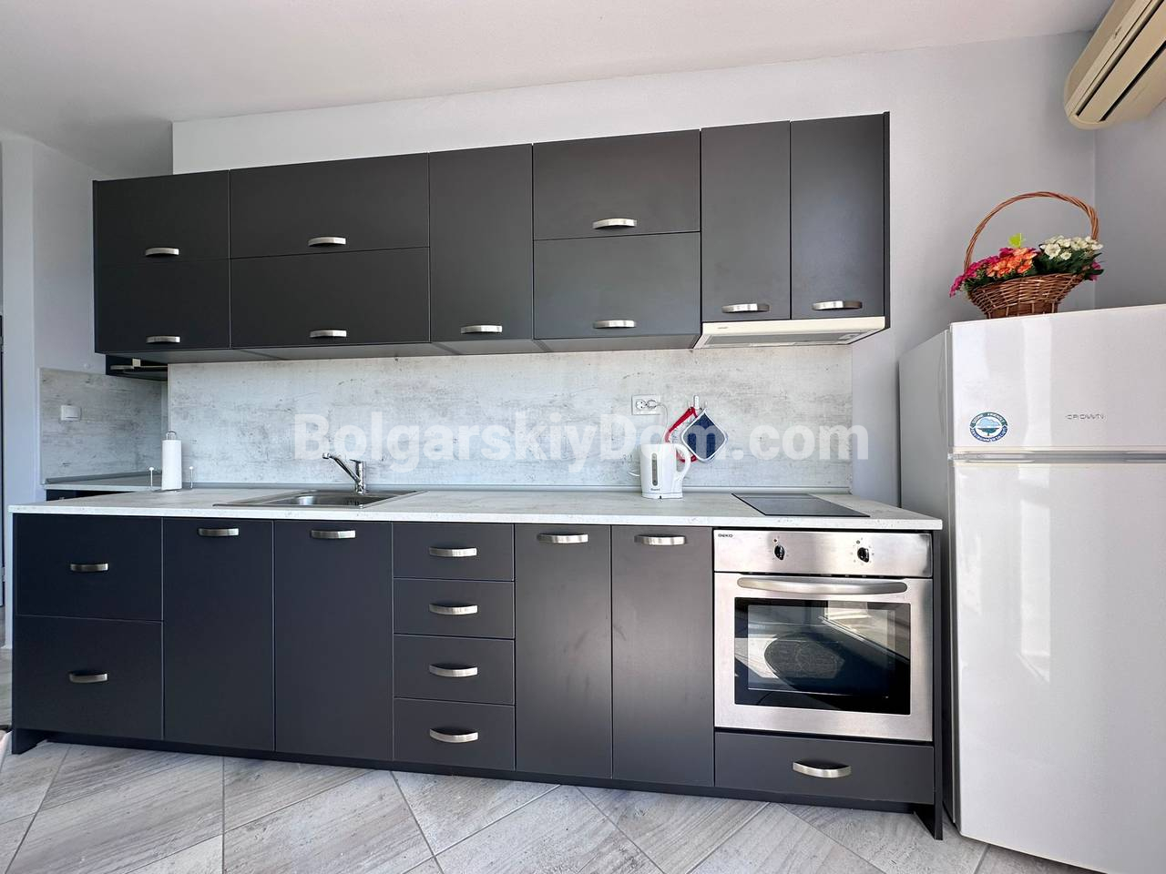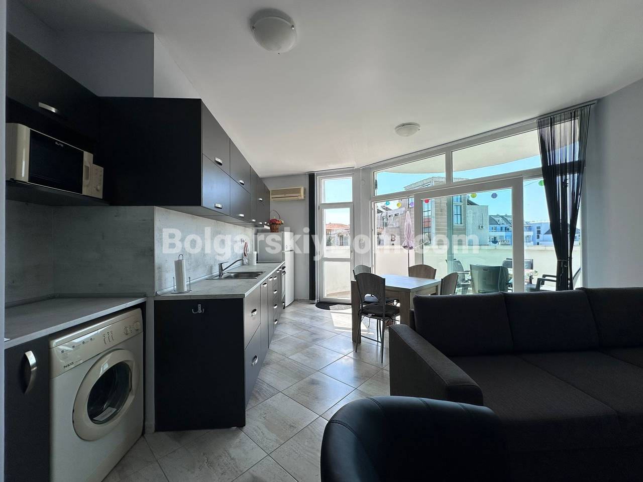 Пополнение каталога, новинка открыта к продаже! В самом центре Солнечного берега предлагается просторная трехкомнатная квартира площадью 97 кв.м. с современным интерьером, мебелью и всей необходимой техникой. Светлые автономные комнаты, две отдельные спальни с кондиционерами, большая кухня, объединенная с обеденной зоной, создают уютное пространство для жизни. Квартира находится в отличном жилом состоянии и полностью готова к заселению. Такса обслуживания 12 евро за кв.м., до пляжа всего 600 метров. Эти и другие преимущества - только для клиентов Болгарского Дома, свяжитесь с нашим агентом!
