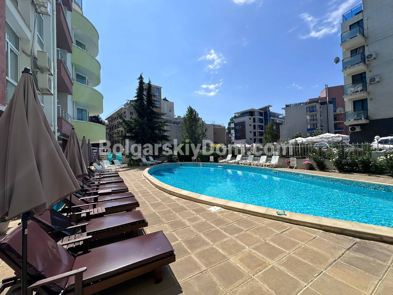 Комплекс Пироп Сити, в котором и расположена предлагаемая недвижимость, располагает закрытой территорией с контролируемым доступом, бассейном, зоной отдыха, рестораном (в летний сезон), ухоженным двором и удобной парковкой. Рядом детская площадка. В пешей доступности магазины MM, Aldo и супермаркет Lidl, и не только: локация в центре курорта открывает перед вами неограниченные инфраструктурные бонусы. Квартира доступна, звоните!