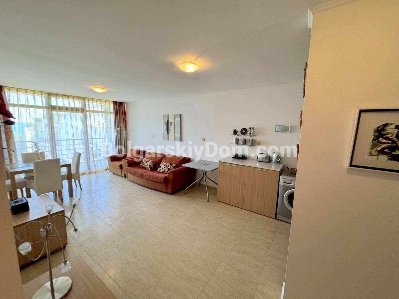 Вашему вниманию уникальное предложение от АН Болгарский Дом - стильный апартамент с одной спальней в элитном комплексе Диамант, расположенный на первой линии моря в Святом Власе. Пространство площадью 75 квадратных метров на третьем этаже включает отличную для проживания планировку: светлая зала с кухонной зоной плавно перетекает в уютную террасу с панорамным видом на море и яхтенную пристань Марина Диневи. Спальня с комфортной мебелью и просторный санузел дополняют атмосферу уюта. Апартамент полностью укомплектован современной техникой и готов к вашему переезду, гарантируя беззаботное наслаждение жизнью у моря.