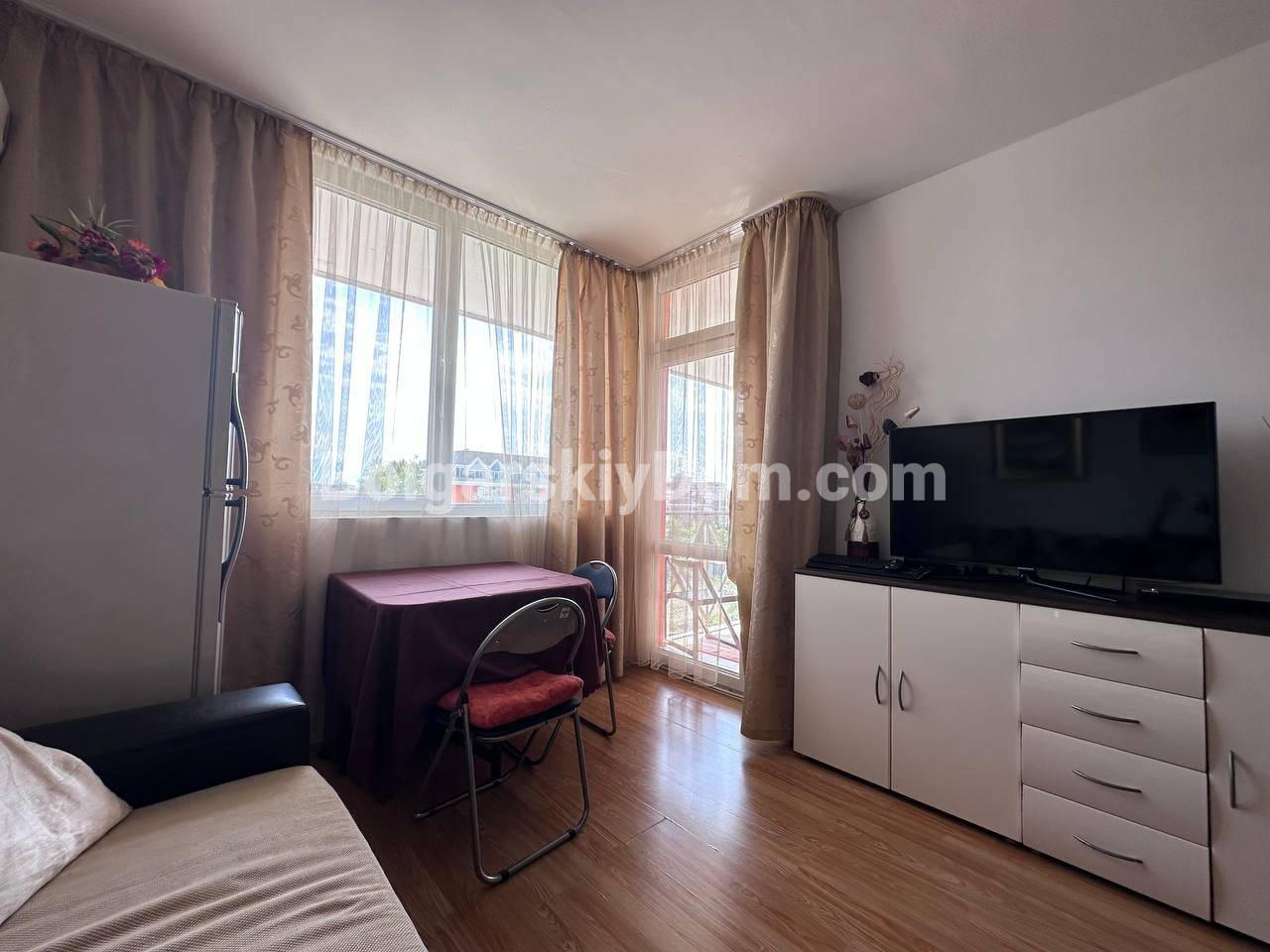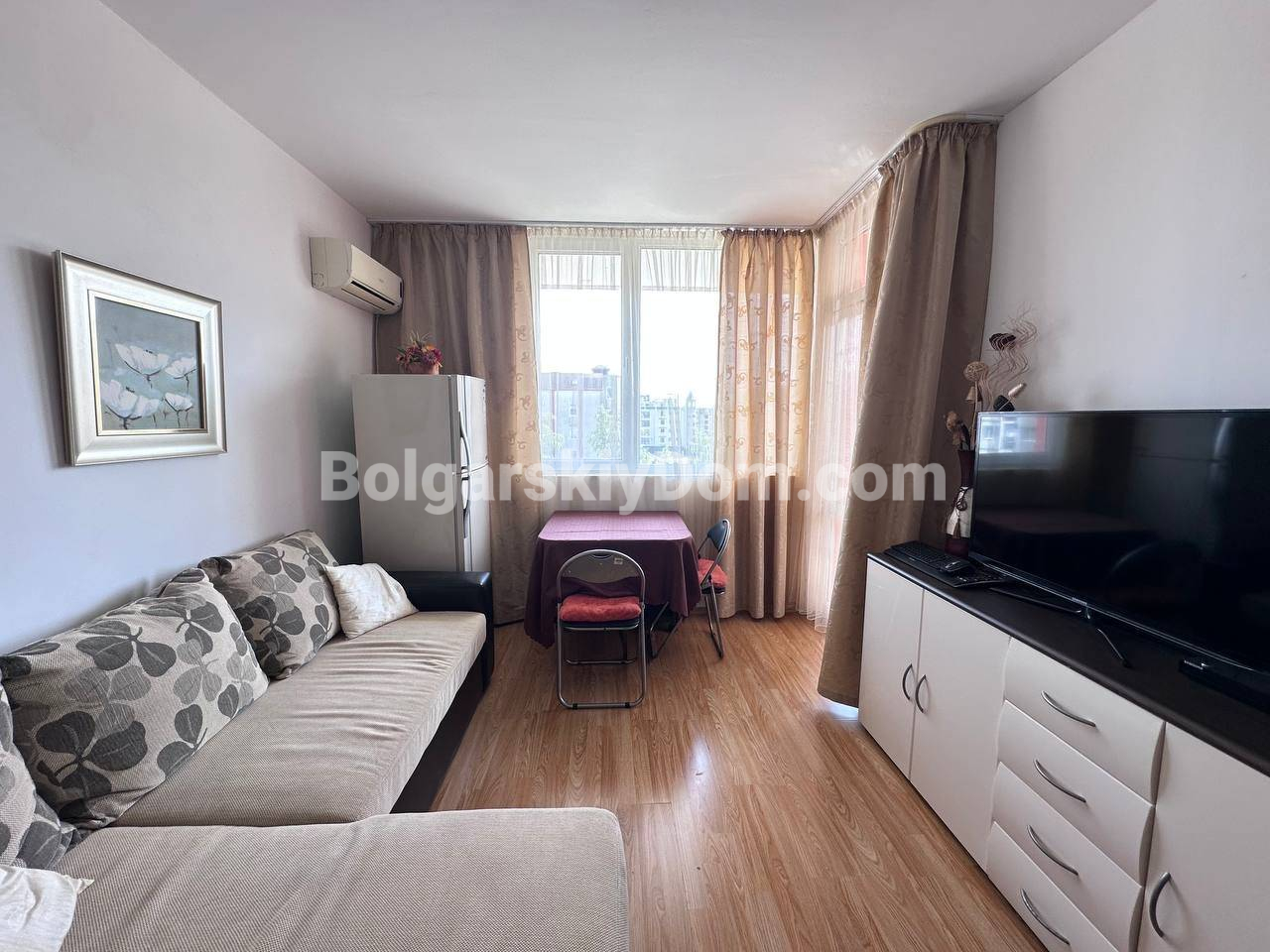 Вид на море и отличная цена! Компания Болгарский Дом предлагает трехкомнатную квартиру площадью 59 кв.м на пятом этаже комплекса Гербер 3 в Солнечном Береге. Полностью укомплектованная мебелью и техникой, с просторным балконом, квартира готова к заселению. Удобная планировка включает залу с кухонной зоной, две спальни и санузел. Акт 16 и индивидуальные счета на воду и электричество обеспечивают прозрачные расходы. Круглогодичная работа комплекса идеально подходит для постоянного проживания или сдачи в аренду, причем все 4 сезона.