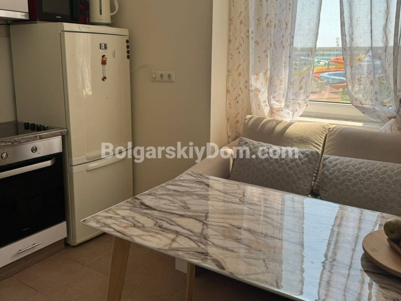 Рациональный формат для отдыха, инвестиций и проживания! В продажу от АН Болгарский Дом запускаем трехкомнатную квартиру квадратурой 65 кв.м., которая находится на четвертом этаже комплекса Холидей Форт Нокс в Солнечном Береге. Жилье с отдельными комнатами включает гостиную, компактную кухню, две спальни, санузел и балкон для вечернего релакса, на котором уже оформлена зона отдыха. Полностью меблированная, с приятным оснащением и в отличном состоянии, квартира готова к заселению.