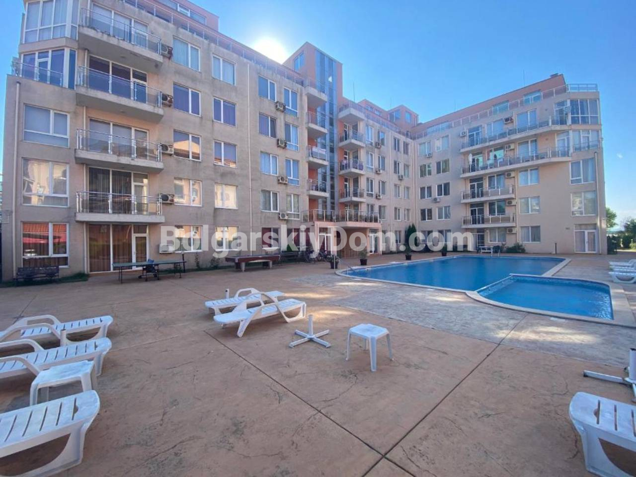 Вид на бассейн и отличный формат для семьи! АН Болгарский Дом представляет трехкомнатную квартиру 86 кв.м на втором этаже комплекса Балкан Бриз в Солнечном Береге. Апартамент с лифтом включает зону прихожей, светлую гостиную с кухонной и обеденной частями, две отдельные спальни, ванную с душем и балкон для повседневного отдыха. Полностью укомплектован мебелью и бытовой техникой, в отличном состоянии, что позволяет сразу начать жить или получать доход от аренды. Эргономичная планировка и акт 16 добавляют уверенности в покупке. Обратите внимание на прайс и не медлите: звоните!