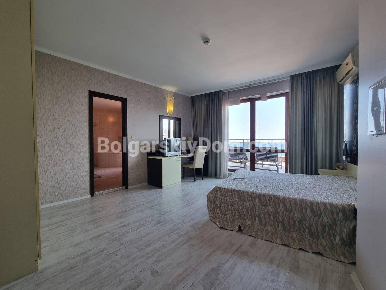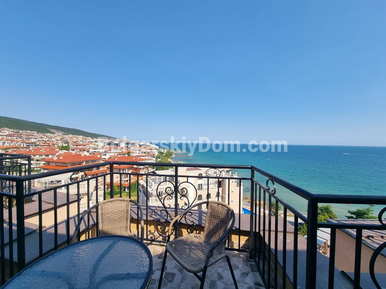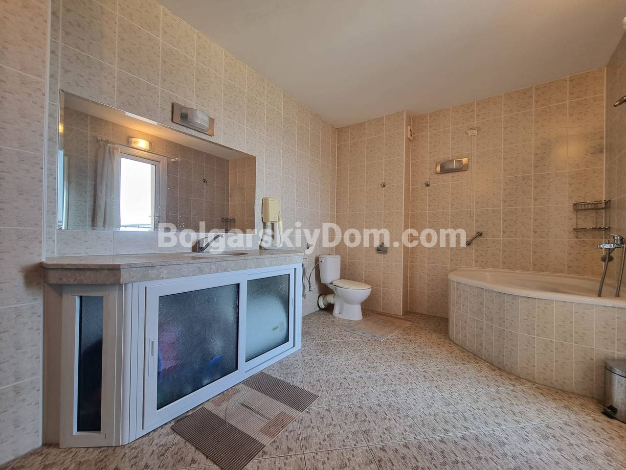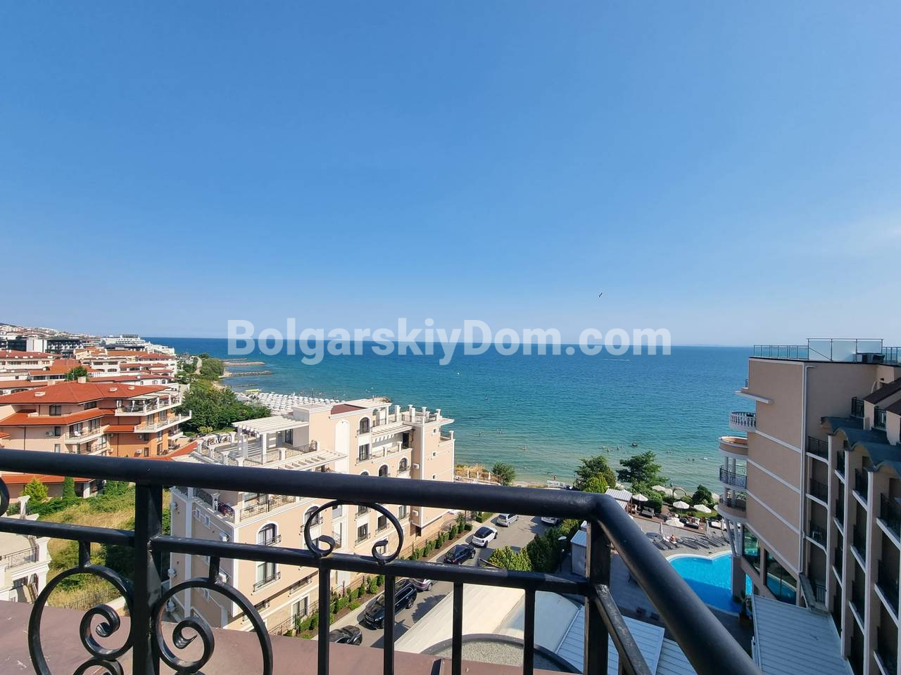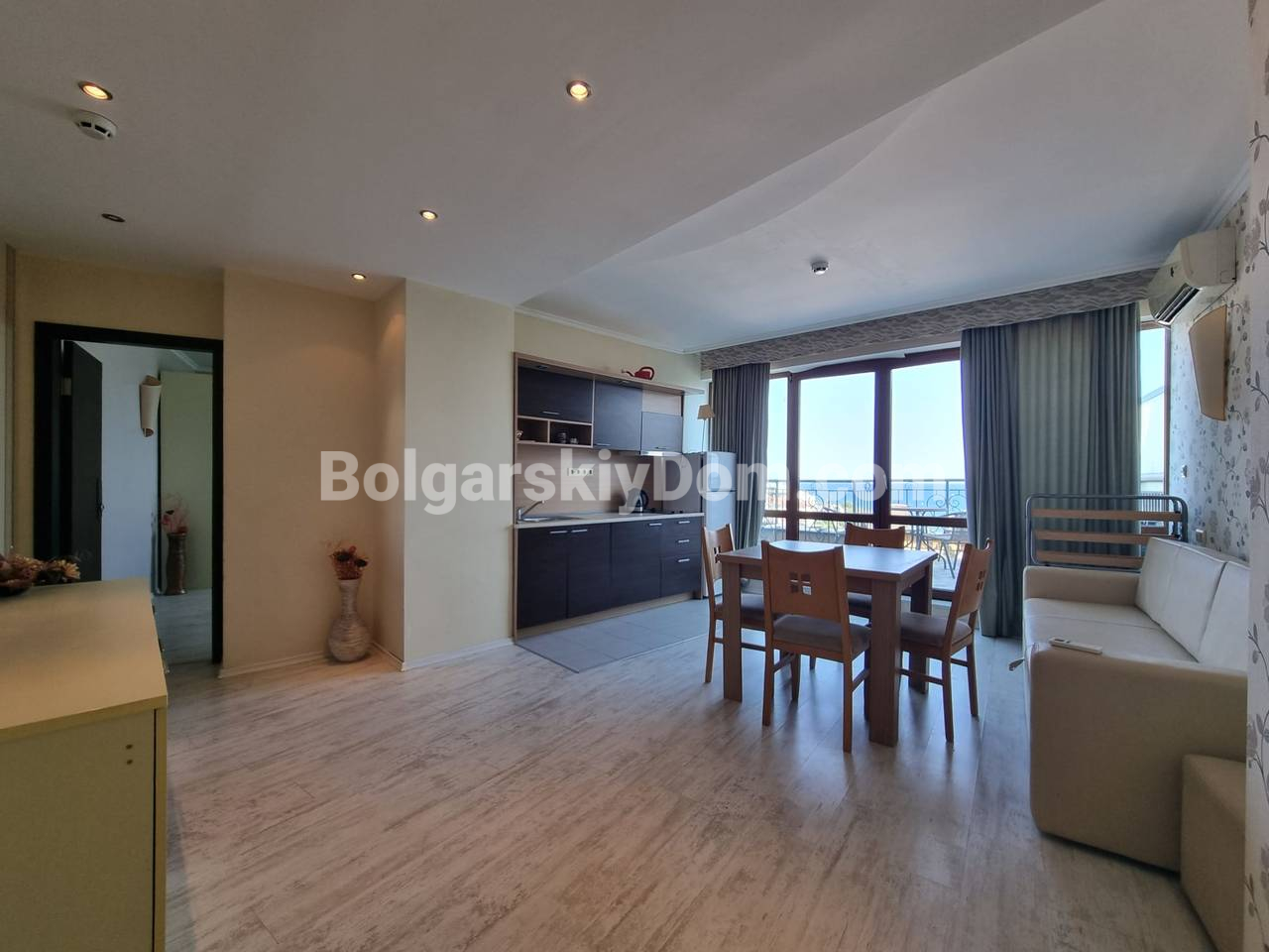 Премиум-сегмент с фронтальным видом на море! АН Болгарский Дом представляет большую двухкомнатную квартиру метражом 111 кв.м на шестом этаже комплекса Гранд Хотел Святой Влас в Святом Власе. Апартамент включает светлую гостиную с кухонным блоком и зоной для обедов, просторную спальню, большой санузел с душем и ванной, плюс огромную террасу, где можно встречать рассветы практически над водой! Полностью укомплектована мебелью и техникой, в безупречном состоянии, что позволяет сразу организовать жизнь или запустить аренду. Высокая эргономика и высокая этажность. Ждем вашего звонка!