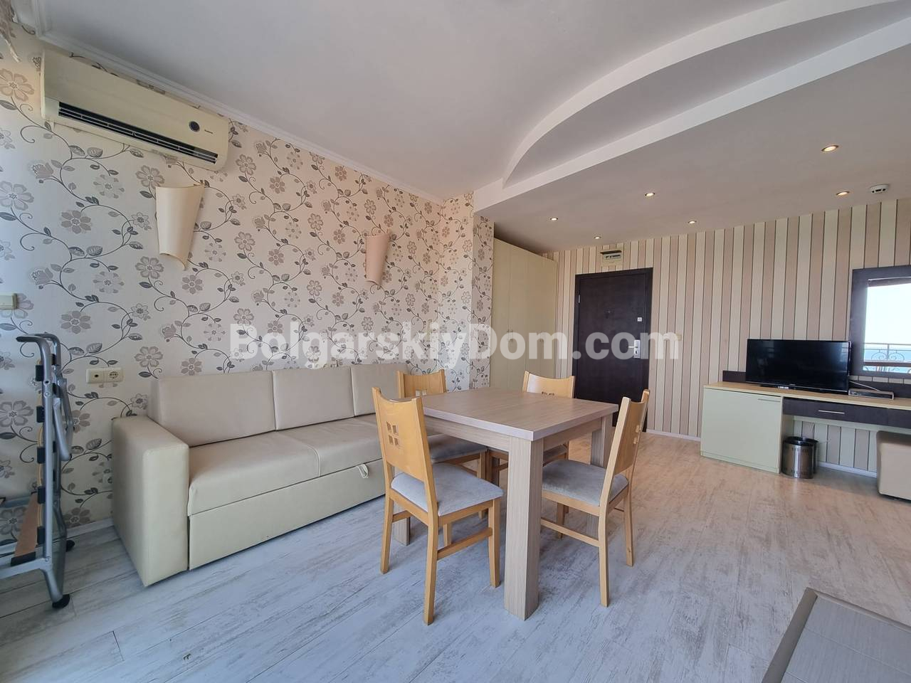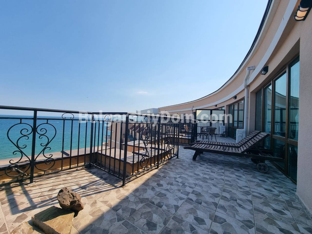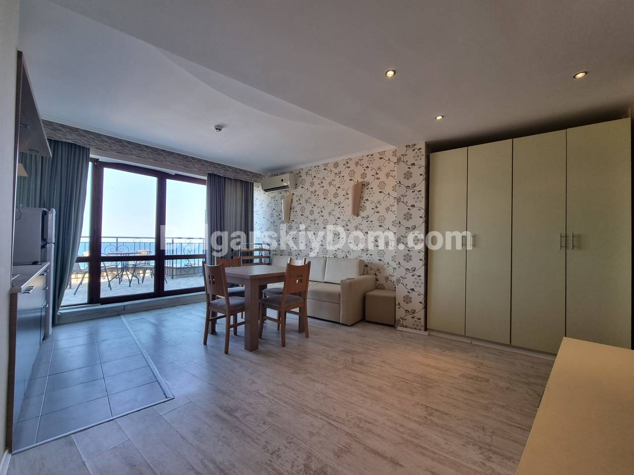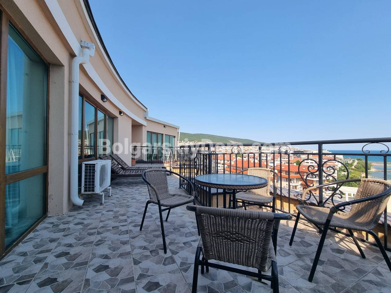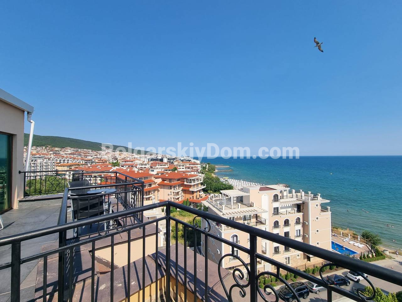 Премиум-сегмент с фронтальным видом на море! АН Болгарский Дом представляет большую двухкомнатную квартиру метражом 111 кв.м на шестом этаже комплекса Гранд Хотел Святой Влас в Святом Власе. Апартамент включает светлую гостиную с кухонным блоком и зоной для обедов, просторную спальню, большой санузел с душем и ванной, плюс огромную террасу, где можно встречать рассветы практически над водой! Полностью укомплектована мебелью и техникой, в безупречном состоянии, что позволяет сразу организовать жизнь или запустить аренду. Высокая эргономика и высокая этажность. Ждем вашего звонка!
