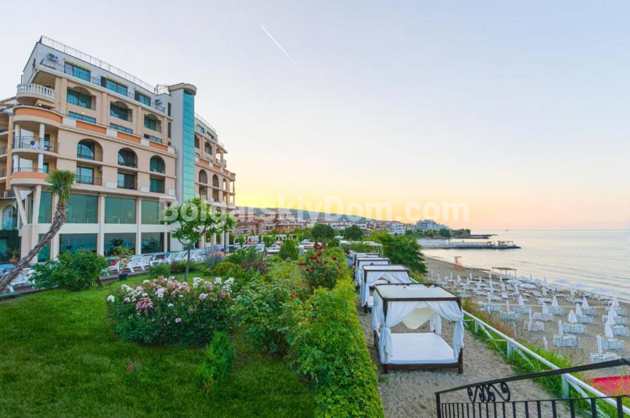 Гранд Хотел Святой Влас построен на первой линии в 50 метрах от пляжа, в престижном районе Юрта. Комплекс имеет частный пляж, два бассейна с детской секцией и спа-центр с сауной, а плата за обслуживание 40 евро за кв.м в год покрывает круглосуточную охрану и уход за озелененной территорией закрытого типа. В двух шагах ресторан в комплексе с болгарскими блюдами и фитнес-зал. Центр Святого Власа с магазинами и кафе в паре минут ходьбы, а до Солнечного Берега или Несебра можно добраться за 10 минут на автобусе для экскурсий и шопинга.