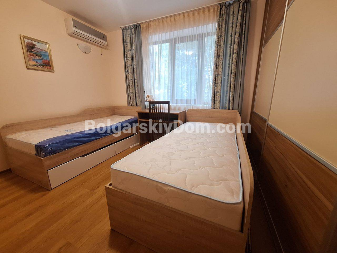 Отличный вариант для семьи по разумной цене! АН Болгарский Дом открывает к продаже трехкомнатную квартиру 93 кв.м на втором этаже комплекса Шато Дел Мар в Солнечном Береге. Жилье включает коридор, гостиную с кухонным уголком и обеденной зоной, две отдельные спальни, ванную комнату с ванной и террасу с видом на бассейн для ежедневного отдыха. Полностью укомплектовано мебелью и техникой, в готовом к заселению состоянии, что позволяет сэкономить на обустройстве и сразу получать доход от аренды при желании инвестировать. Удобная компоновка и низкая плата за обслуживание 9,6 евро за кв.м в год, включая уход за общими зонами, делают покупку практичной для круглогодичного использования. В доме есть лифт.