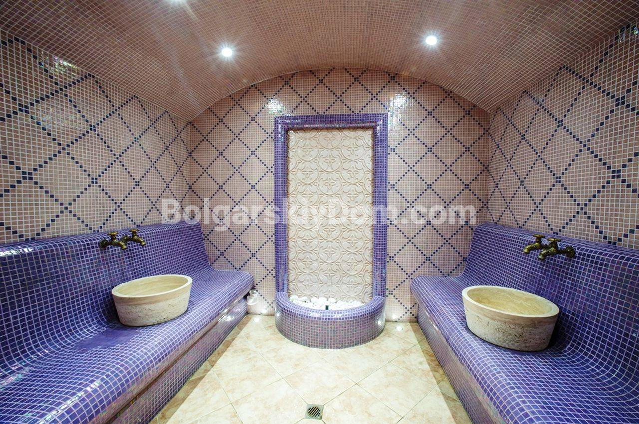 Изида Палас 2 предлагает жильцам инфраструктуру уровня люкс: два открытых бассейна, крытый бассейн с подогревом, ухоженный сад, теннисный корт, футбольное поле, зону барбекю и стильное лобби. Для полного релакса предусмотрен СПА-центр с финской сауной из гималайской соли, паровой баней, инфракрасной сауной, массажными кабинетами и зоной отдыха под «звёздным небом». В стоимость годовой таксы обслуживания (1608 евро) включено бесплатное посещение СПА в определенные часы.