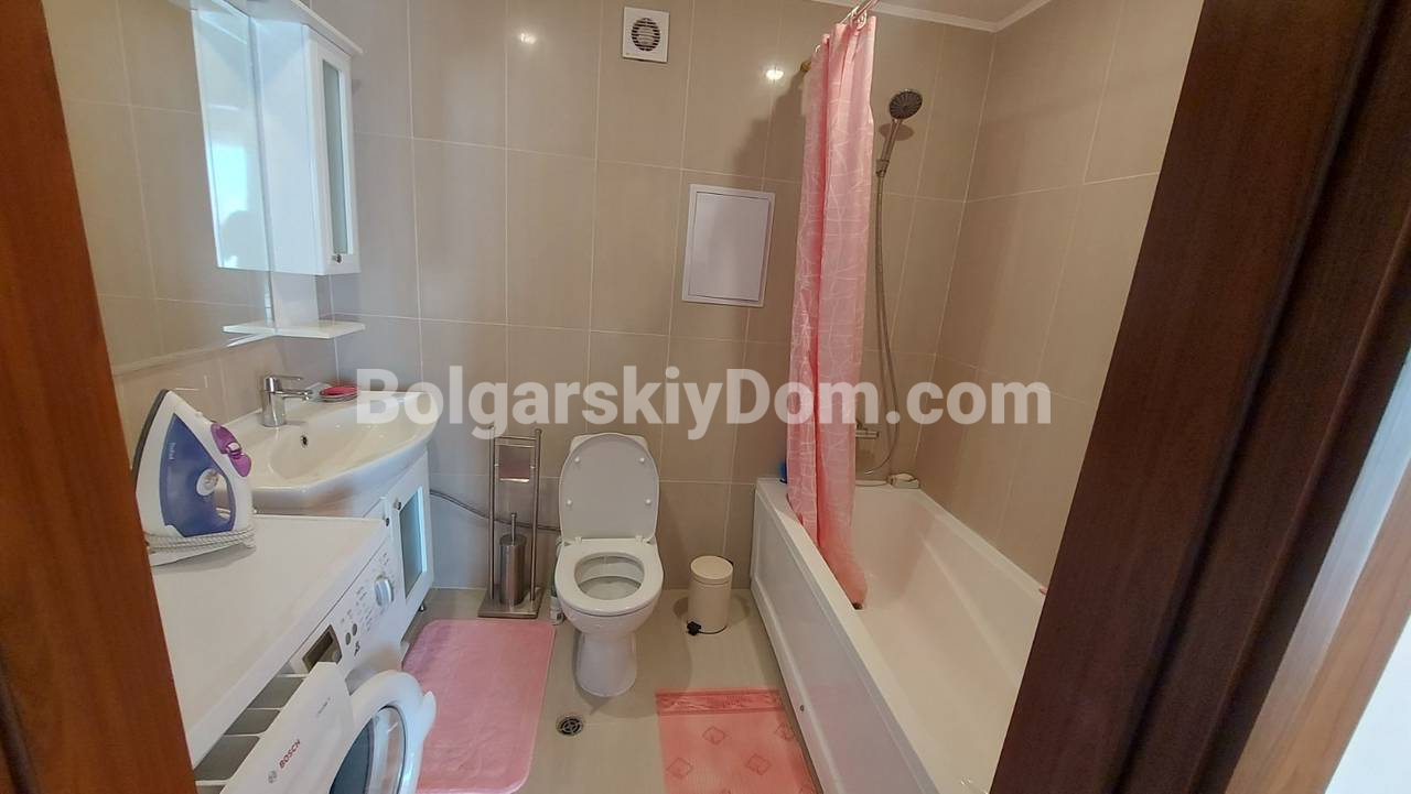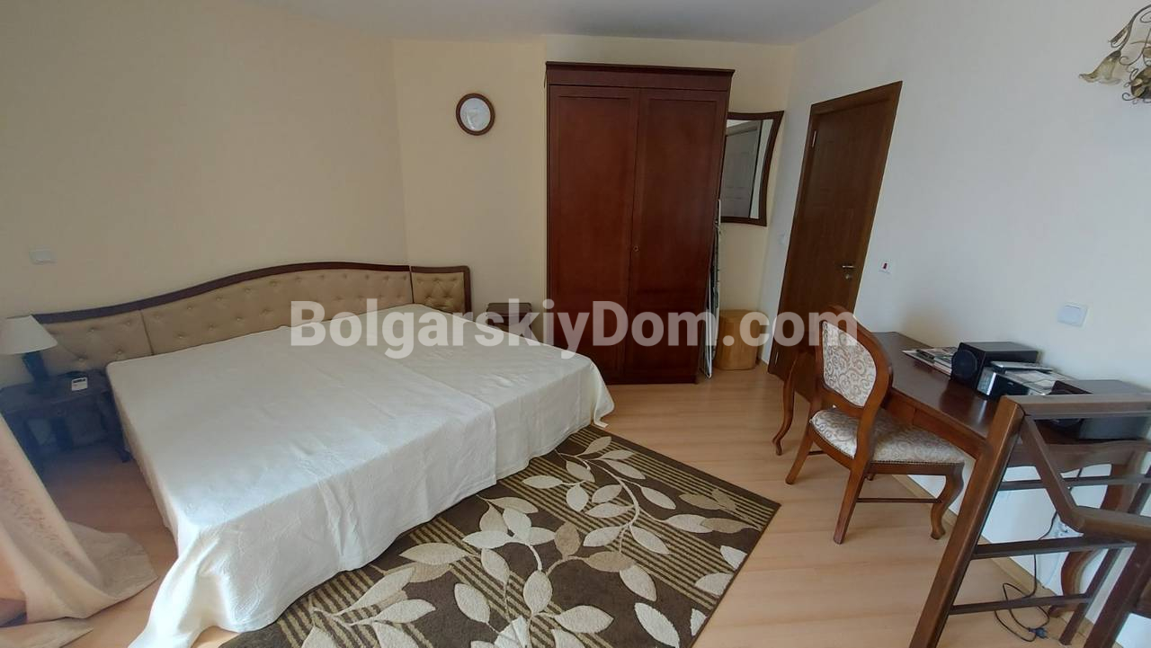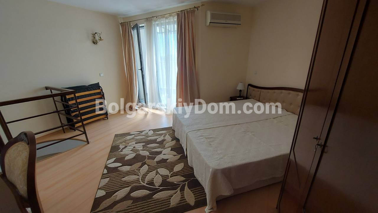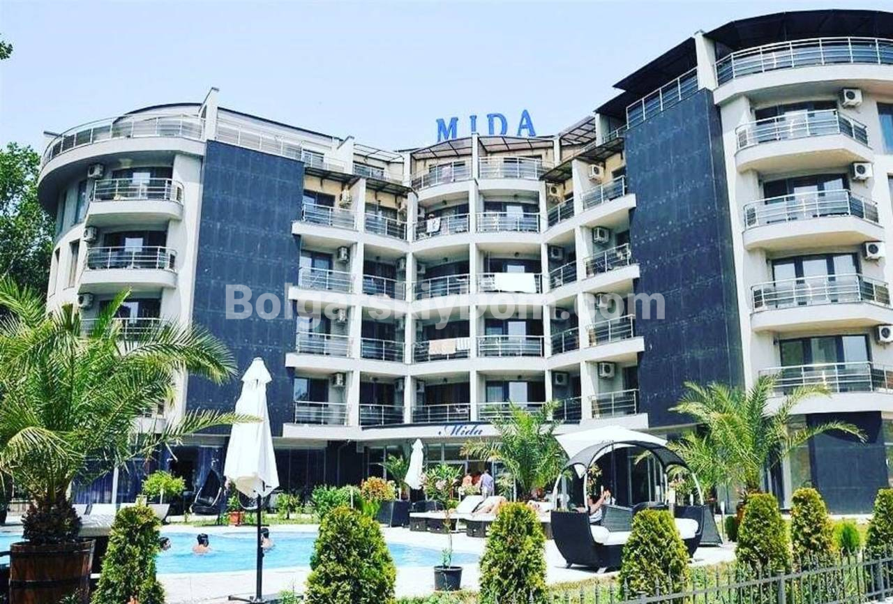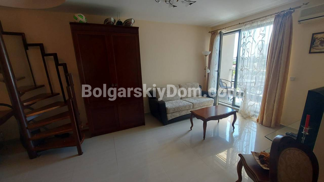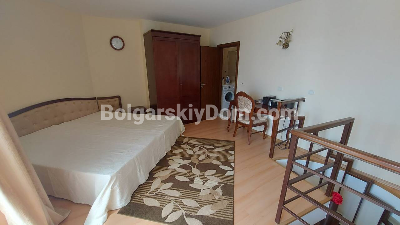 Уникальное предложение по параметрам локации, обустройства и прайса! Представляем двухкомнатный мезонет в жилом комплексе Мида в самом сердце Солнечного берега, квартал Чайка. Уникальное предложение для тех, кто ищет просторное жилье в шаговой доступности от пляжа, автовокзала, магазинов и ресторанов, да еще и по стоимости менее 1000 евро за кв.м. Квартира площадью 96 кв.м расположена на 5 этаже из 6 и продается с полным комплектом мебели и техники. В стоимость включен подземный гараж — большая редкость для центра курорта.