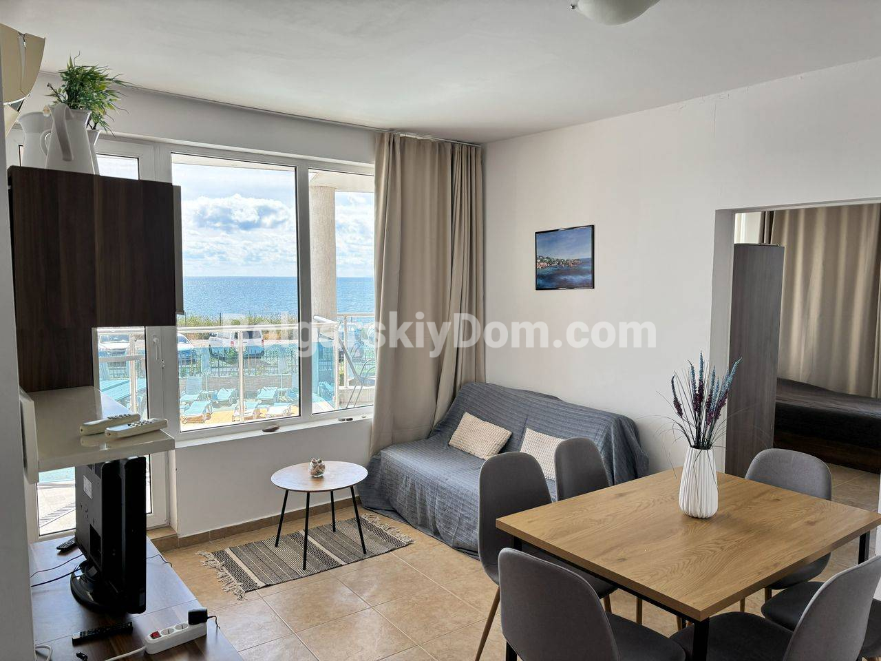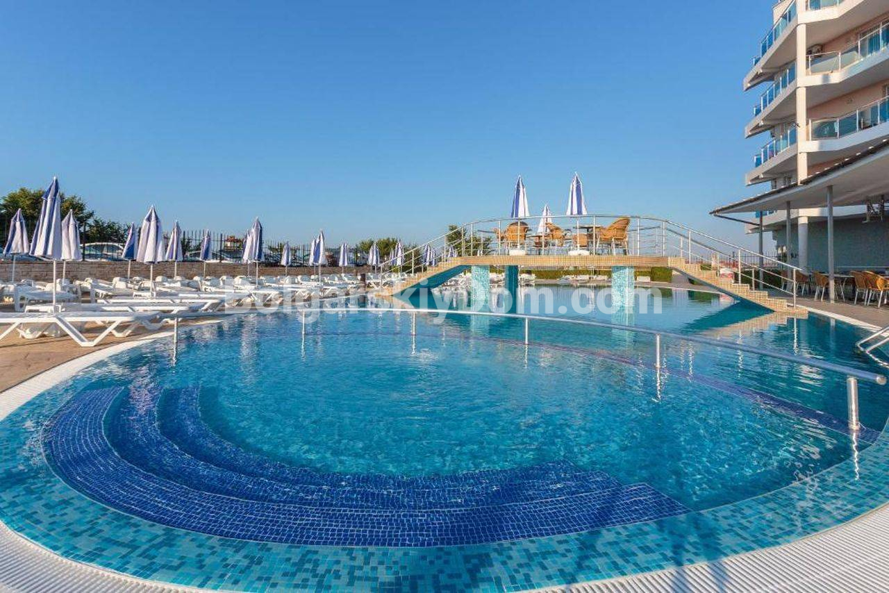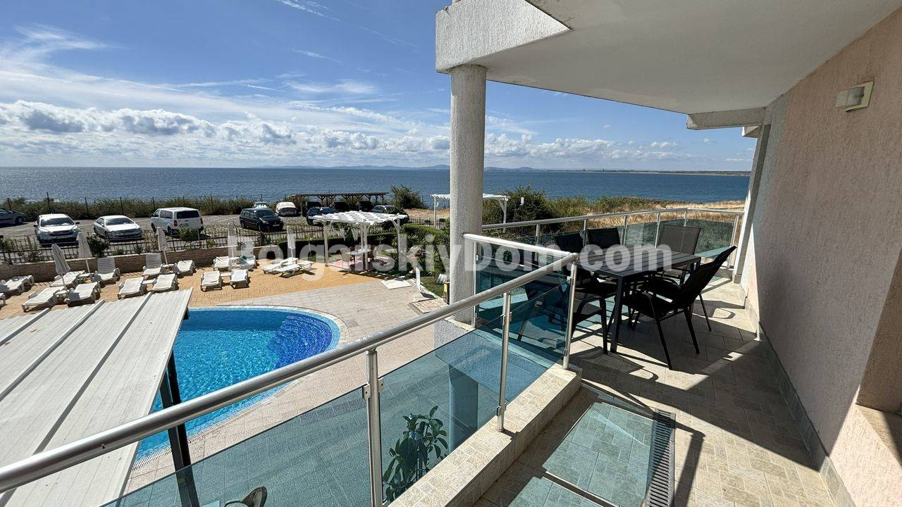 Полностью меблированная трехкомнатная квартира с фронтальным видом на море - идеальное сочетание уюта, комфорта и выгодной инвестиции. Апартамент площадью 97 кв. метров находится на втором этаже апарт-отеля премиум-класса, расположенного на первой линии в тихом и спокойном районе между Равдой и Ахелоем. Имеется полный комплект мебели и бытовой техники: от большого холодильника и духовки до кондиционеров в каждой комнате. Просторные террасы имеют шикарный прямой вид на море, до которого буквально подать рукой. Квартира готова к заселению без дополнительных затрат и хлопот уже сейчас.