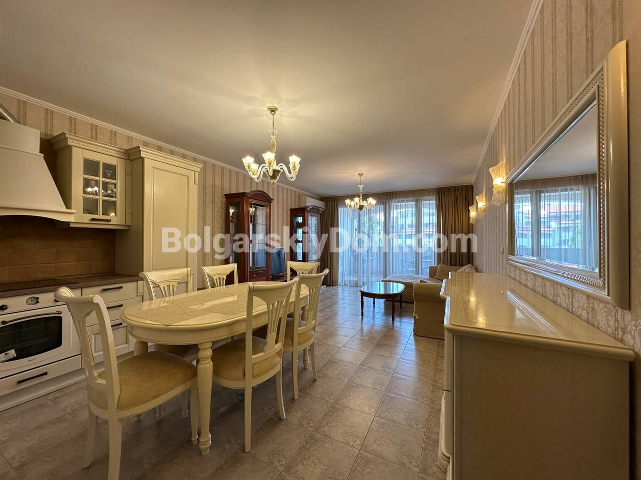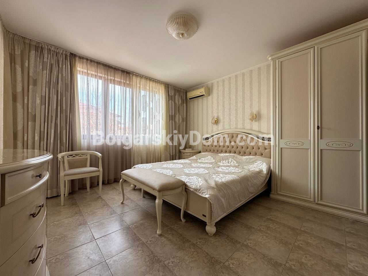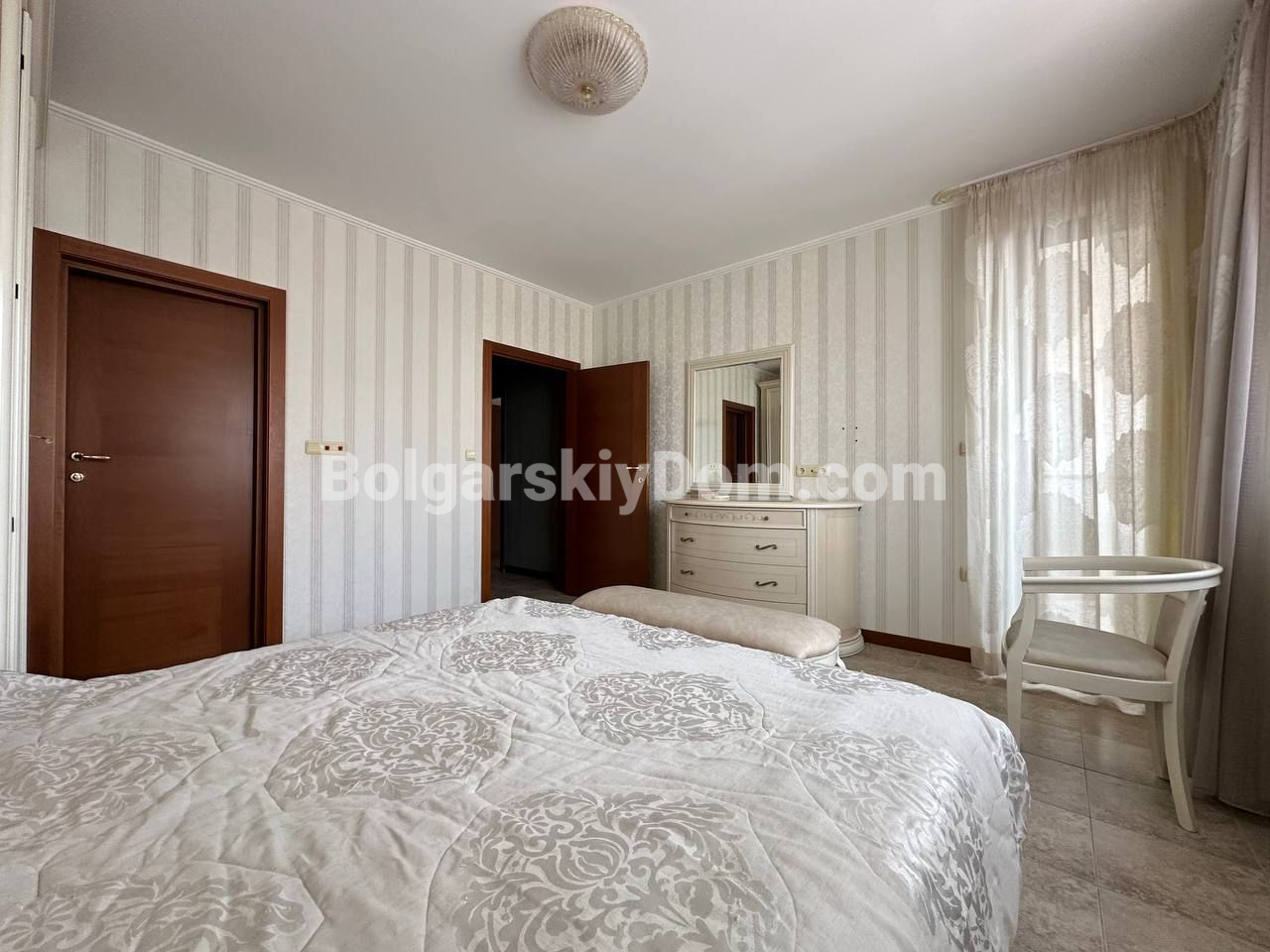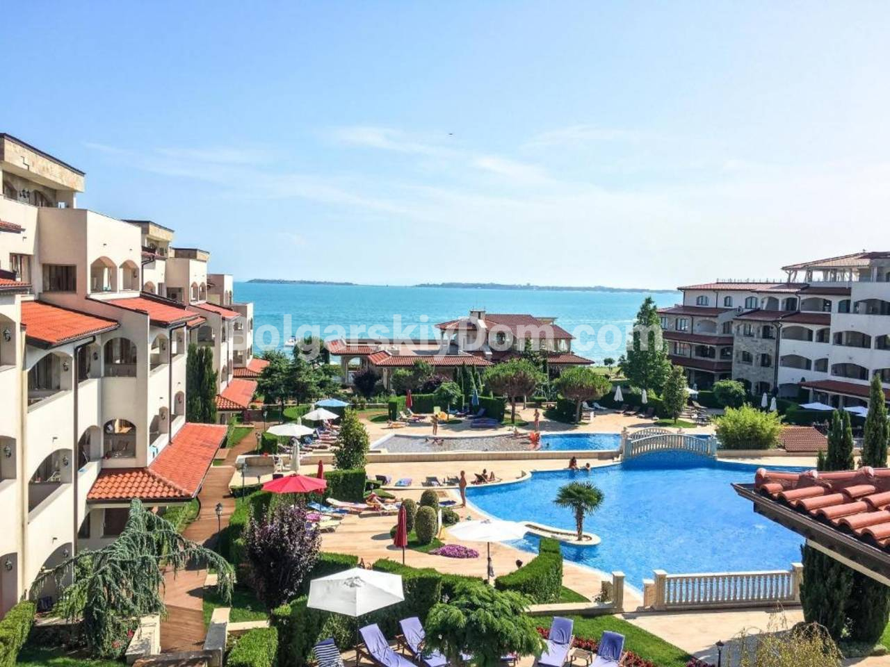 Видовый апартамент премиум-сегмента! Агентство недвижимости Болгарский Дом представляет вашему вниманию просторную трехкомнатную квартиру в элитном комплексе Каса Реал в Святом Власе. Общая площадь 149,25 кв.м. делает ее одной из самых больших и комфортных в своем классе. Квартира состоит из прихожей, просторного коридора, большой гостиной с кухней и обеденной зоной, двух спален, двух ванных комнат и двух террас. Жилье полностью меблировано и оборудовано для постоянного проживания: есть вся необходимая техника, включая холодильник, плиту и стиральную машину, а также посуда и кухонные принадлежности. Особого внимания заслуживает вместительная гардеробная и собственная ванная комната в одной из спален.