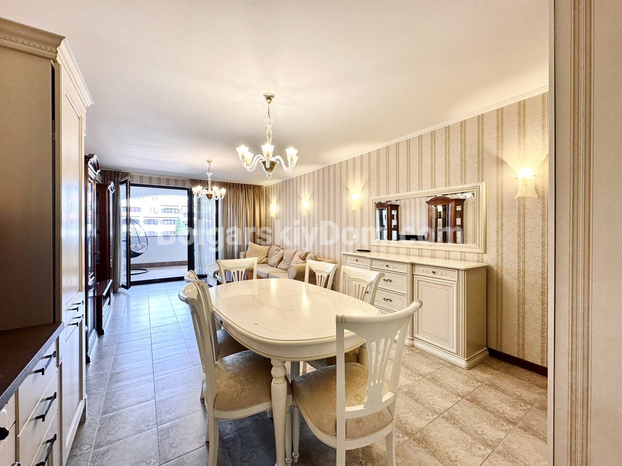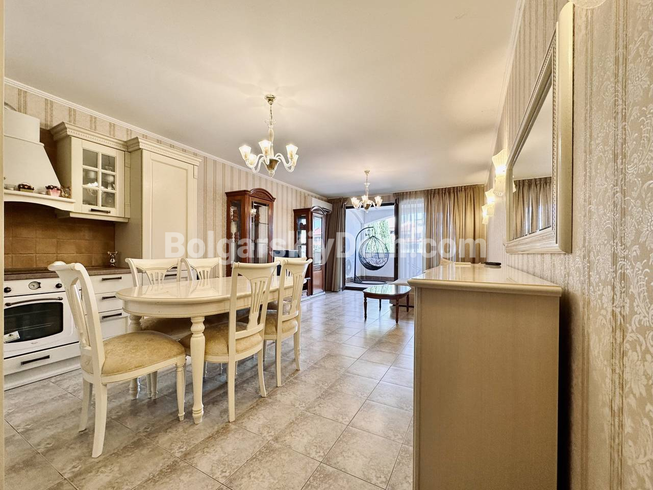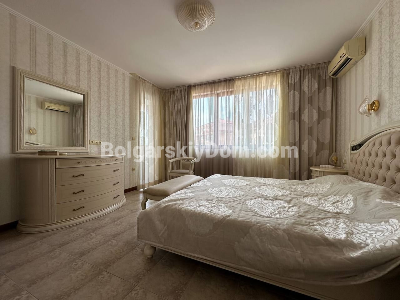 Видовый апартамент премиум-сегмента! Агентство недвижимости Болгарский Дом представляет вашему вниманию просторную трехкомнатную квартиру в элитном комплексе Каса Реал в Святом Власе. Общая площадь 149,25 кв.м. делает ее одной из самых больших и комфортных в своем классе. Квартира состоит из прихожей, просторного коридора, большой гостиной с кухней и обеденной зоной, двух спален, двух ванных комнат и двух террас. Жилье полностью меблировано и оборудовано для постоянного проживания: есть вся необходимая техника, включая холодильник, плиту и стиральную машину, а также посуда и кухонные принадлежности. Особого внимания заслуживает вместительная гардеробная и собственная ванная комната в одной из спален.