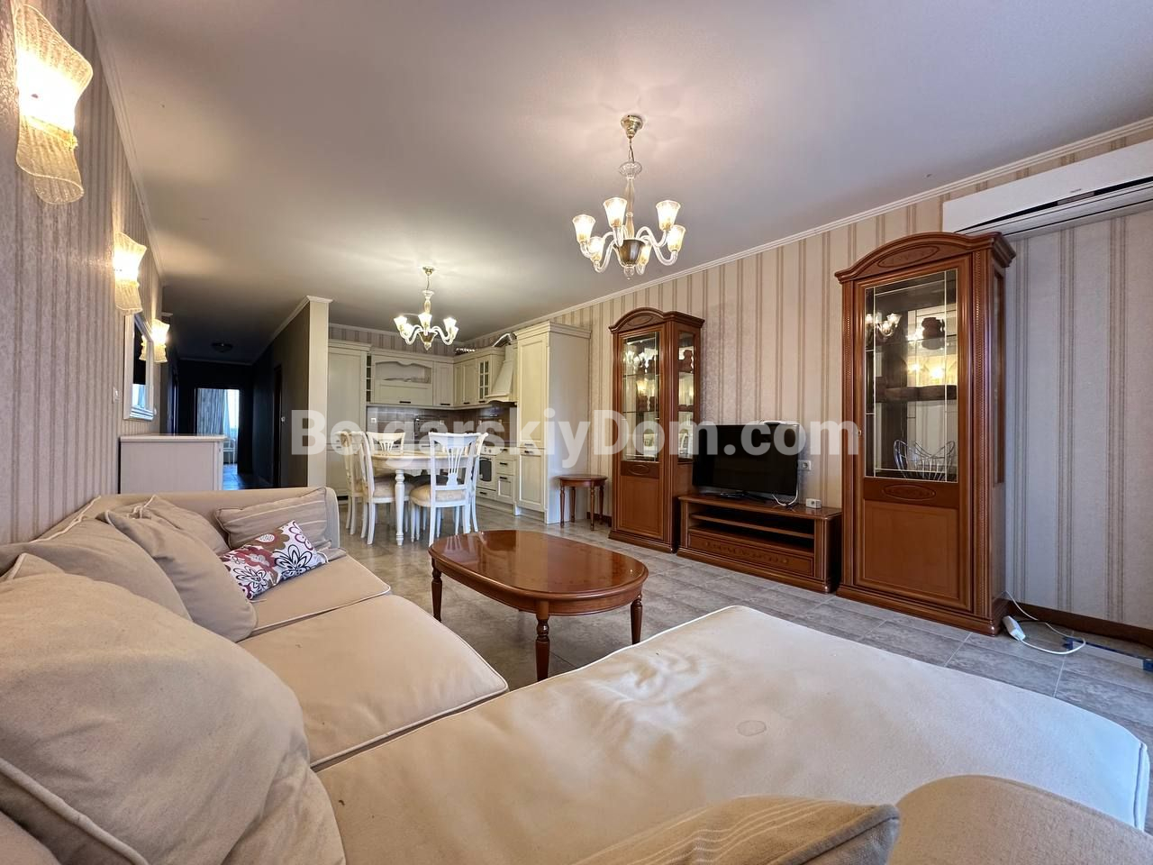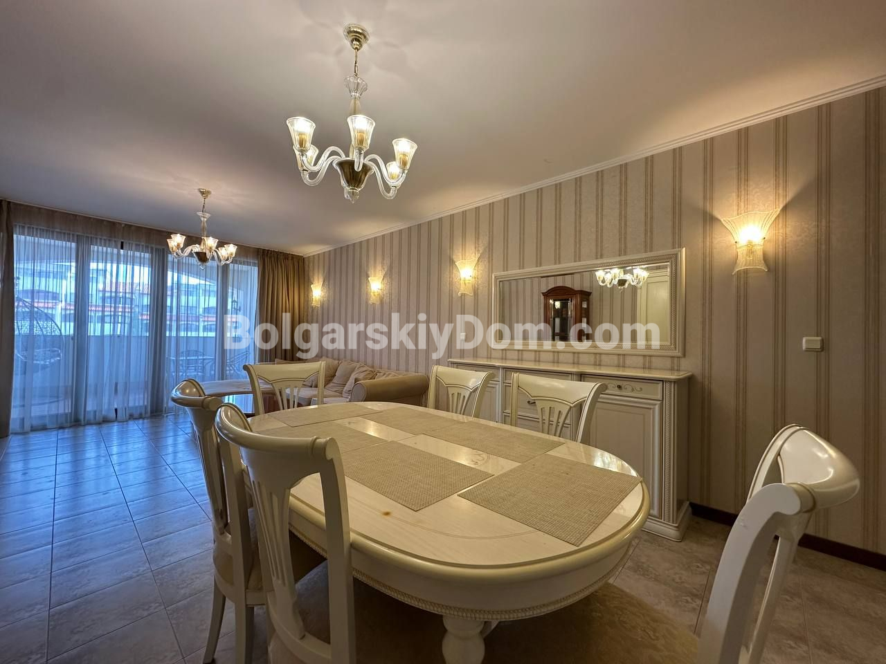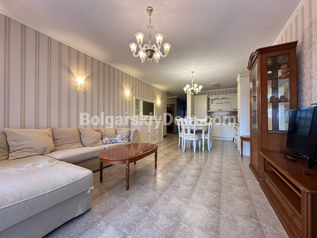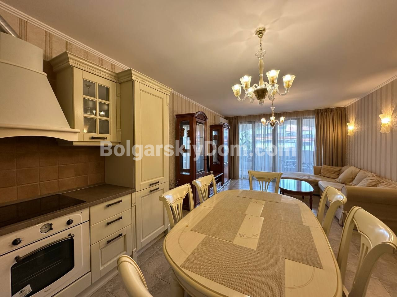 Видовый апартамент премиум-сегмента! Агентство недвижимости Болгарский Дом представляет вашему вниманию просторную трехкомнатную квартиру в элитном комплексе Каса Реал в Святом Власе. Общая площадь 149,25 кв.м. делает ее одной из самых больших и комфортных в своем классе. Квартира состоит из прихожей, просторного коридора, большой гостиной с кухней и обеденной зоной, двух спален, двух ванных комнат и двух террас. Жилье полностью меблировано и оборудовано для постоянного проживания: есть вся необходимая техника, включая холодильник, плиту и стиральную машину, а также посуда и кухонные принадлежности. Особого внимания заслуживает вместительная гардеробная и собственная ванная комната в одной из спален.