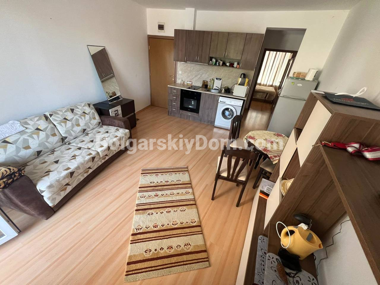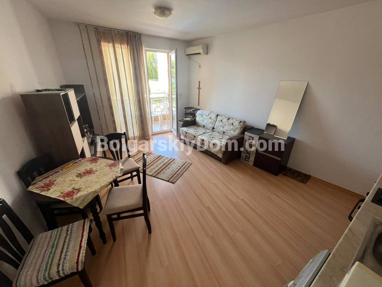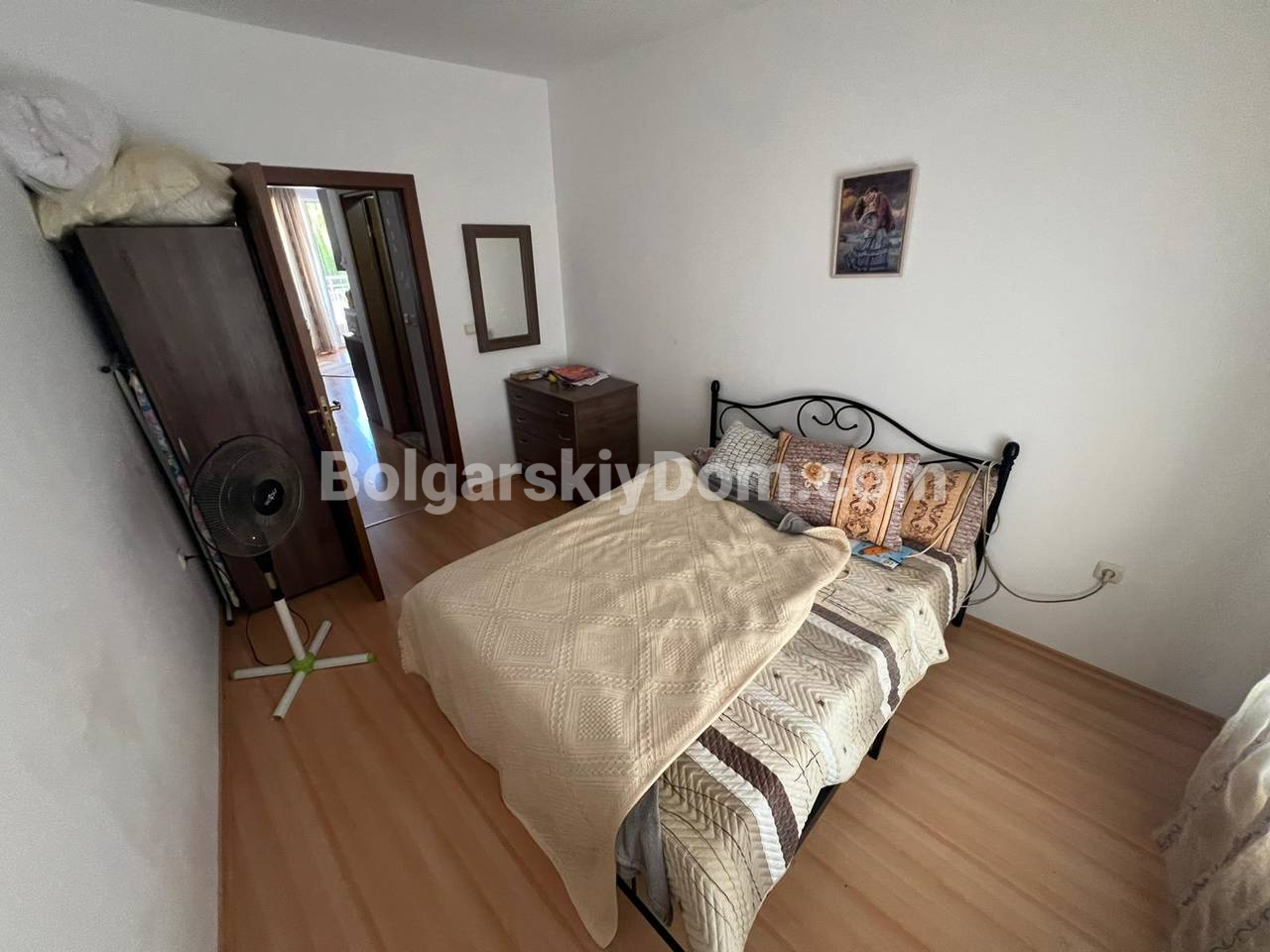 Меньше 1000 евро за кв. метр! Приятная двухкомнатная квартира в западной части курорта Солнечный берег готова к показам. Апартамент площадью 54 кв.метра имеет классическое распределение: прихожая, светлая гостиная с кухней и зоной отдыха, уютная спальня, ванная комната и балкон. Продаётся с мебелью и техникой: в прихожей - вместительный шкаф, в зале - диван, тумба с полками, обеденный гарнитур, стиральная машина, холодильник и кондиционер, во второй комнате - двуспальная кровать с тумбочкой. Квартира полностью готова к проживанию или сдаче в аренду. Второй этаж из четырех. Здание без лифта.