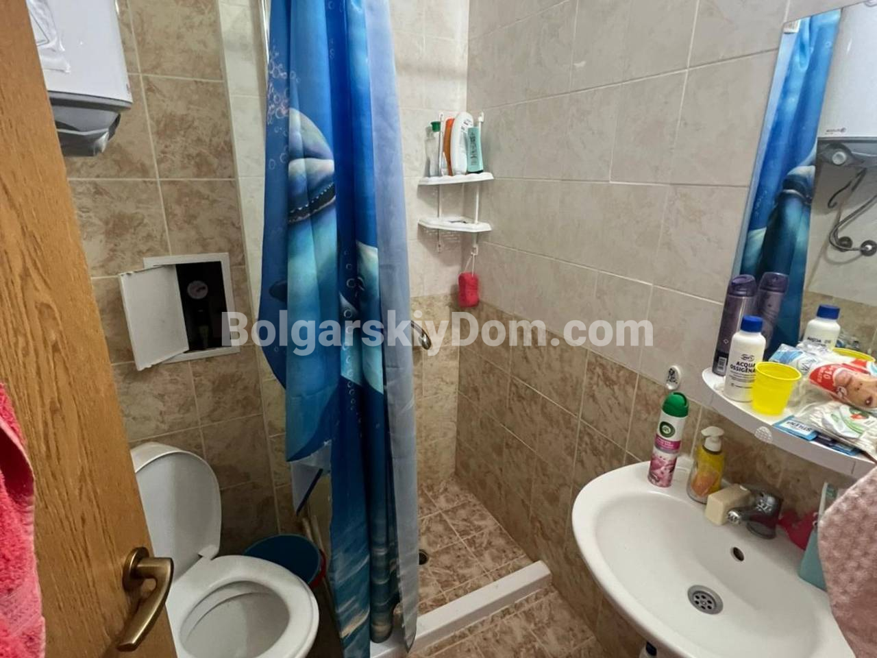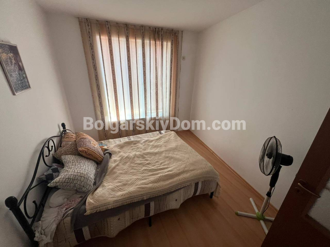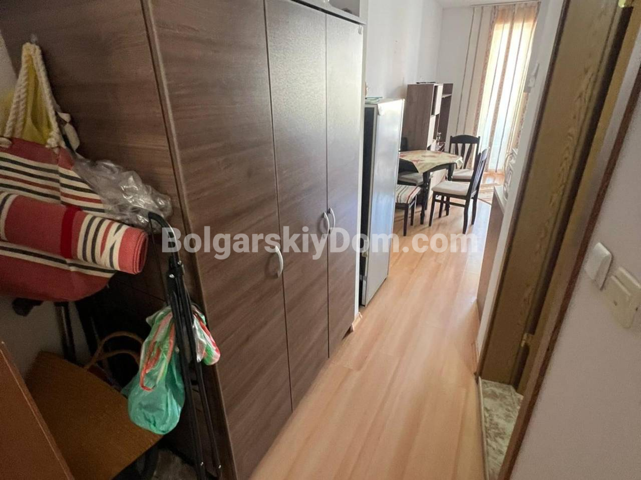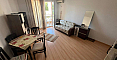 Меньше 1000 евро за кв. метр! Приятная двухкомнатная квартира в западной части курорта Солнечный берег готова к показам. Апартамент площадью 54 кв.метра имеет классическое распределение: прихожая, светлая гостиная с кухней и зоной отдыха, уютная спальня, ванная комната и балкон. Продаётся с мебелью и техникой: в прихожей - вместительный шкаф, в зале - диван, тумба с полками, обеденный гарнитур, стиральная машина, холодильник и кондиционер, во второй комнате - двуспальная кровать с тумбочкой. Квартира полностью готова к проживанию или сдаче в аренду. Второй этаж из четырех. Здание без лифта.
