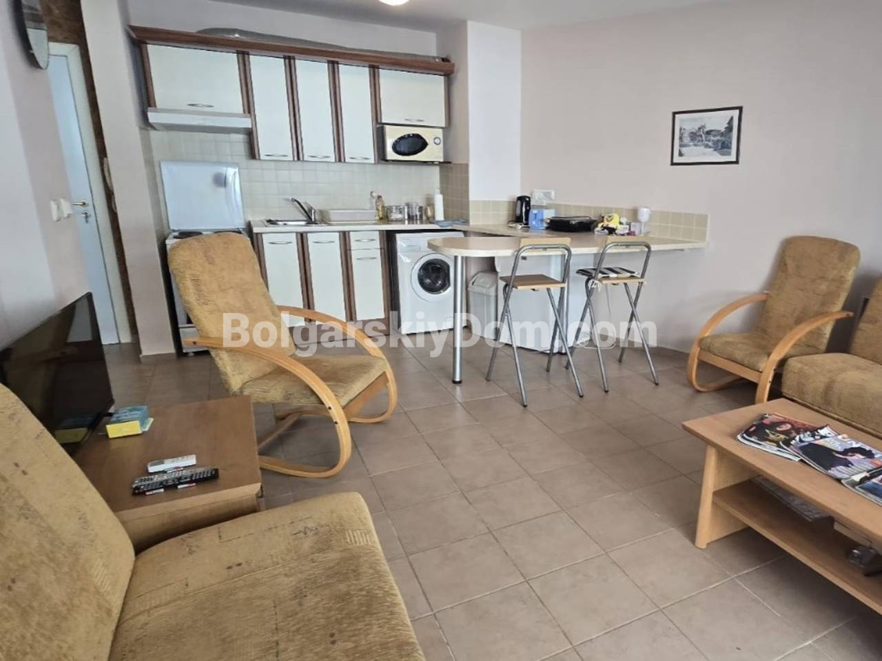 Квартира с видом на море от Болгарского Дома! В каталоге нашего агентства появилась просторная двухкомнатная недвижимость в Привилидж Форт Бич, элитном комплексе на первой линии в Елените. Квадратура квартиры 72 кв.м., она находится на первом этаже и полностью меблирована, что позволяет сразу заселиться и наслаждаться отдыхом. Планировка включает большую гостиную с кухонной зоной, уютную спальню, ванную комнату и балкон:стандартная и удобная. Все это - в хорошем состоянии, без необходимости в дополнительном ремонте.