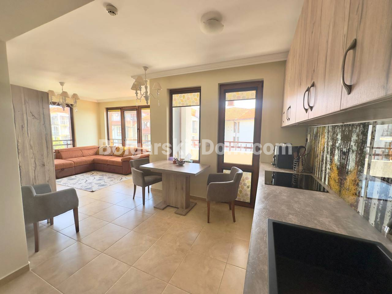 Ваша мечта о жизни с видом на море начинается здесь! В нашем каталоге появилась просторная квартира в комплексе Малката Воденица, расположенном всего в пяти минутах ходьбы от моря в Святом Власе. Планировка здесь отличается высокой эргономикой: две отдельные спальни, две ванные комнаты, уютная гостиная с кухней и балкон, откуда открывается потрясающий вид на море. Суммарный метраж составляет 94 кв.м., квартира на удобном втором этаже. Недвижимость полностью меблирована и оборудована всем необходимым, а в стоимость включено подземное парковочное место - редкая и ценная опция в летний сезон.
