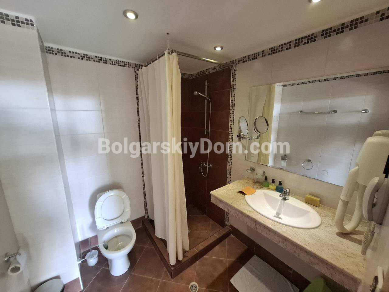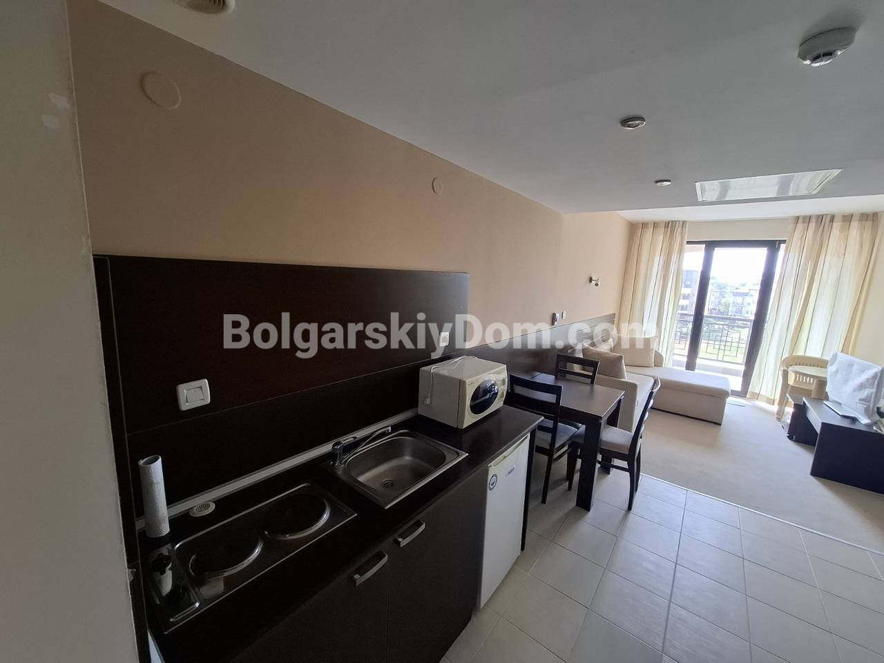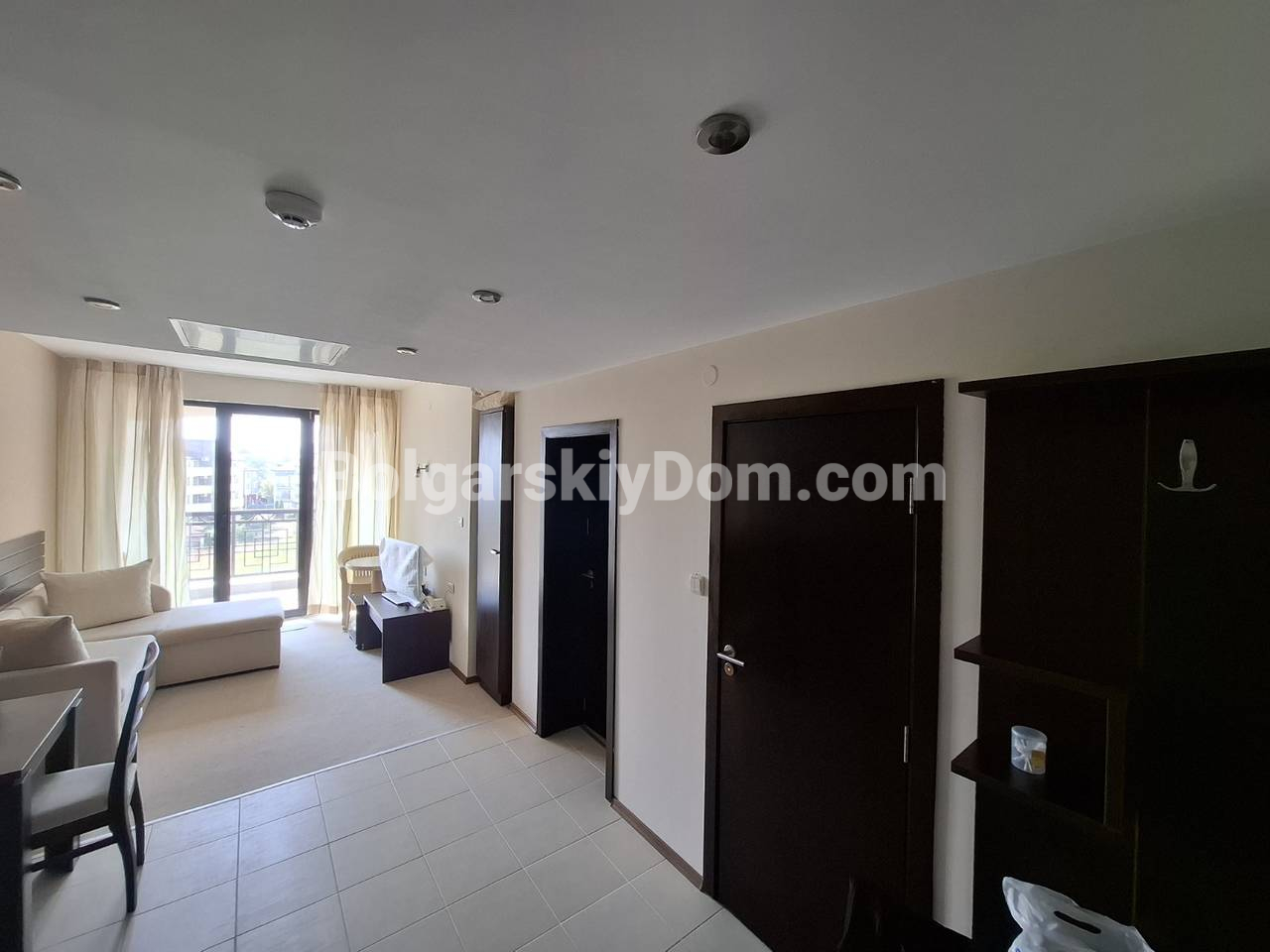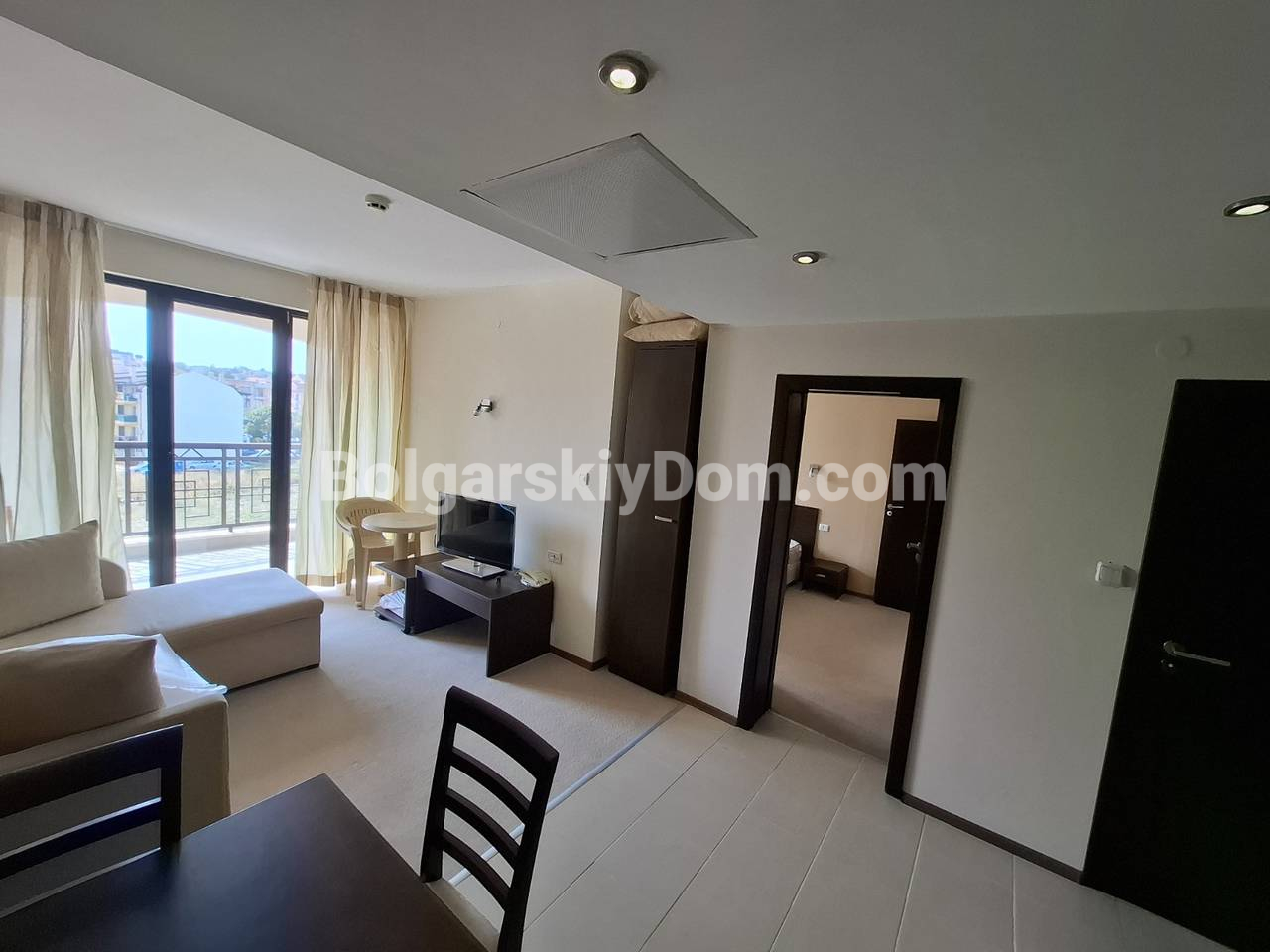 Болгарский Дом презентует! В нашем каталоге появился уникальный апартамент в четырехзвездочном отеле Касабланка. Отсюда до пляжа всего 100 метров, при этом локация тихая и приятная. Квартира площадью 70,6 кв.м. расположена на четвертом этаже и имеет прекрасный вид на море, город и горы: настоящее комбо. Планировка включает залу с кухонным уголком, отдельную гардеробную, спальню, два санузла и общую террасу. Жилье полностью оборудовано всей бытовой техникой, есть кондиционер, интернет и цифровое телевидение. Установлены собственные счетчики на электричество и воду.