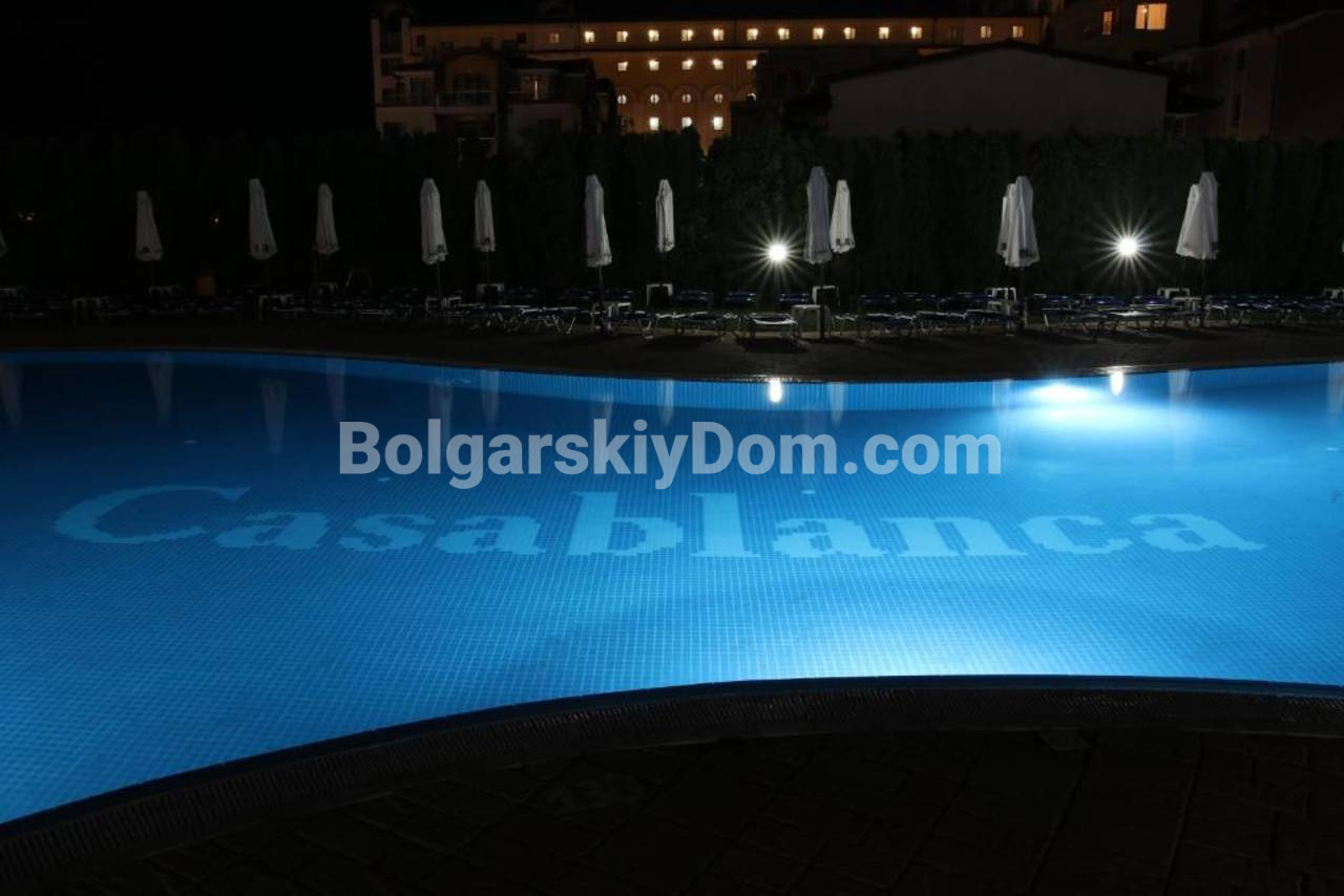 Комплекс Касабланка предлагает широкий спектр удобств для полноценного отдыха: два бассейна с лежаками и зонтиками, фитнес-центр, рестораны, бар и даже детский сад. Для удобства жильцов есть круглосуточная охрана, рецепция, парковка и два лифта. Огромный бонус - возможность бесплатного пользования отдельной пляжной полосой с зонтиками и шезлонгами. Также, благодаря предложению по управлению недвижимостью, вы можете получать доход от сдачи квартиры в аренду туристам в летний сезон. Годовая плата за обслуживание составляет 670 евро, при этом она уже оплачена за 2025 год.