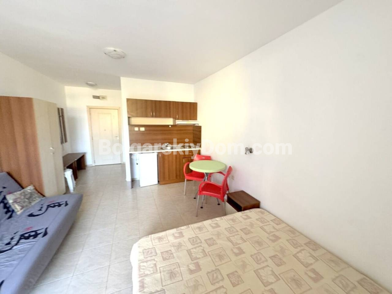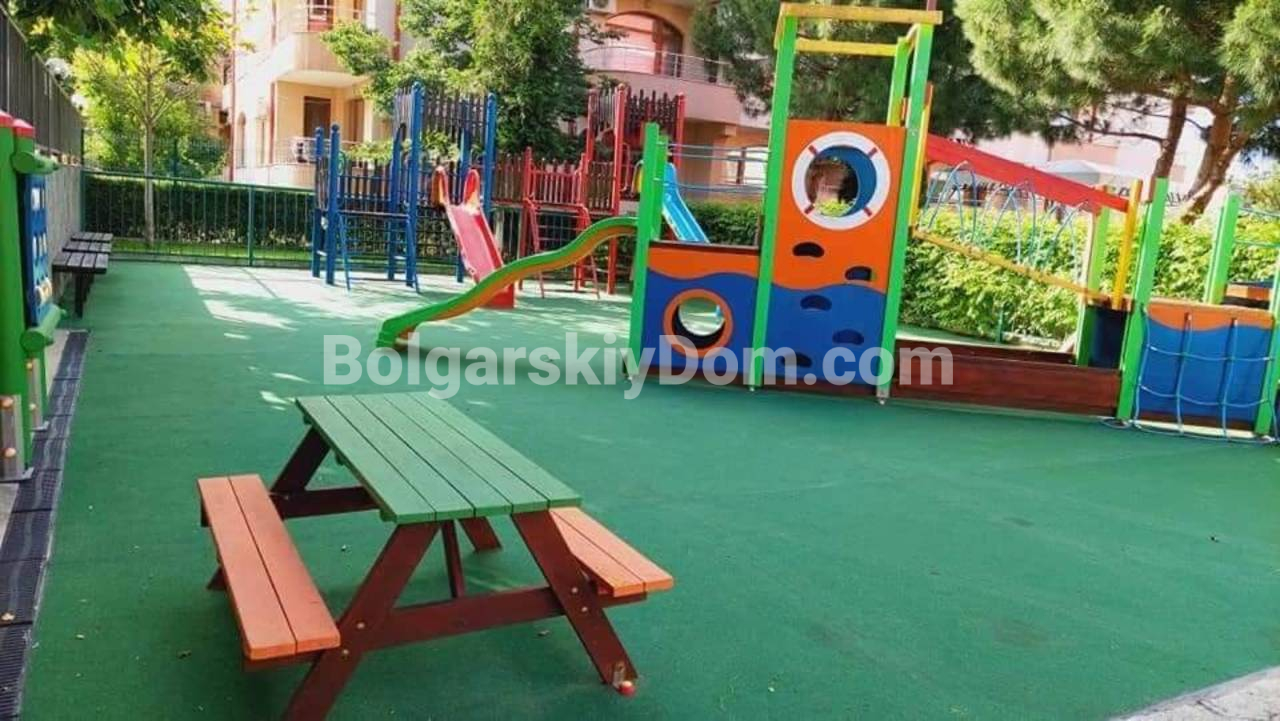Квартира находится в жилом комплексе Роуз Резиденс, который расположен в тихой части Солнечного берега, всего в 600 метрах от моря. Комплекс построен по высоким стандартам и предлагает собственникам бассейн, ухоженный двор, охрану и парковку: стандартный, но часто достаточный набор удобств. Такое расположение обеспечивает легкий доступ ко всей городской инфраструктуре, включая рестораны и магазины. Годовая такса поддержки составляет 12 евро за квадратный метр.