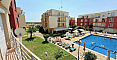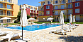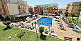 Комплекс Сани Дей 5 хоть и входит в знаменитое комьюнити, все же это отдельный закрытый объект с контролируемым доступом. На его ухоженной территории есть большой бассейн с шезлонгами и зонтиками, детская площадка, крытая парковка для владельцев и аллеи для прогулок. Хотя сам комплекс находится в тихом месте, всего в 4 км от него расположена обширная городская инфраструктура: супермаркеты, рестораны, клубы, школы, парки, казино и многое другое. Годовая такса поддержки составляет 620 евро, что обеспечивает качественный уход за территорией и инфраструктурой.