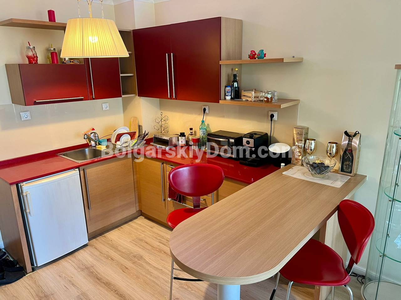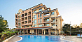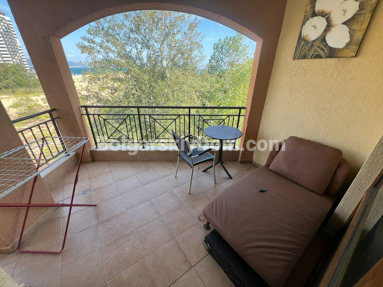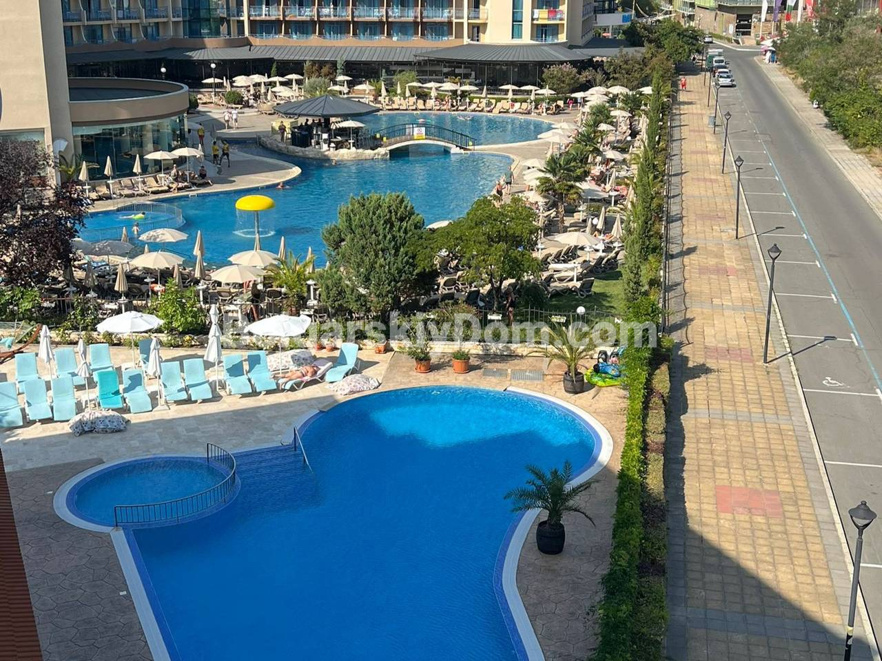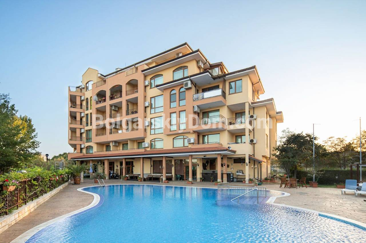 Комплекс Голден Бич находится на первой линии Солнечного берега, всего в 250 метрах от моря. На его закрытой территории расположено шестиэтажное здание с двумя корпусами, каждый из которых имеет отдельный вход и лифт. К услугам жильцов большой бассейн с зоной для шезлонгов, лобби-бар, рецепция, а также магазины и парковка. Годовая такса поддержки составляет всего 8 евро за квадратный метр, что очень выгодно для комплекса такого уровня, расположенного так близко к морю. Ухоженные аллеи создают приятную атмосферу для прогулок.