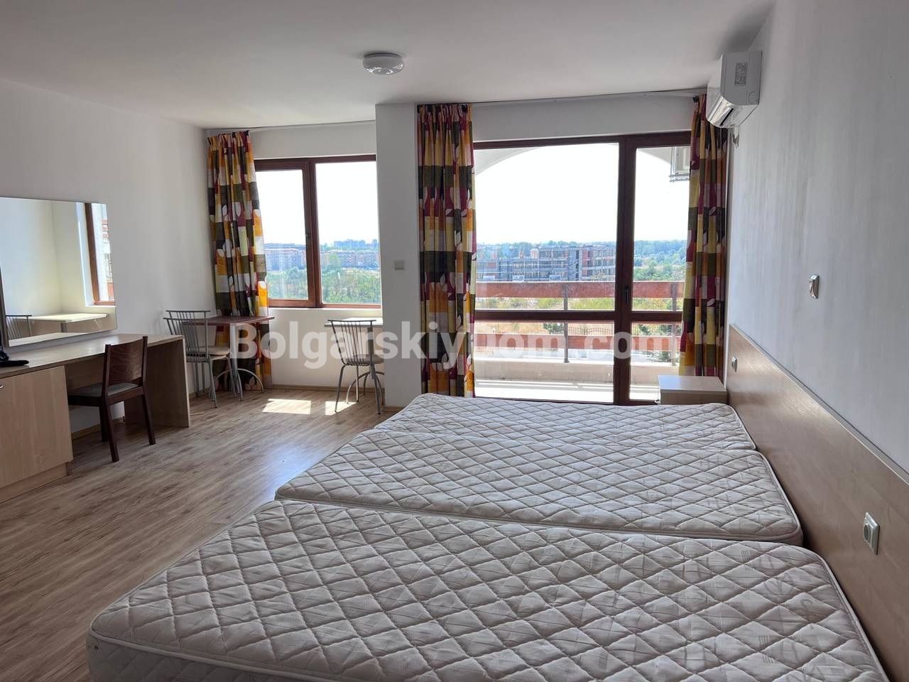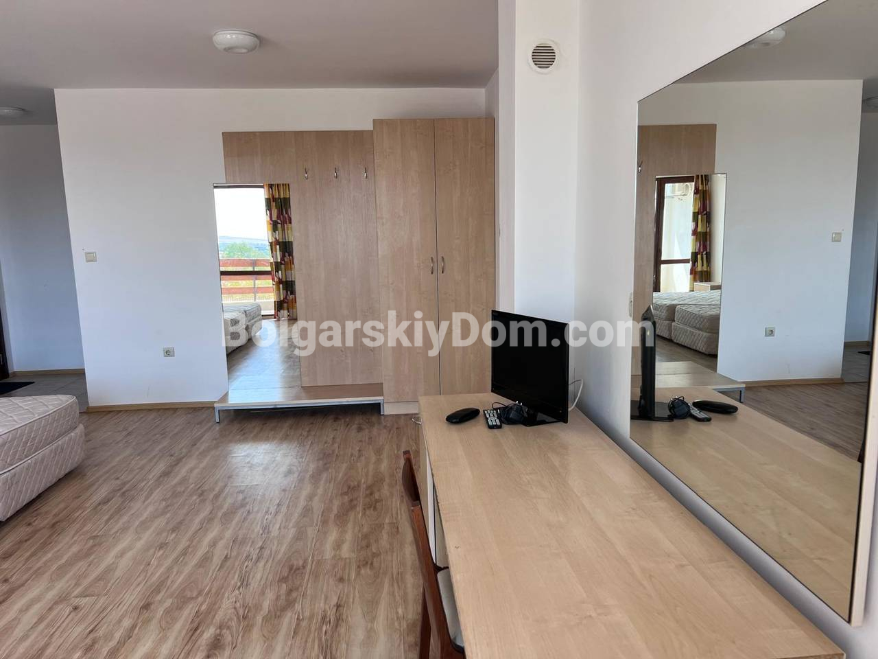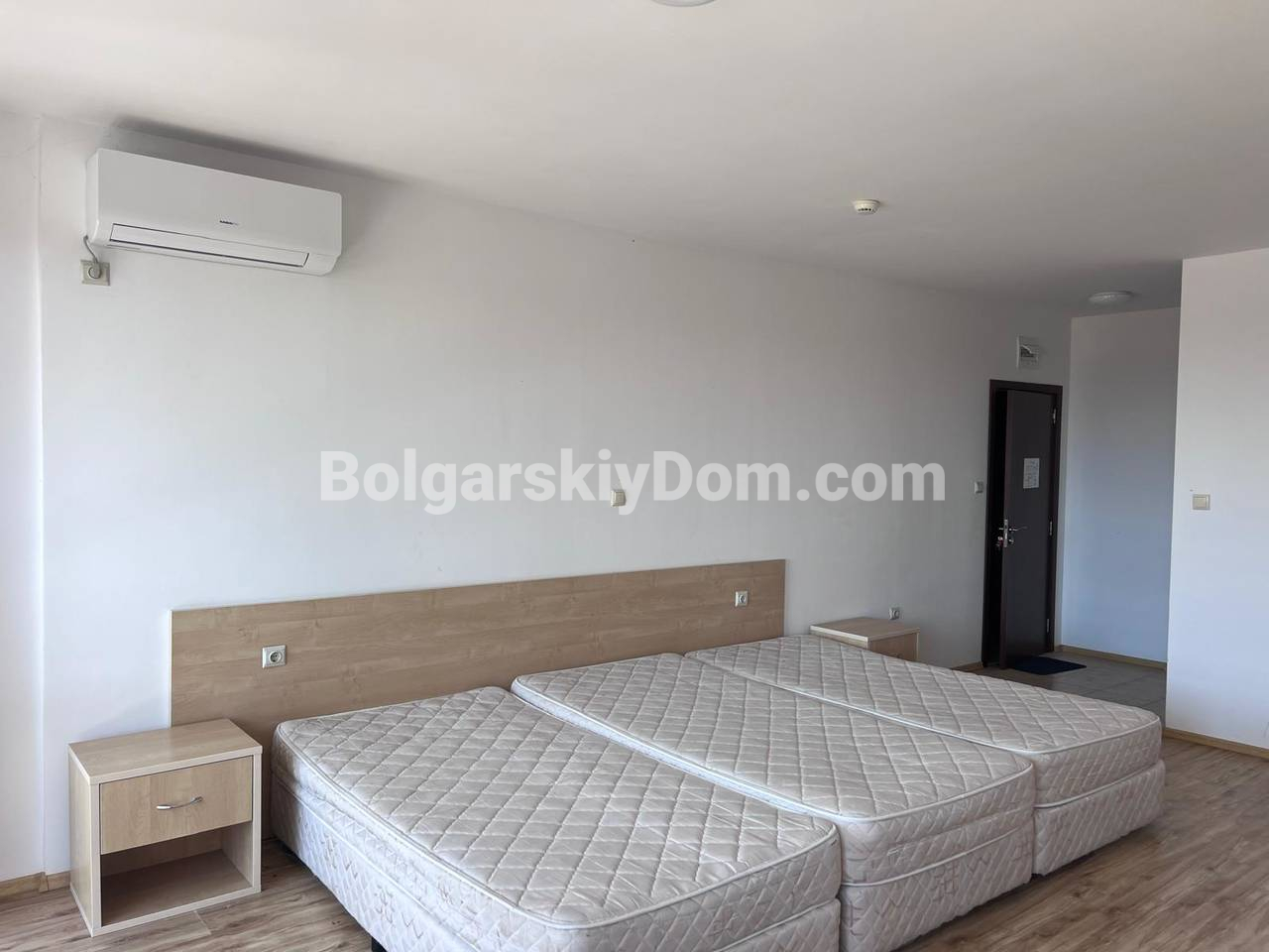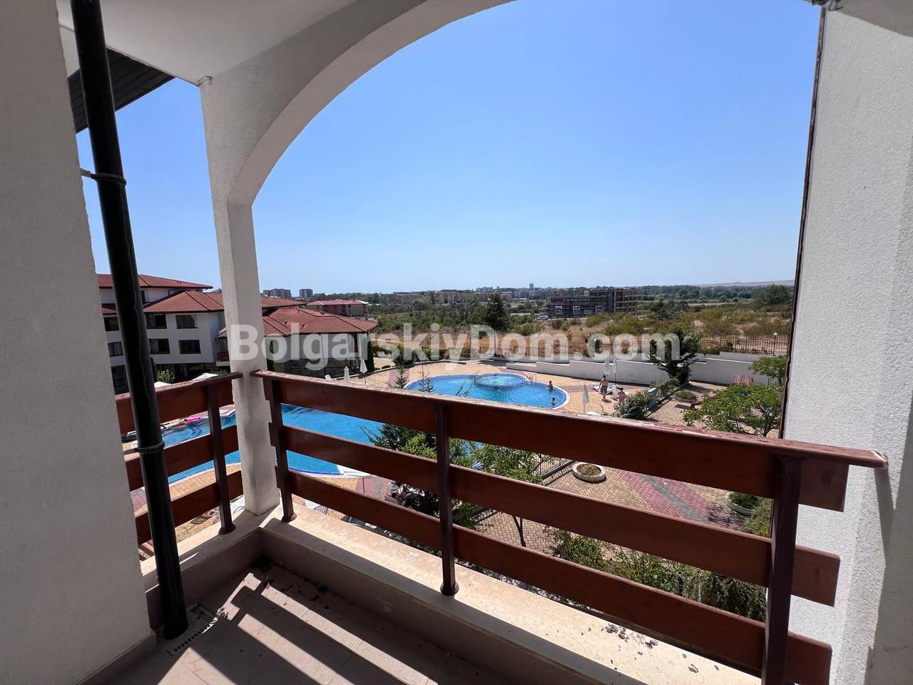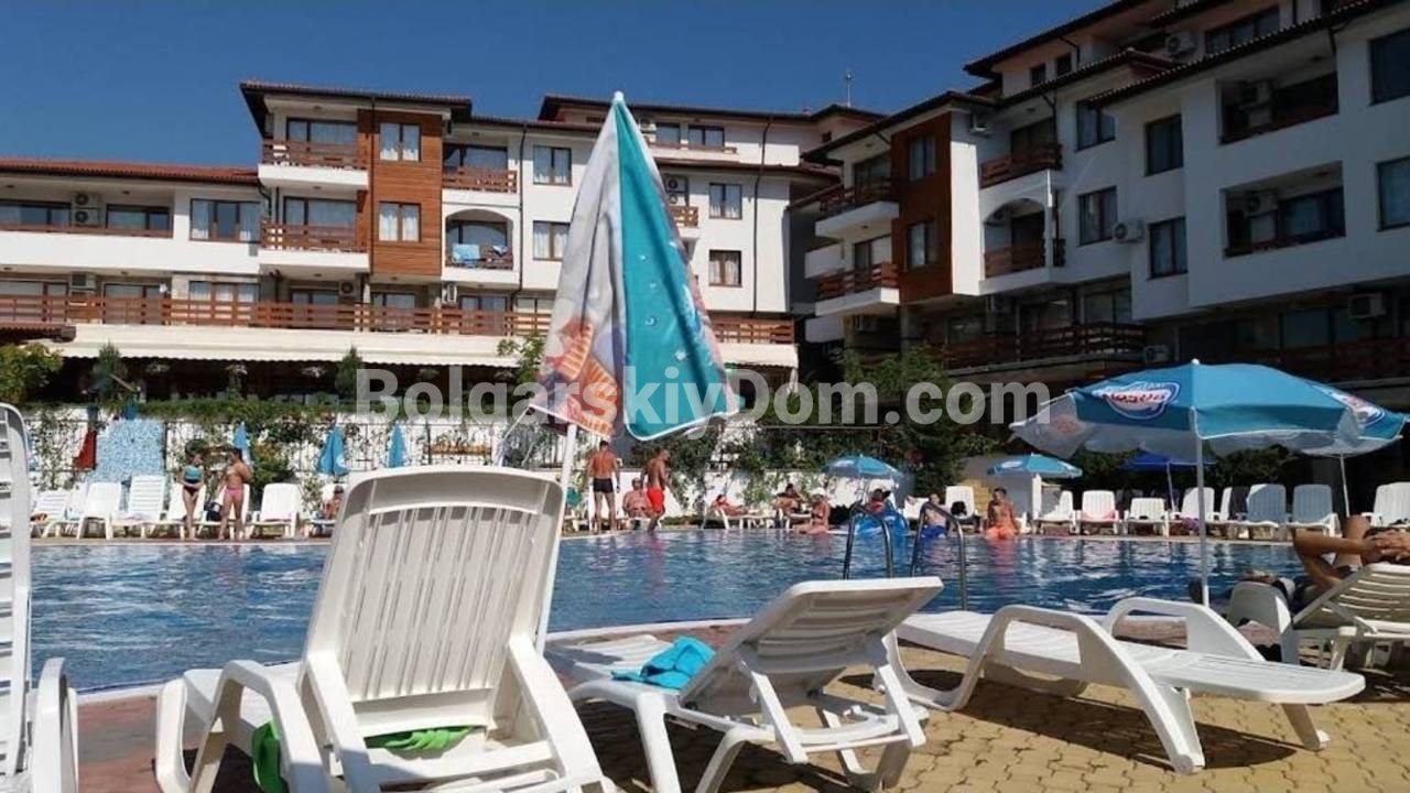 Наша команда Болгарского Дома рада представить вам просторную меблированную квартиру в комплексе круглогодичного формата Гардения Хилс. Это уютное жилье площадью 60 кв.м. расположено на третьем этаже, откуда открывается вид на бассейн. Планировка включает прихожую, просторную гостиную со спальной зоной, ванную комнату с душем и туалетом, а также вместительную террасу с лаунж зоной, которая станет вашим любимым местом для отдыха. Квартира полностью меблирована и готова к заселению. Планировка позволяет как угодно оформить зонирование. Звоните!