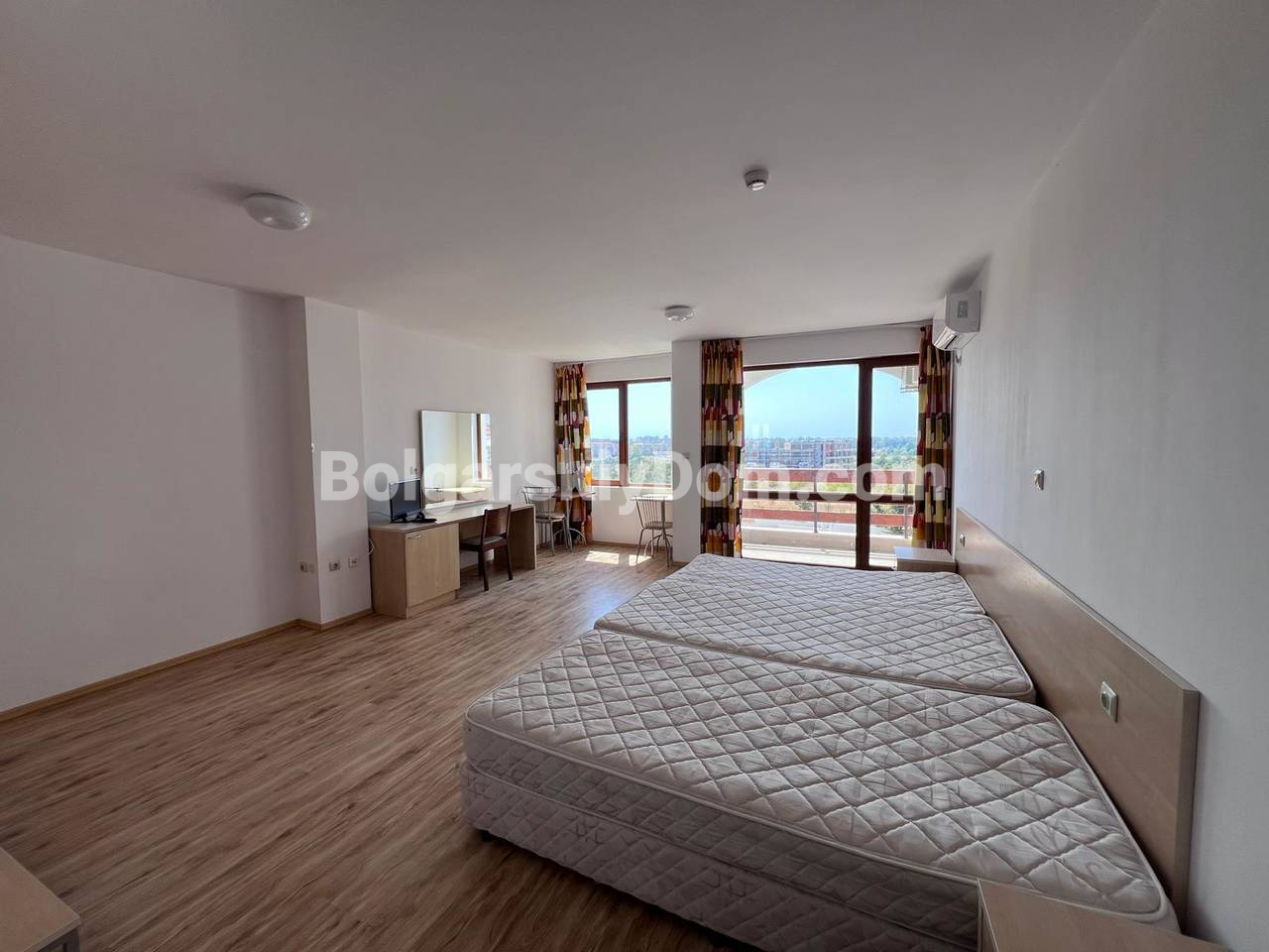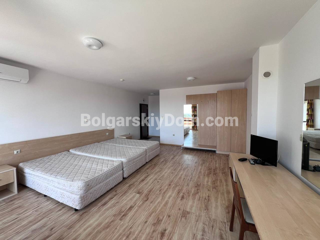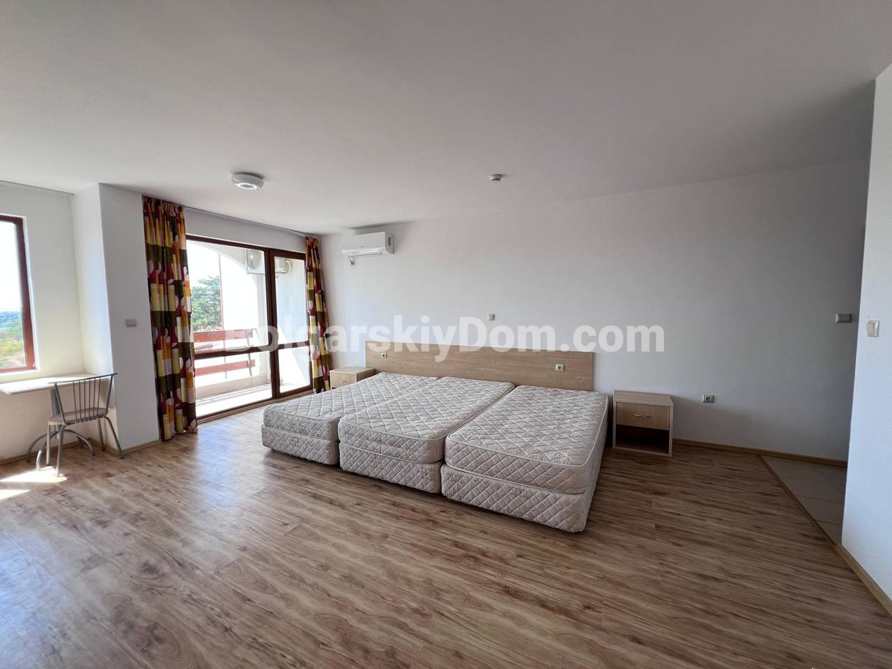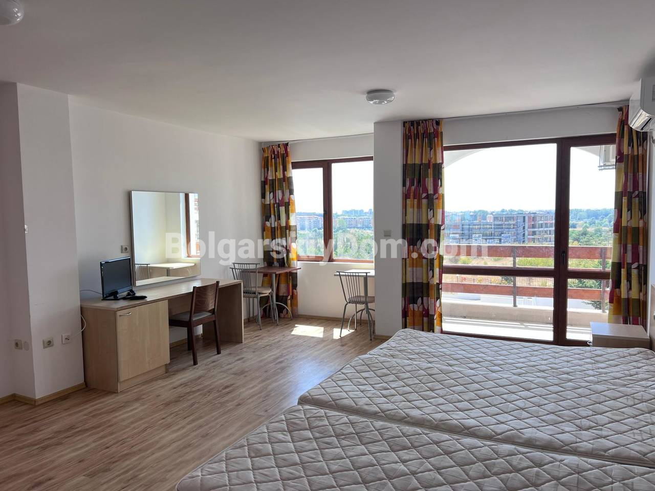 Наша команда Болгарского Дома рада представить вам просторную меблированную квартиру в комплексе круглогодичного формата Гардения Хилс. Это уютное жилье площадью 60 кв.м. расположено на третьем этаже, откуда открывается вид на бассейн. Планировка включает прихожую, просторную гостиную со спальной зоной, ванную комнату с душем и туалетом, а также вместительную террасу с лаунж зоной, которая станет вашим любимым местом для отдыха. Квартира полностью меблирована и готова к заселению. Планировка позволяет как угодно оформить зонирование. Звоните!