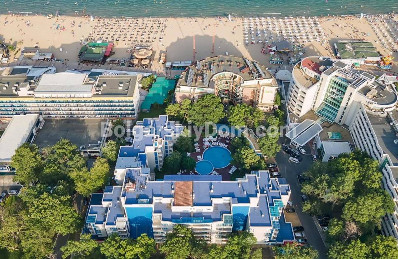 Команда агентов Болгарского Дома рада представить вашему вниманию просторную двухкомнатную квартиру в живописном комплексе Эксцелсиор, расположенном на Солнечном берегу. Этот уютный апартамент квадратурой 71 кв.м. находится на втором этаже и продается полностью меблированным и готовым к заселению, со всей необходимой мебелью и бытовой техникой, при этом все уже входит в прайС, без доплат. Вы получаете прихожую, просторную гостиную с кухонной зоной, уютную спальню с двумя кроватями, ванную комнату с ванной и туалетом, а также террасу с видом на бассейн. Классический вариант для любых целей: под проживание, отдых и аренду. Ждем вашего сообщения!