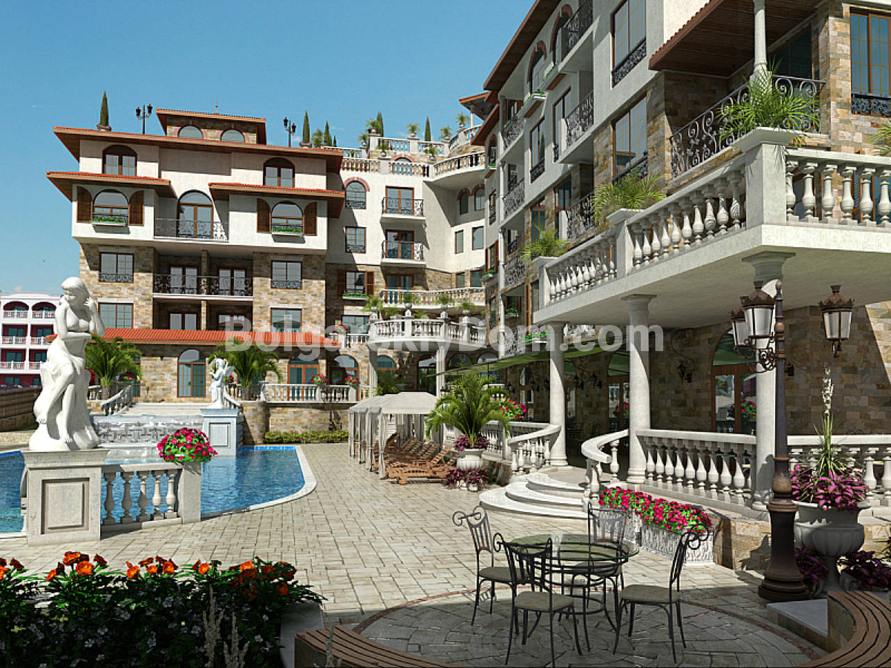 Жилой комплекс Артур возведен на курорте Святой Влас и предназначен для ценителей роскоши и комфорта. Инфраструктура ЖК впечатляет своим разнообразием: к услугам жильцов оздоровительный центр с сауной и салоном красоты, мини-поле для гольфа, внутренний и открытый бассейны, шезлонги, магазин, бар и тренажерный зал. Для детей предусмотрена игровая площадка. Обеспечена круглосуточная охрана и видеонаблюдение, а также есть собственная парковка. При этом такса всего 12 евро за кв.м., а до моря отсюда - чуть меньше 100 метров.