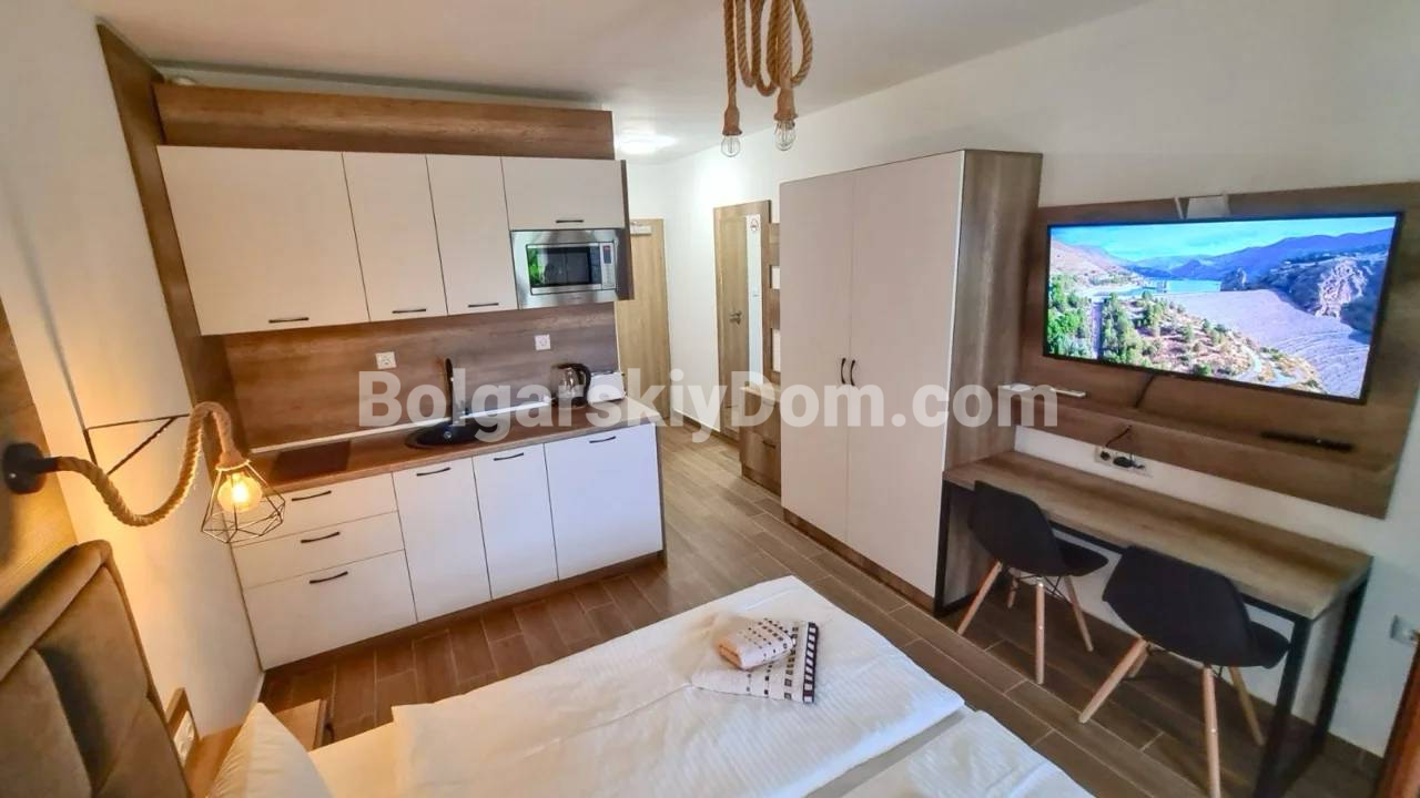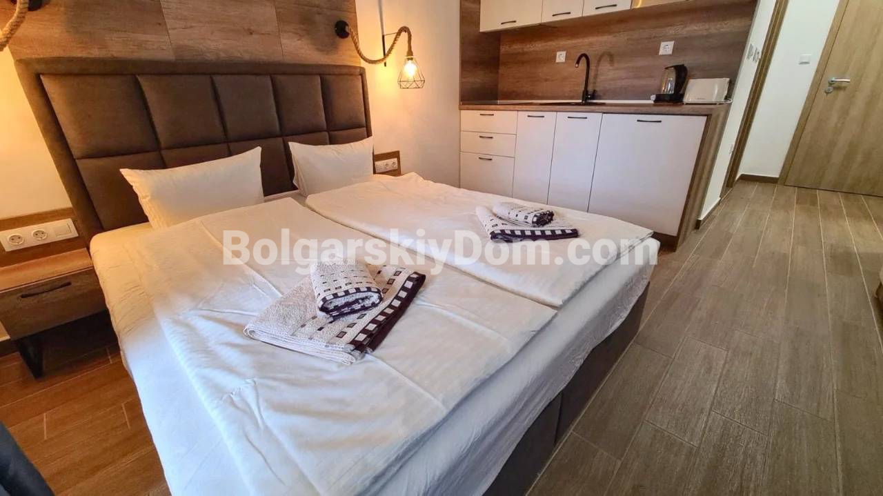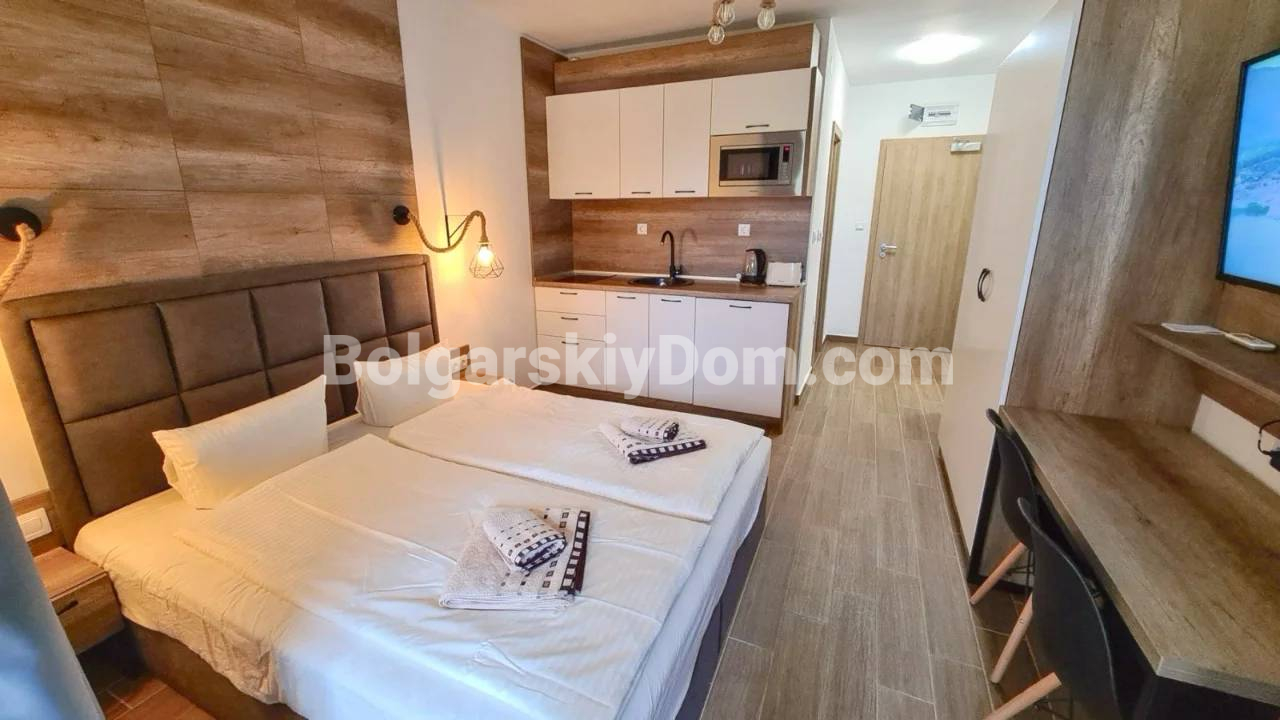 В роскошном комплексе Каскадас на Солнечном берегу, который считается одним из самых элитных и популярных, продается стильная квартира-студия с новым ремонтом. Это уютное жилье площадью 36 кв.м., расположенное на первом этаже, оформлено в теплых деревянных оттенках. В апартаментах есть все необходимое для комфортного проживания: большая двуспальная кровать с мягким изголовьем, современная мини-кухня с плитой, микроволновой печью и полным набором посуды. Также предусмотрены рабочая зона с телевизором, современная ванная комната, кондиционер и высокоскоростной Wi-Fi. Квартира про домашний комфорт и при этом высокий сервис, идеально подходящий для пар, семей или деловых поездок.