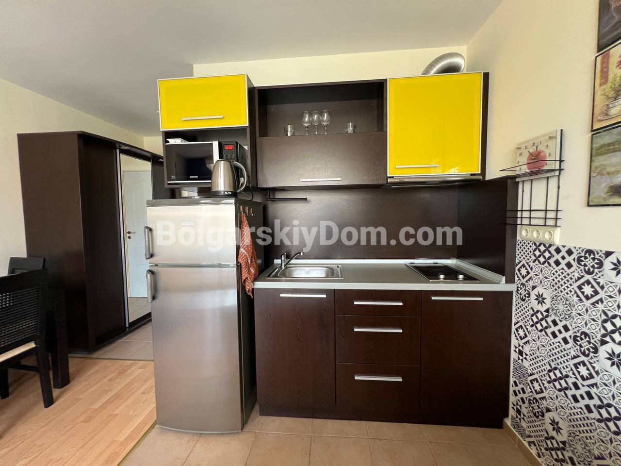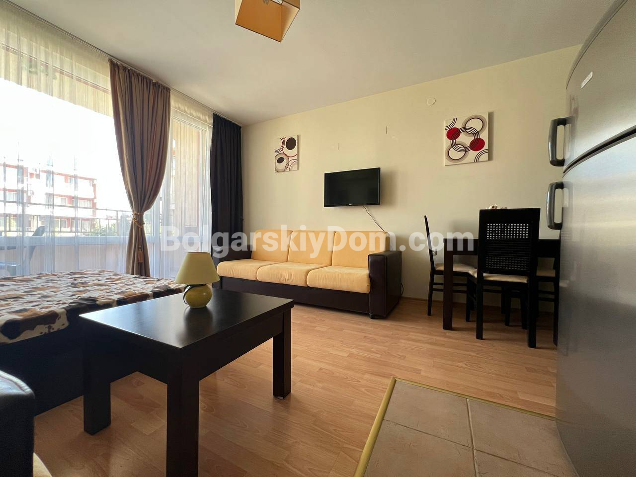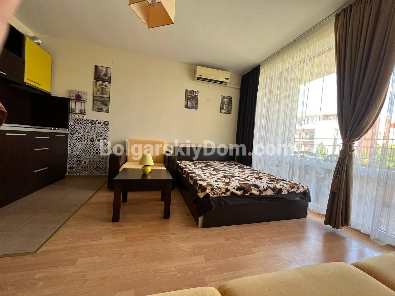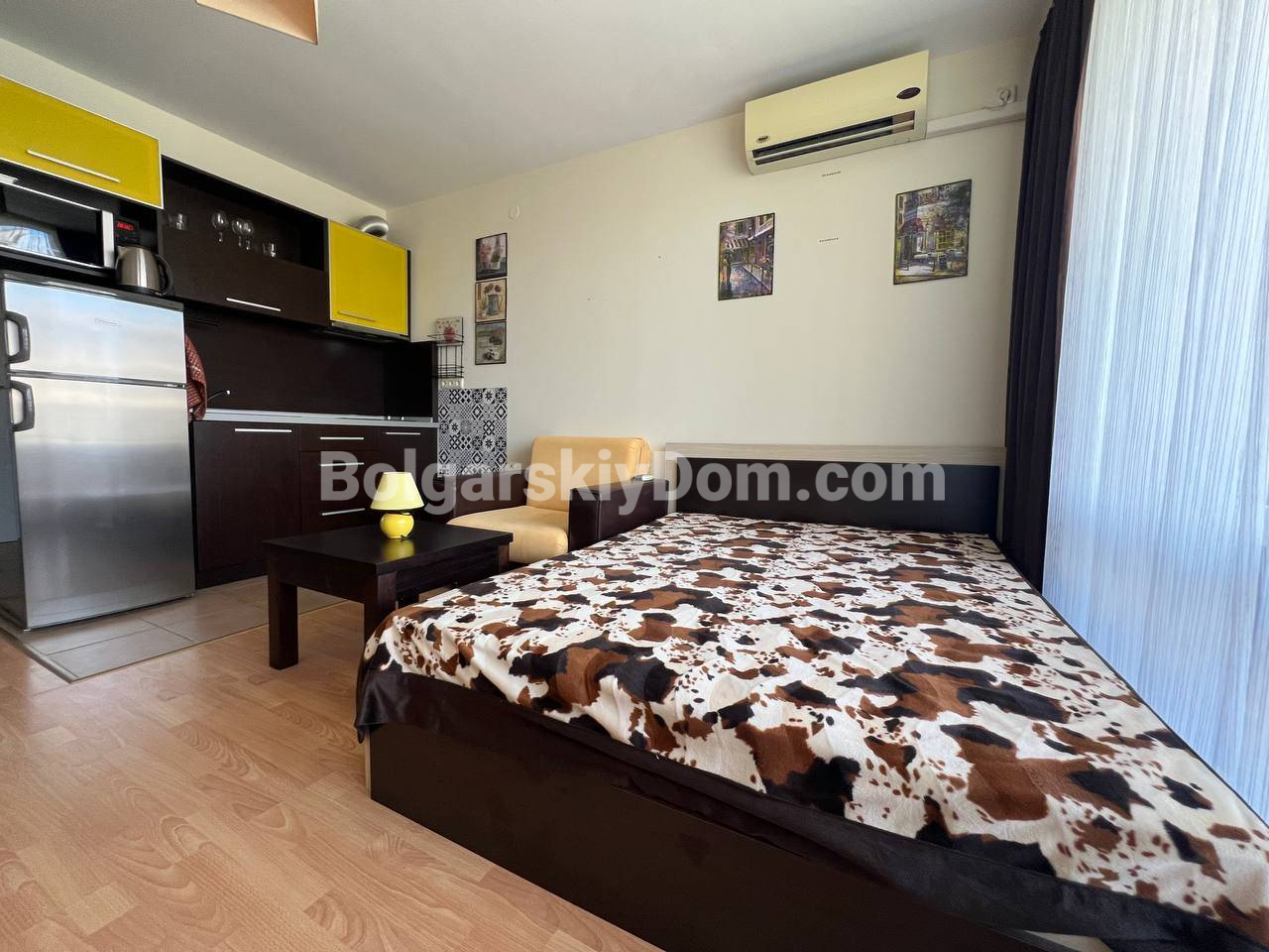 В нашем портфолио появился новый объект, который станет отличным вложением в комфортную жизнь или выгодной инвестицией. Готовы? Запускаем в продажу светлую и компактную студию метражом 40 кв.м., расположенную на втором этаже ЖК Несебр Форт, о котором практически все соискатели наслышаны только позитивно. Апартамент полностью меблирован и оборудован всем необходимым: здесь есть удобная кухонная зона с холодильником и микроволновкой, просторная кровать и зона отдыха. Современный интерьер в теплых тонах, установлен кондиционер. Большие окна и балкон обеспечивают отличное естественное освещение. Пишите/звоните своему агенту!