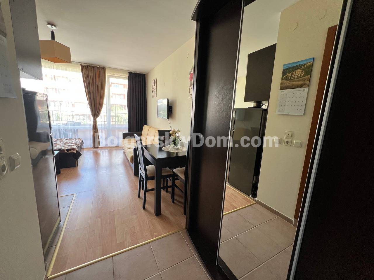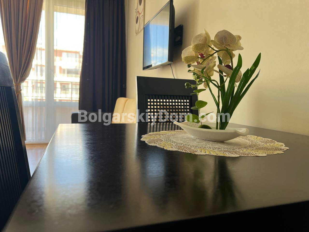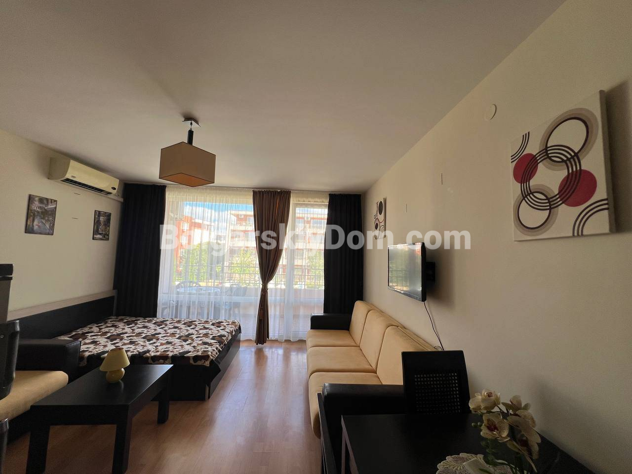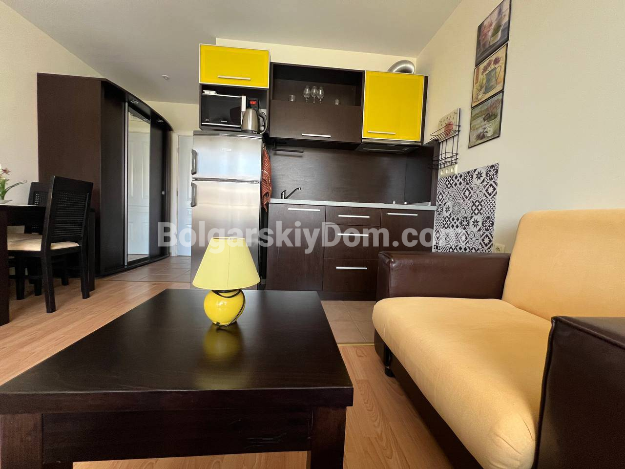 В нашем портфолио появился новый объект, который станет отличным вложением в комфортную жизнь или выгодной инвестицией. Готовы? Запускаем в продажу светлую и компактную студию метражом 40 кв.м., расположенную на втором этаже ЖК Несебр Форт, о котором практически все соискатели наслышаны только позитивно. Апартамент полностью меблирован и оборудован всем необходимым: здесь есть удобная кухонная зона с холодильником и микроволновкой, просторная кровать и зона отдыха. Современный интерьер в теплых тонах, установлен кондиционер. Большие окна и балкон обеспечивают отличное естественное освещение. Пишите/звоните своему агенту!