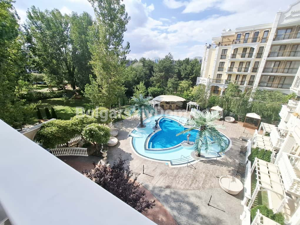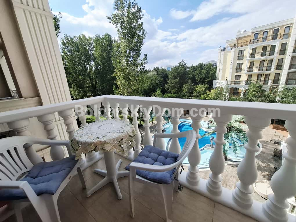 Новинка в премиум-сегменте! Компания Болгарский Дом предлагает редкую возможность приобрести просторный апартамент в одной из самых престижных сетей курорта. В жилом комплексе Свит Хоумс 6, известном своим щепетильным подходом к комфорту жильцов, продается трехкомнатная квартира площадью 68 кв.м. Она расположена на четвертом этаже и находится в отличном состоянии, причем как техническом, так и эстетическом. Планировка отличается функциональностью: предусмотрен большой коридор в качестве прихожей, а из гостиной и спален можно выйти на открытый балкон с приятным видом на бассейн.