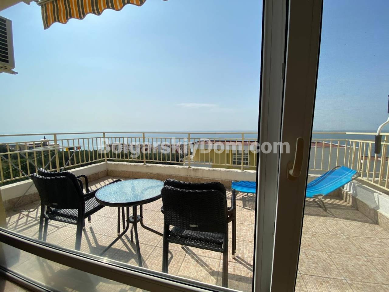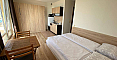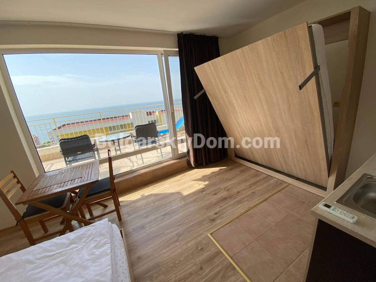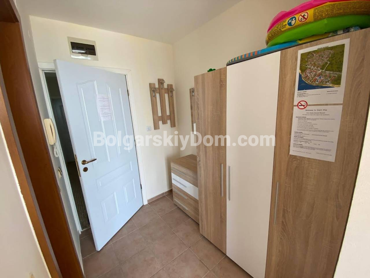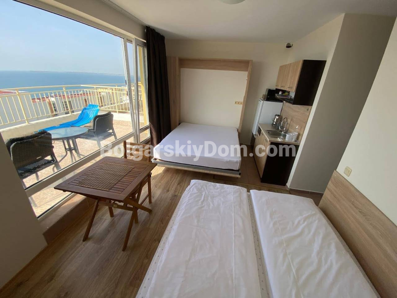 Компания Болгарский Дом предлагает идеальное место для тех, кто ищет готовый апартамент с чудесным видом на море по оправданной цене! Продается студия площадью 41 кв.м. в легендарном Краун Форт Клуб, который является частью огромного комьюнити в Святом Власе. Квартира расположена на шестом этаже и совершенно точно подходит как для отдыха, так и для инвестиций. Внутри царит атмосфера света и комфорта: просторная комната грамотно зонирована - есть два отдельных спальных места, большой обеденный столик и выход на террасу. Компактная кухня в светлых тонах полностью оборудована (холодильник, микроволновка, чайник) и имеет достаточно шкафов для хранения. С большой террасы открывается живописный вид на море. Апартамент оснащен кондиционером и современной сантехникой в санузле.