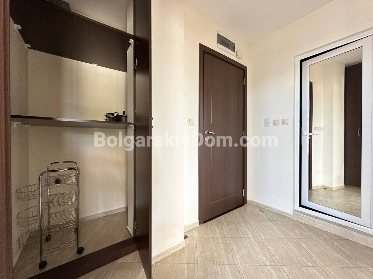 Эта уютная двухкомнатная квартира в оживленном районе Солнечного берега обеспечит вам комфортную жизнь на круглый год! 64 квадратных метра, расположена на шестом этаже современного комплекса. В апартаменте имеются: светлая гостиная с панорамными окнами и выходом на просторный балкон с навесами плюс отдельная спальня с двуспальной кроватью и огромным шкафом-купе. Санузел в теплых тонах с душем и бойлером. Кухни нет, но вся разводка под нее уже готова — вы сможете оборудовать её по своему вкусу. В прихожей - глубокий вместительный шкаф-ниша, где предусмотрено место и разводка для стиральной машины. В общем тамбуре с приятными соседями - гарнитур с зеркальным трюмо и подставкой под обувь переходят новым хозяевам.