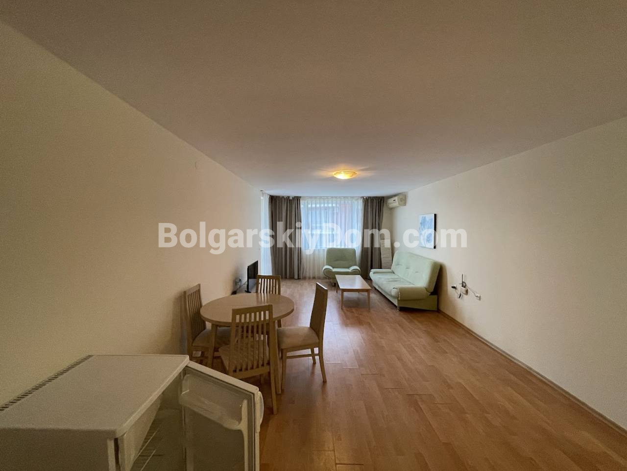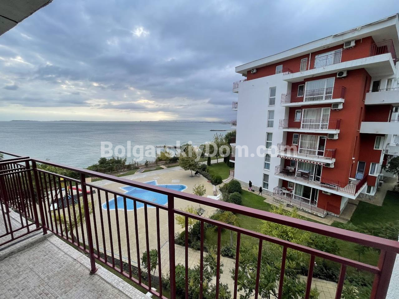 Компания Болгарский Дом нашла для вас идеальную «двушку» в причерноморье! Представляем просторную двухкомнатную квартиру квадратурой 81 кв.м. в комплексе Марина Вью Форт Бич — это ПЕРВАЯ ЛИНИЯ, всего в 100 метрах от прекрасного пляжа «Робинзон»! Апартамент расположен на 3 этаже и готов на 100%. Вас ждет огромный светлый зал, который совмещает гостиную и кухню: здесь целых два дивана, обеденный стол и выход на главный козырь квартиры - балкон с панорамным видом на море, бассейн и всю территорию. Кухня оснащена встроенной техникой, а в спальне, где стоят две односпальные кровати, есть кондиционер. Санузел отделан плиткой в теплых тонах. Здесь все реализовано для того, чтобы вам было максимально удобно, будь то короткий отпуск или жизнь у моря круглый год.