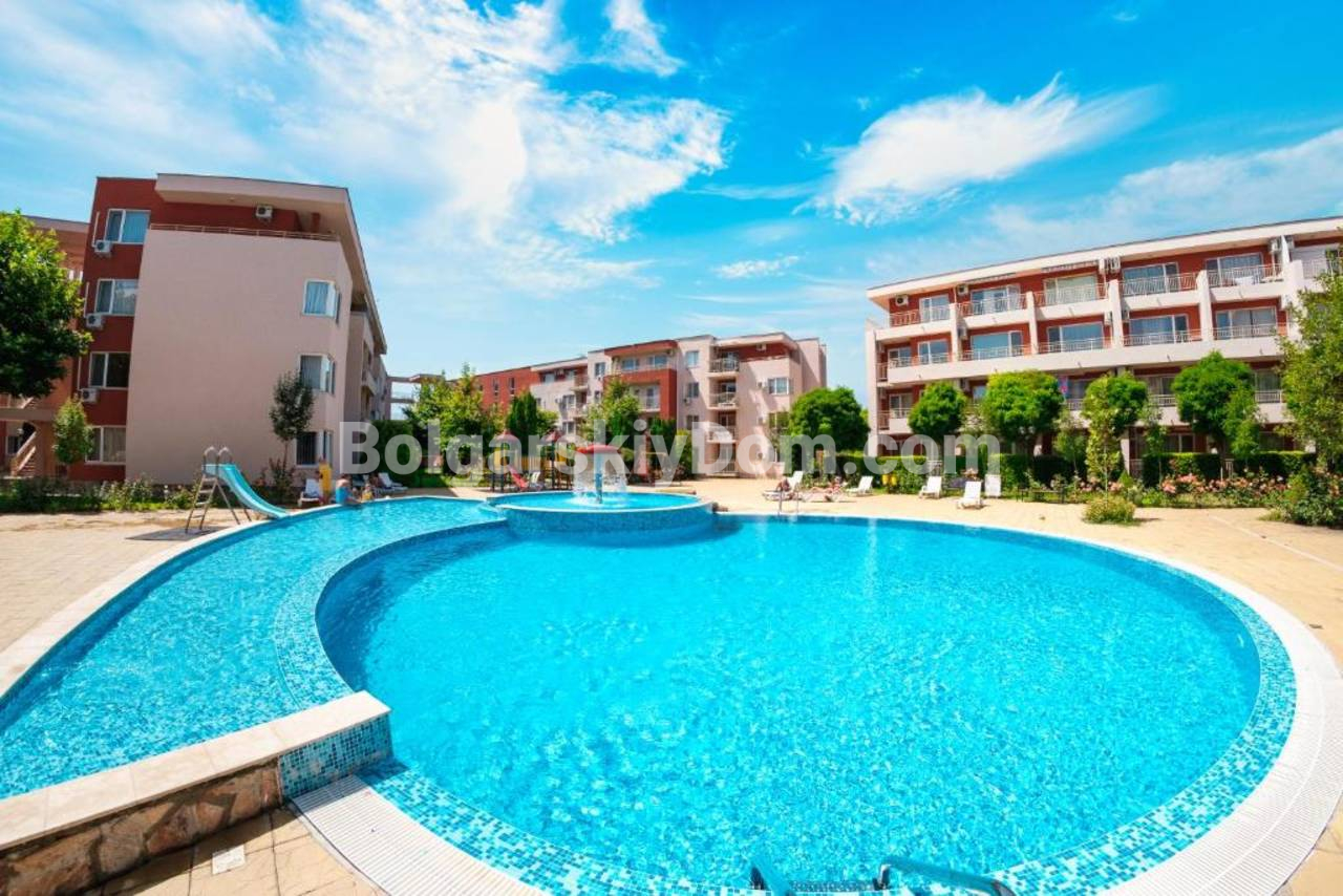 Преимущества комплекса Несебр Форт Клуб: ухоженная, закрытая и охраняемая территория; целых 6 бассейнов (с детскими зонами), места для отдыха и прогулок; гольф-поле, теннисные корты, футбольное поле, тренажёры; рестораны, магазины, супермаркет – всё в шаговой доступности. Через дорогу находится аквапарк, а в 10 минутах ходьбы - центр курорта. Идеальное предложение как для приятного летнего отдыха, так и для выгодной сдачи в аренду. До моря 900 метров.