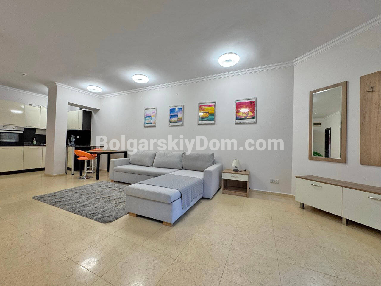 Новинка в топовом комплексе, в максимальной ликвидном формате - новый объект в каталоге городской недвижимости от Болгарского дома! В комплексе Райский Сад на первой линии в Святом Власе появилась в продаже студия, которая даст фору многим двухкомнатным квартирам. Ее общая площадь - целых 60 кв.м., включая шикарную террасу 12 кв.м. Апартамент расположен на первом этаже и имеет прямой выход на собственную лужайку, что создает ощущение загородного дома у моря! Квартира очень грамотно зонирована на спальную, кухонную и обеденную зоны. Вы получаете студию, полностью укомплектованную новой мебелью и бытовой техникой.