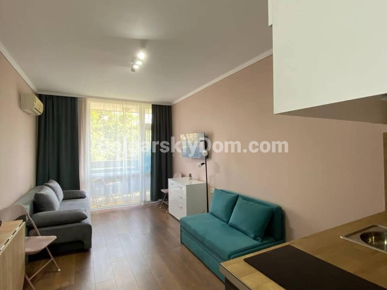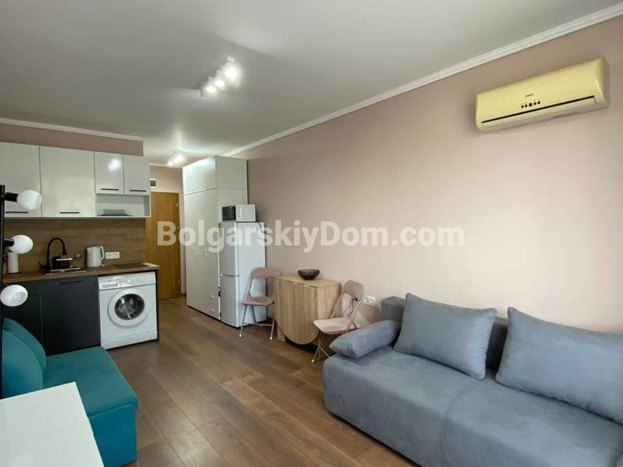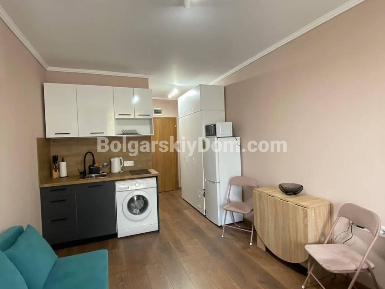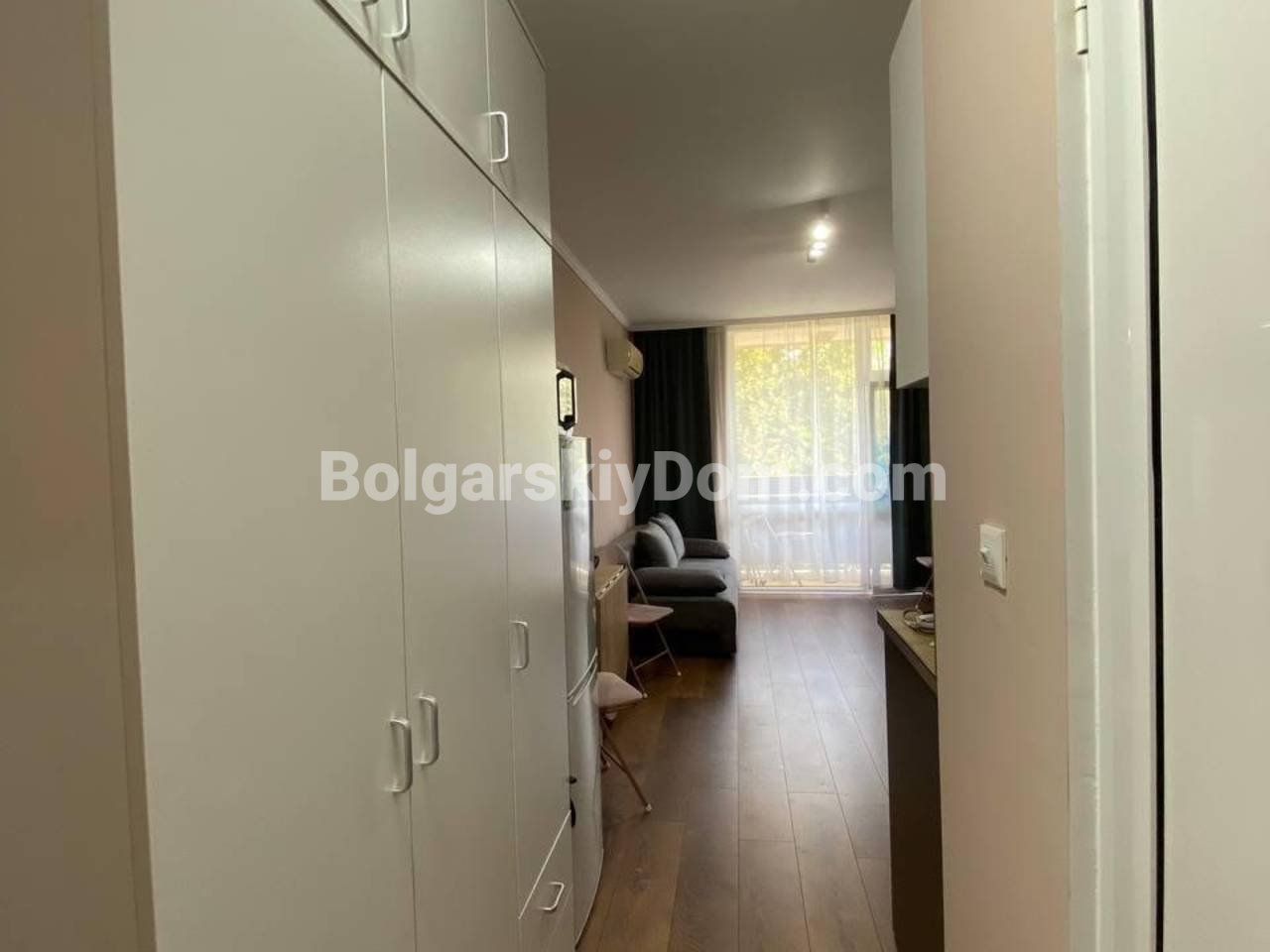 Ищете идеальный компактный старт на Солнечном Берегу, где не придется тратить время на обустройство? Компания Болгарский Дом представляет студию площадью 31 кв.м., расположенную на пятом этаже в семейном комплексе Гербер 2. Этот апартамент — готовое решение: он уже меблирован и полностью оборудован техникой, так что ключи можно вручать прямо в аэропорту. Планировка удобная, а благодаря расположению на высоком этаже, здесь всегда тихо и светло. Наличие лифта, естественно, прилагается.