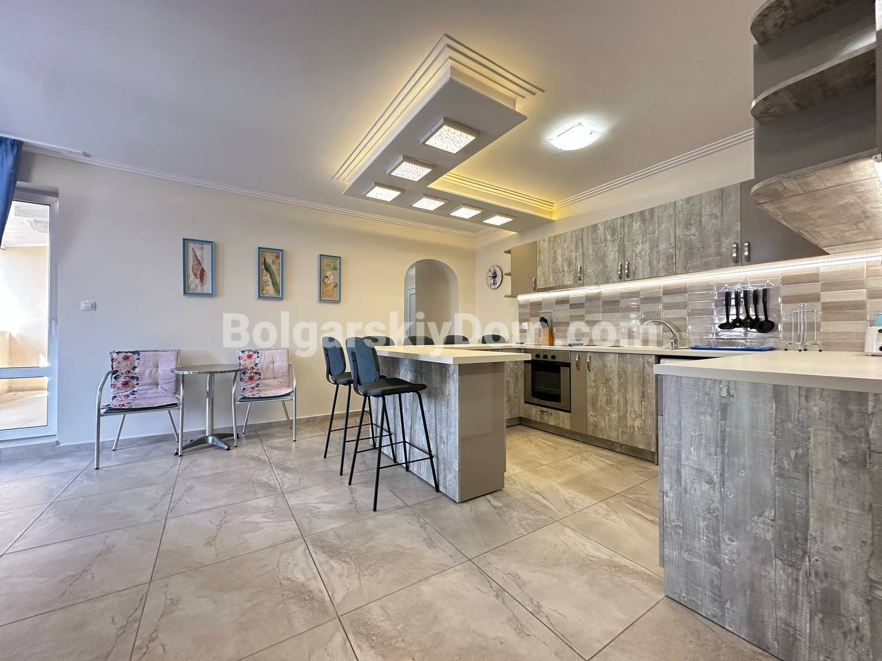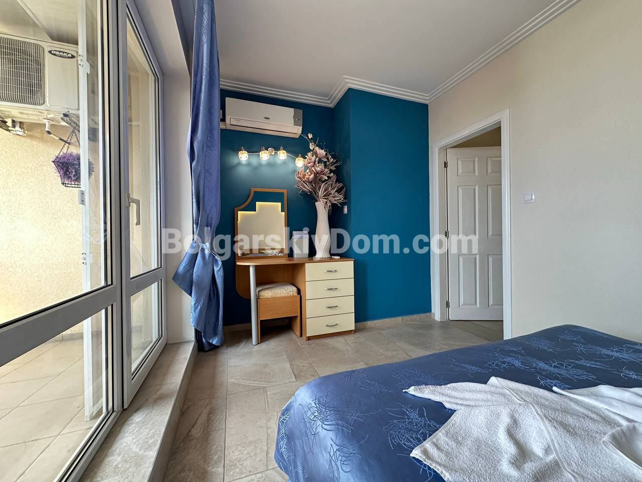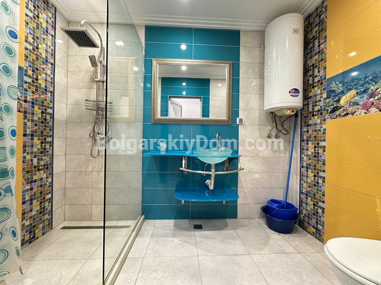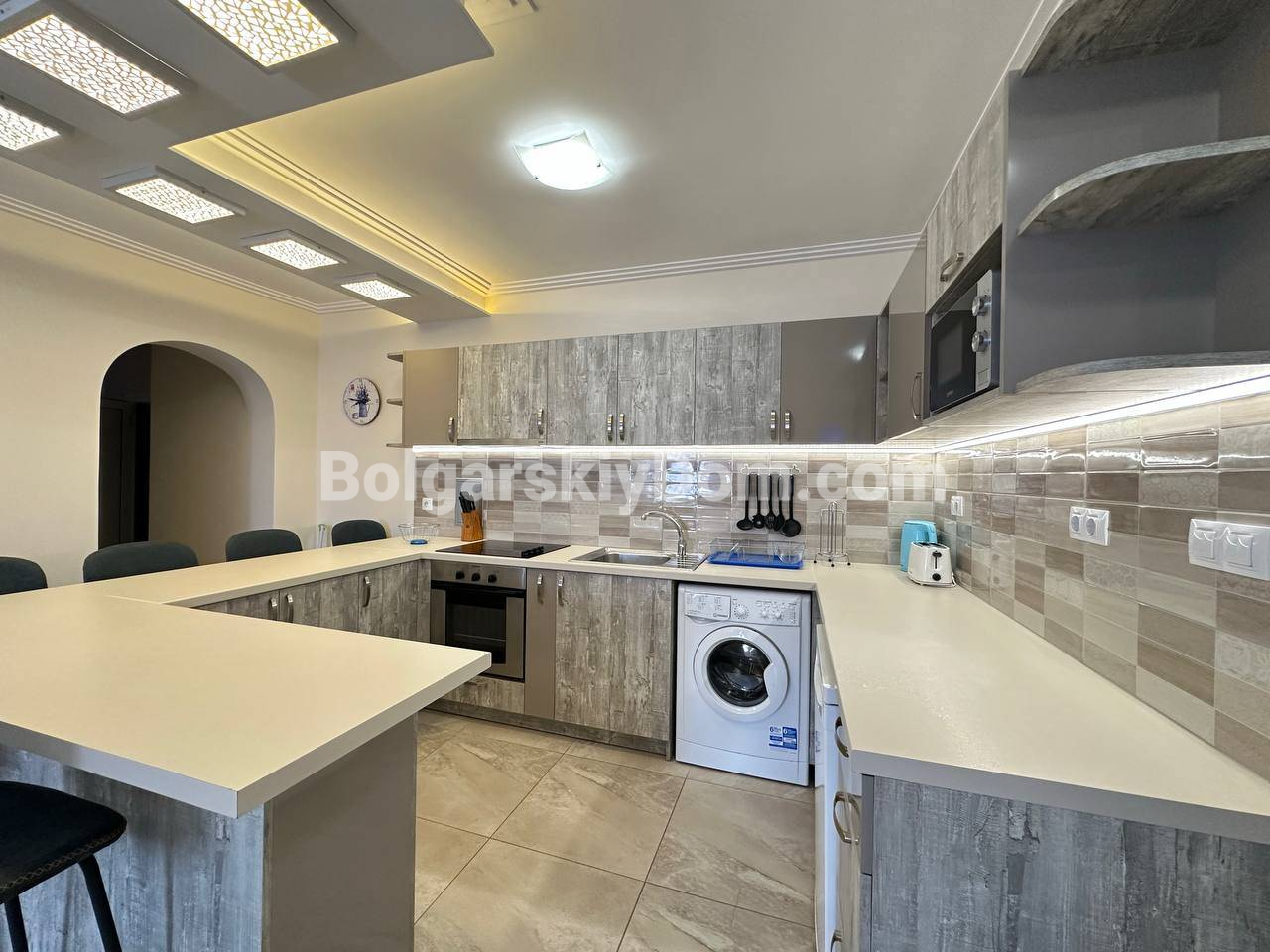 Забудьте о скучных интерьерах: сегодня компания Болгарский Дом представляет по-настоящему яркую и просторную квартиру с дизайнерскими акцентами! На шестом, последнем этаже комплекса Си Дримс продается трехкомнатный апартамент площадью 85 кв.м., полностью готовый к заселению. Здесь вас ждет стильная угловая кухня с полным комплектом встроенной техники (от духовки и плиты до микроволновки и стиральной машины). Гостиная наполнена светом благодаря большим окнам и оформлена в уютных синих тонах, а в спальнях есть все для комфорта, включая панорамное окно с выходом на балкон в главной комнате. Даже ванная комната оформлена с яркими, современными акцентами и стеклянной раковиной. Отличная стоимость, идеальное жилое состояние.