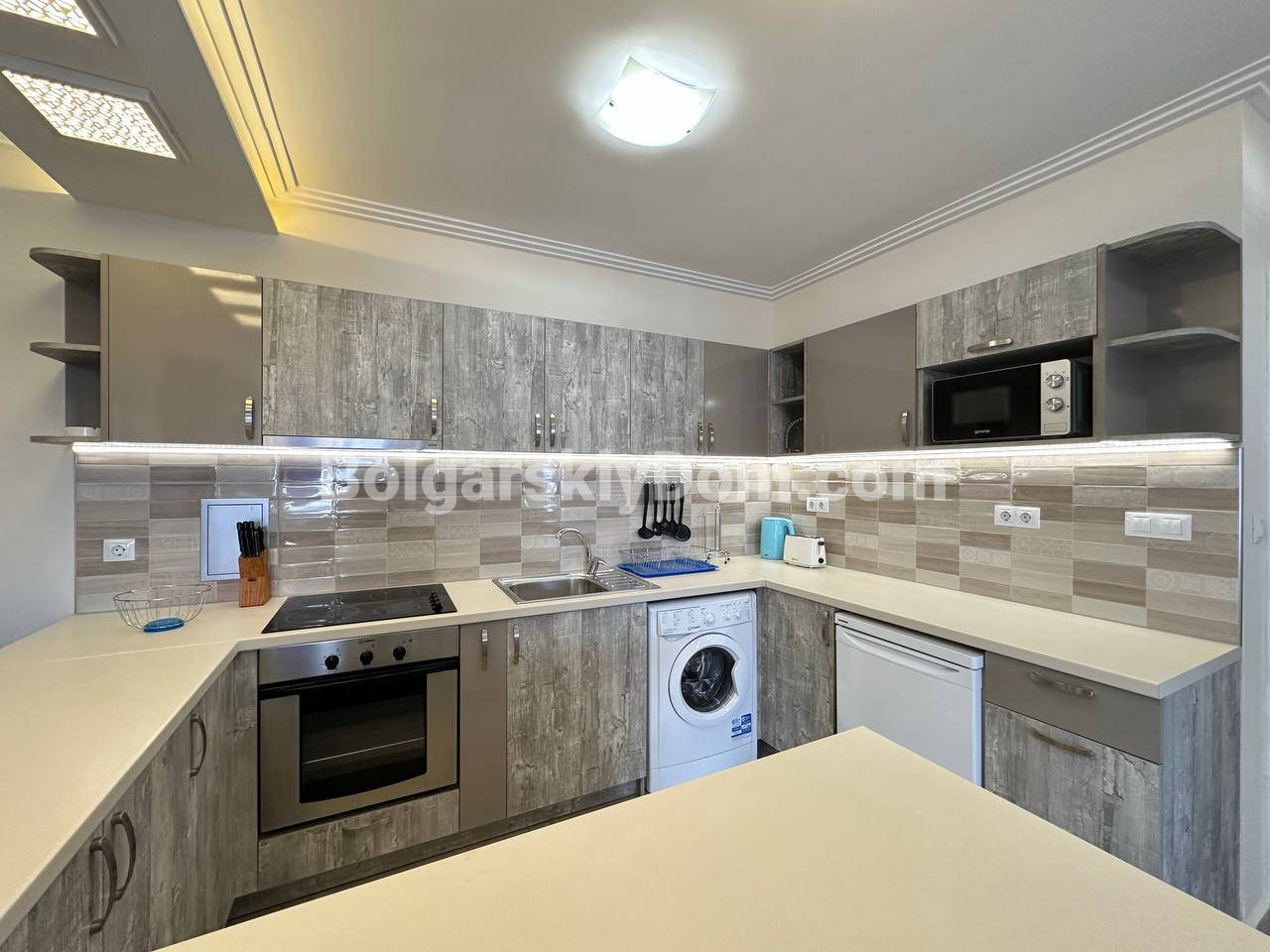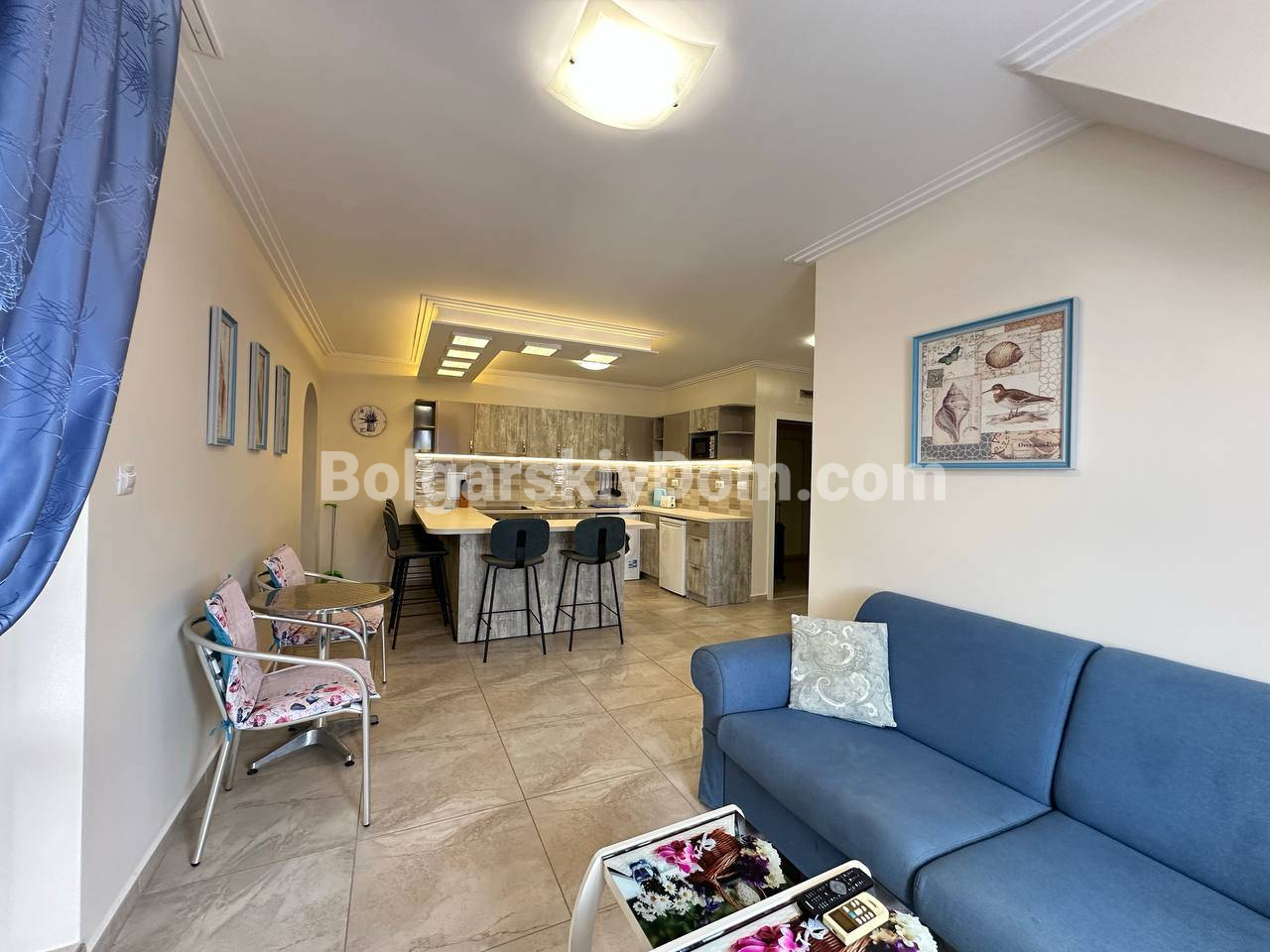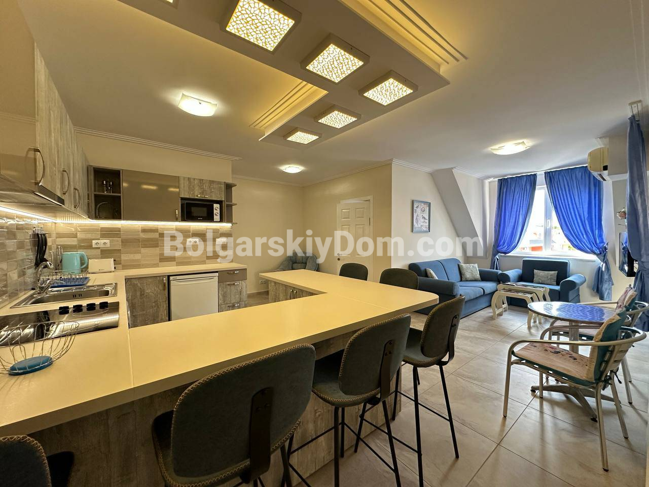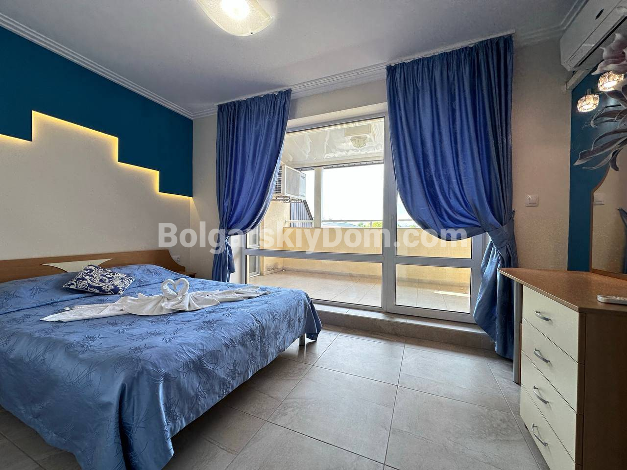 Забудьте о скучных интерьерах: сегодня компания Болгарский Дом представляет по-настоящему яркую и просторную квартиру с дизайнерскими акцентами! На шестом, последнем этаже комплекса Си Дримс продается трехкомнатный апартамент площадью 85 кв.м., полностью готовый к заселению. Здесь вас ждет стильная угловая кухня с полным комплектом встроенной техники (от духовки и плиты до микроволновки и стиральной машины). Гостиная наполнена светом благодаря большим окнам и оформлена в уютных синих тонах, а в спальнях есть все для комфорта, включая панорамное окно с выходом на балкон в главной комнате. Даже ванная комната оформлена с яркими, современными акцентами и стеклянной раковиной. Отличная стоимость, идеальное жилое состояние.