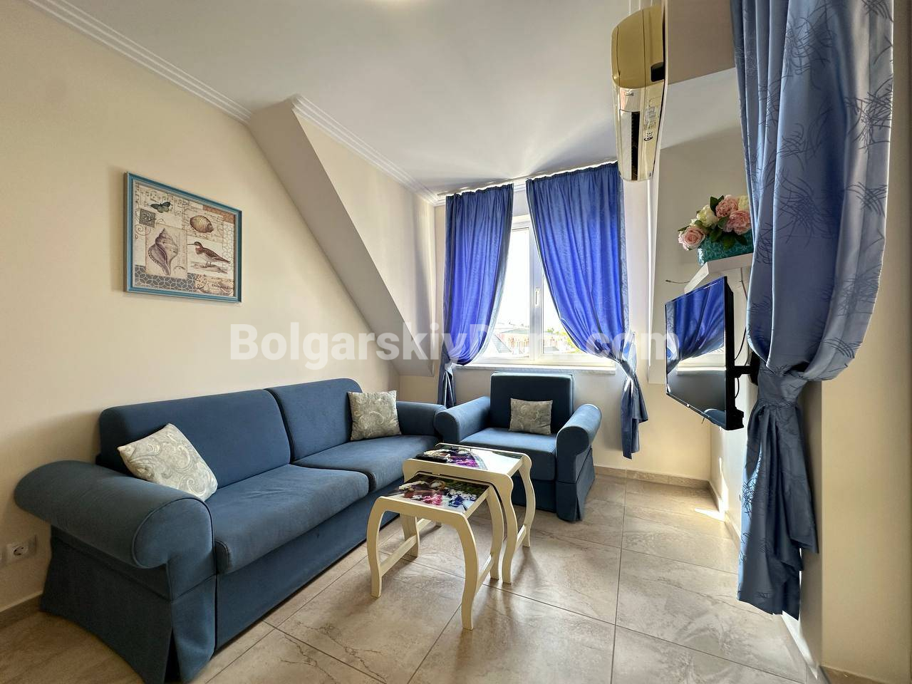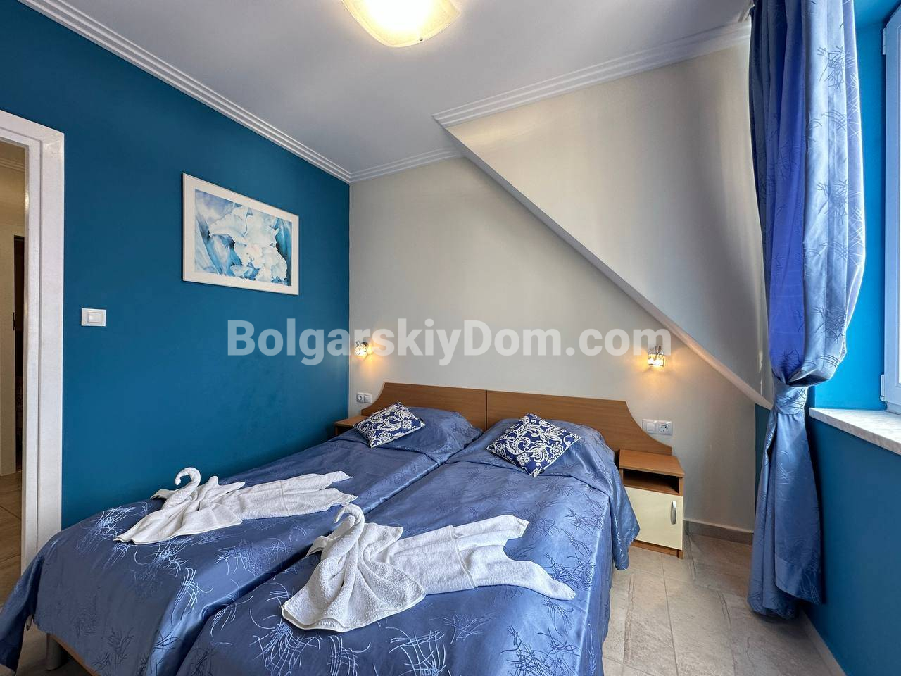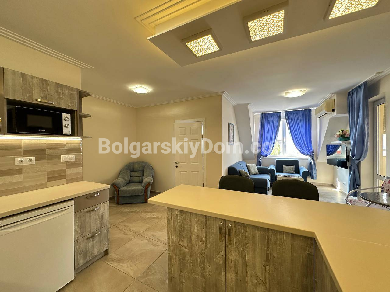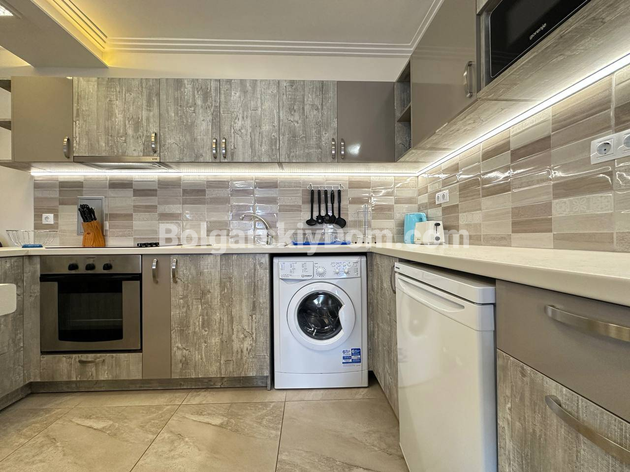 Забудьте о скучных интерьерах: сегодня компания Болгарский Дом представляет по-настоящему яркую и просторную квартиру с дизайнерскими акцентами! На шестом, последнем этаже комплекса Си Дримс продается трехкомнатный апартамент площадью 85 кв.м., полностью готовый к заселению. Здесь вас ждет стильная угловая кухня с полным комплектом встроенной техники (от духовки и плиты до микроволновки и стиральной машины). Гостиная наполнена светом благодаря большим окнам и оформлена в уютных синих тонах, а в спальнях есть все для комфорта, включая панорамное окно с выходом на балкон в главной комнате. Даже ванная комната оформлена с яркими, современными акцентами и стеклянной раковиной. Отличная стоимость, идеальное жилое состояние.