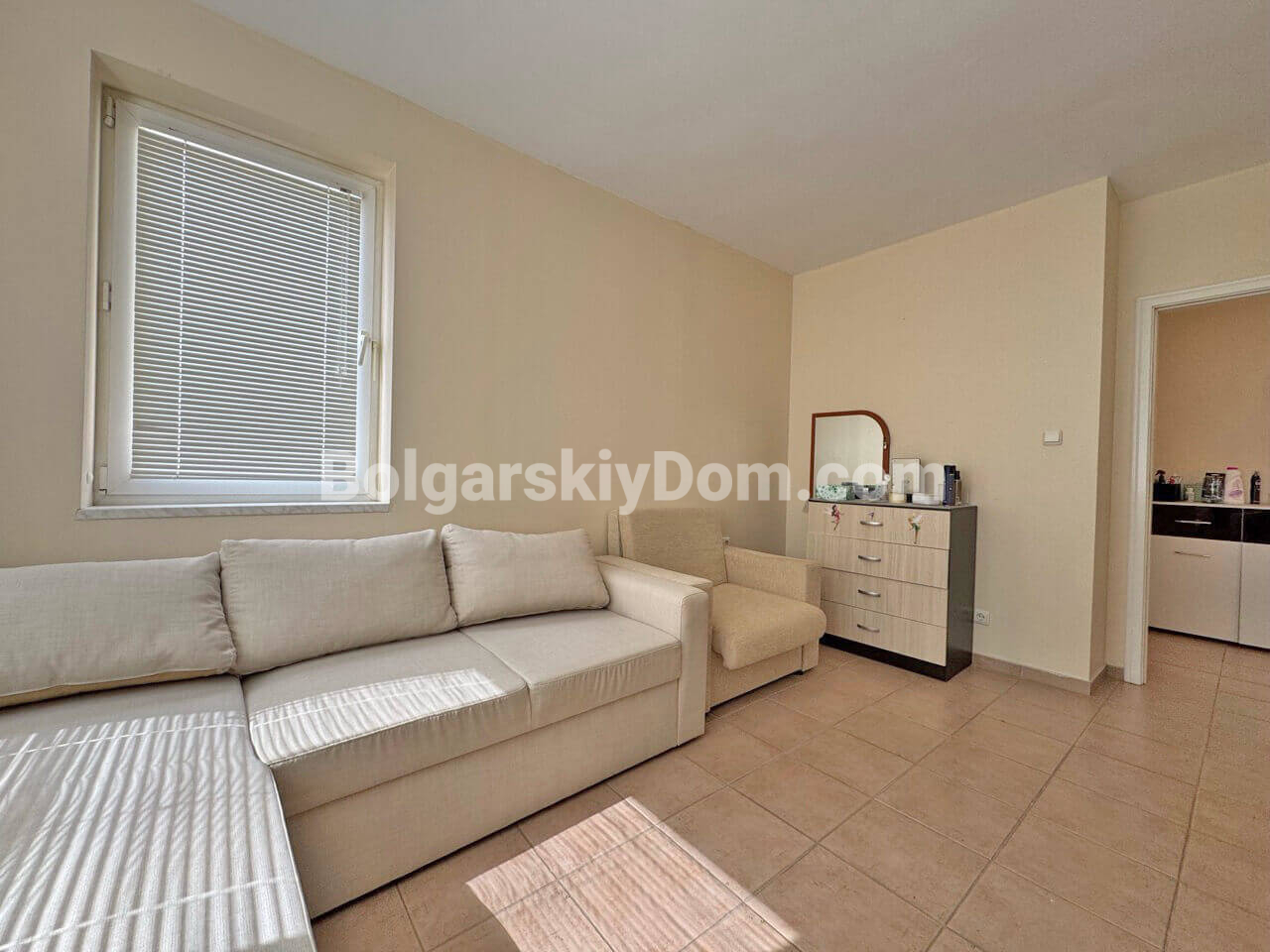 Если вам нужно просторное, но полностью готовое жилье в центральной части курорта, компания Болгарский Дом предлагает отличный вариант. Продается двухкомнатная квартира площадью 63 кв.м. в закрытом комплексе Си Дримс на Солнечном Берегу. Апартамент расположен на четвертом этаже, откуда открывается приятный вид на бассейн. Планировка максимально комфортна: прихожая, просторная гостиная, объединенная с большой кухней, отдельная спальня, ванная комната и терраса. Это готовое решение для любых целей - остается только привезти личные вещи.
