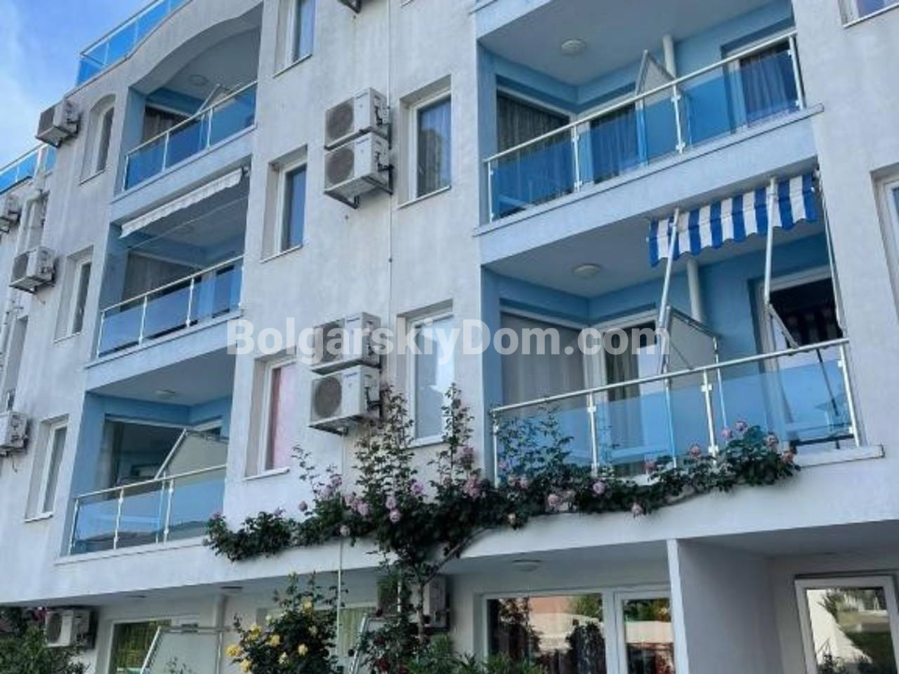 Сам комплекс Одиссей расположен в живописном районе Аурелия, это своего рода золотая середина между уютным поселком Равда и новой частью исторического Несебра. Это место буквально утопает в зелени, создавая невероятно уютную атмосферу. До песчаного пляжа всего 300 метров – идеальное расстояние для ежедневных прогулок. На территории комплекса созданы все условия для релакса и досуга: два больших бассейна с зонами для загара, а также отдельный детский бассейн. Коммунальное обслуживание (такса) 12 евро, до моря всего 300 метров.