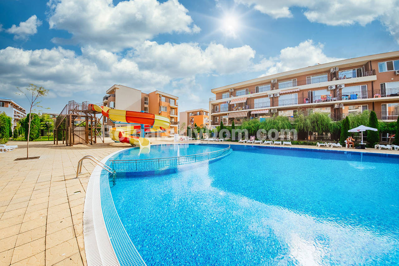 Комплекс Несебр Форт Клуб заслуженно носит звание одного из самых популярных и зеленых на всем Солнечном Берегу, что подтверждает его отличная репутация и стабильный туристический поток. Он является частью огромной курортной инфраструктуры Fort Noks, известной своими многочисленными бассейнами, ресторанными зонами и обширной парковой территорией. Это топ для инвестиций благодаря закрытой и ухоженной территории, расположенной всего в 900 метрах от моря. Годовая такса обслуживания составляет 13,5 евро – это разумная плата за доступ к столь масштабным удобствам.
