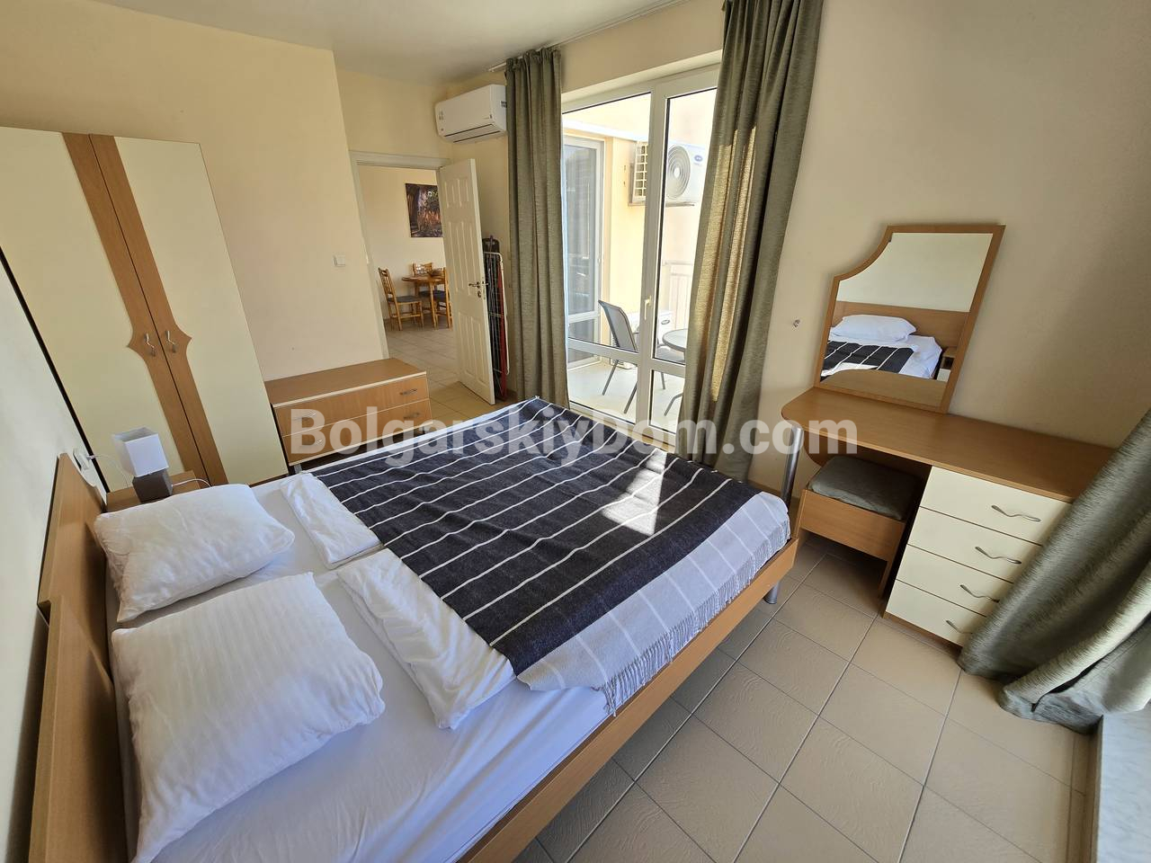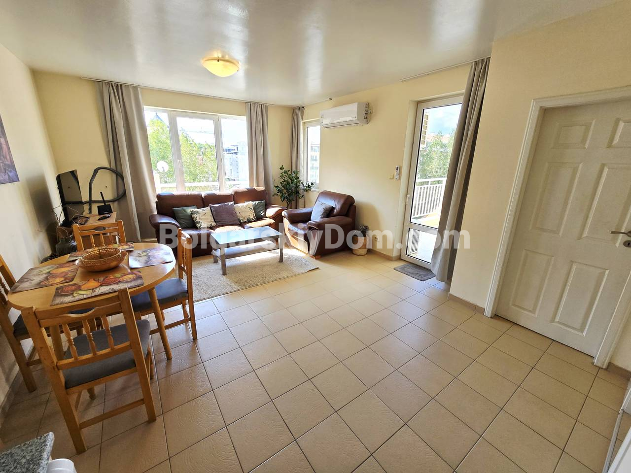 Предлагаем на продажу отличную двухкомнатную квартиру в современном жилом комплексе Си Дримс, расположенном в одном из самых востребованных районов курорта Солнечный берег. Метраж - 65 кв.метров, четвертый (предпоследний) этаж. Светлая гостиная с отдельной кухонной зоной в нише и обеденной зоной, отдельная спальня с двумя большими окнами, санузел с душкабиной и уютная терраса с зоной отдыха — идеальное место для утреннего кофе или вечера с бокалом вина. Квартира продаётся с мебелью и бытовой техникой — можно заехать и жить сразу! Состояние отличное, работает лифт, есть отдельная партида на электроэнергию.
