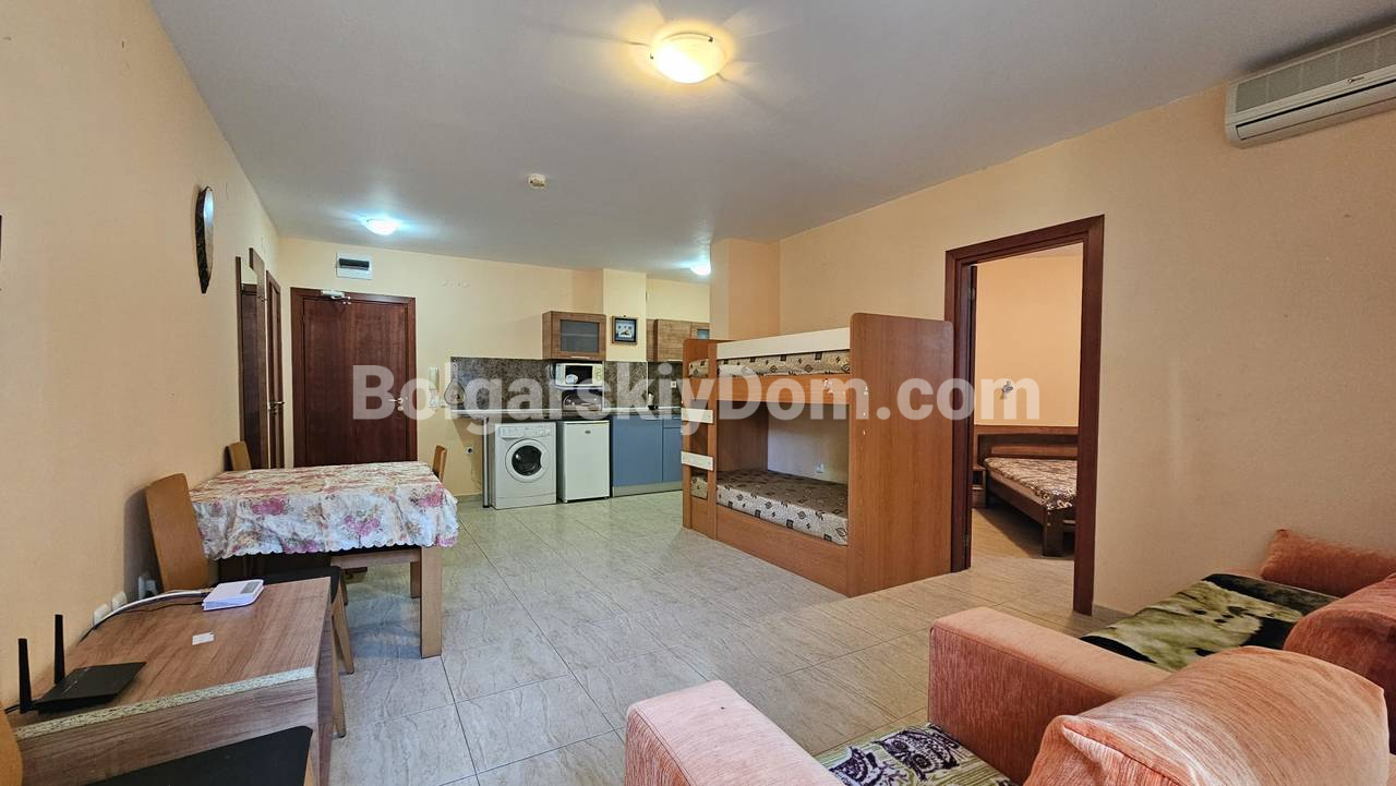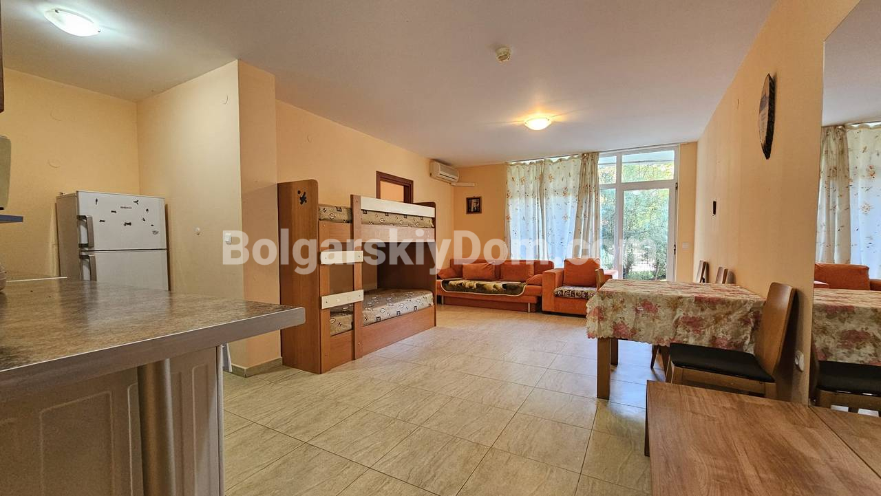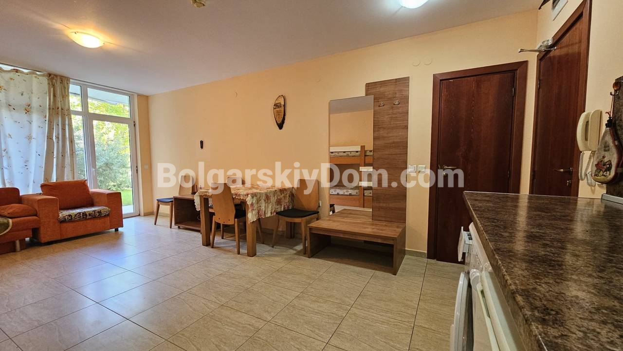 Зачем мечтать о домике с садом, если можно получить его курортную версию с видом на лужайку и бассейн? Компания Болгарский Дом представляет двухкомнатную квартиру площадью 50 кв.м. в комплексе Сан Вилладж. Этот апартамент расположен на первом этаже и имеет огромное преимущество: просторная терраса открывает прямой выход на ухоженную лужайку – идеальное место для утреннего кофе. Планировка классическая и удобная: гостиная с кухонной зоной, отдельная спальня и современная ванная комната. Квартира продается полностью меблированной, находится в хорошем состоянии и готова к мгновенному заселению. Ждем вашего звонка!