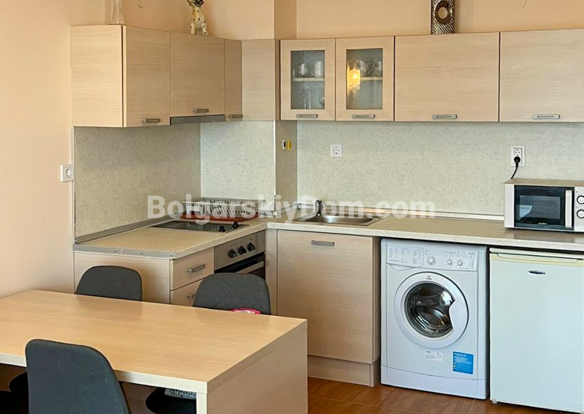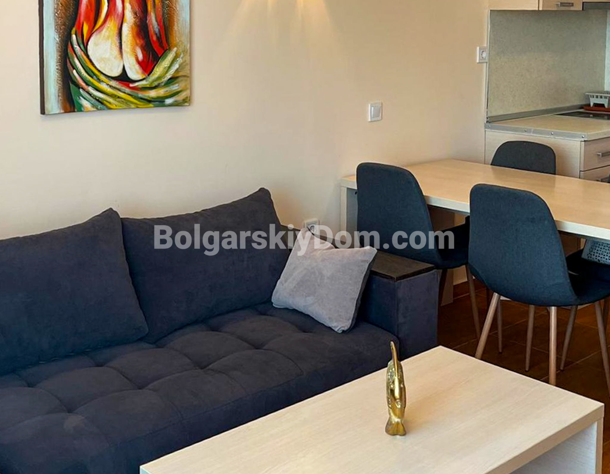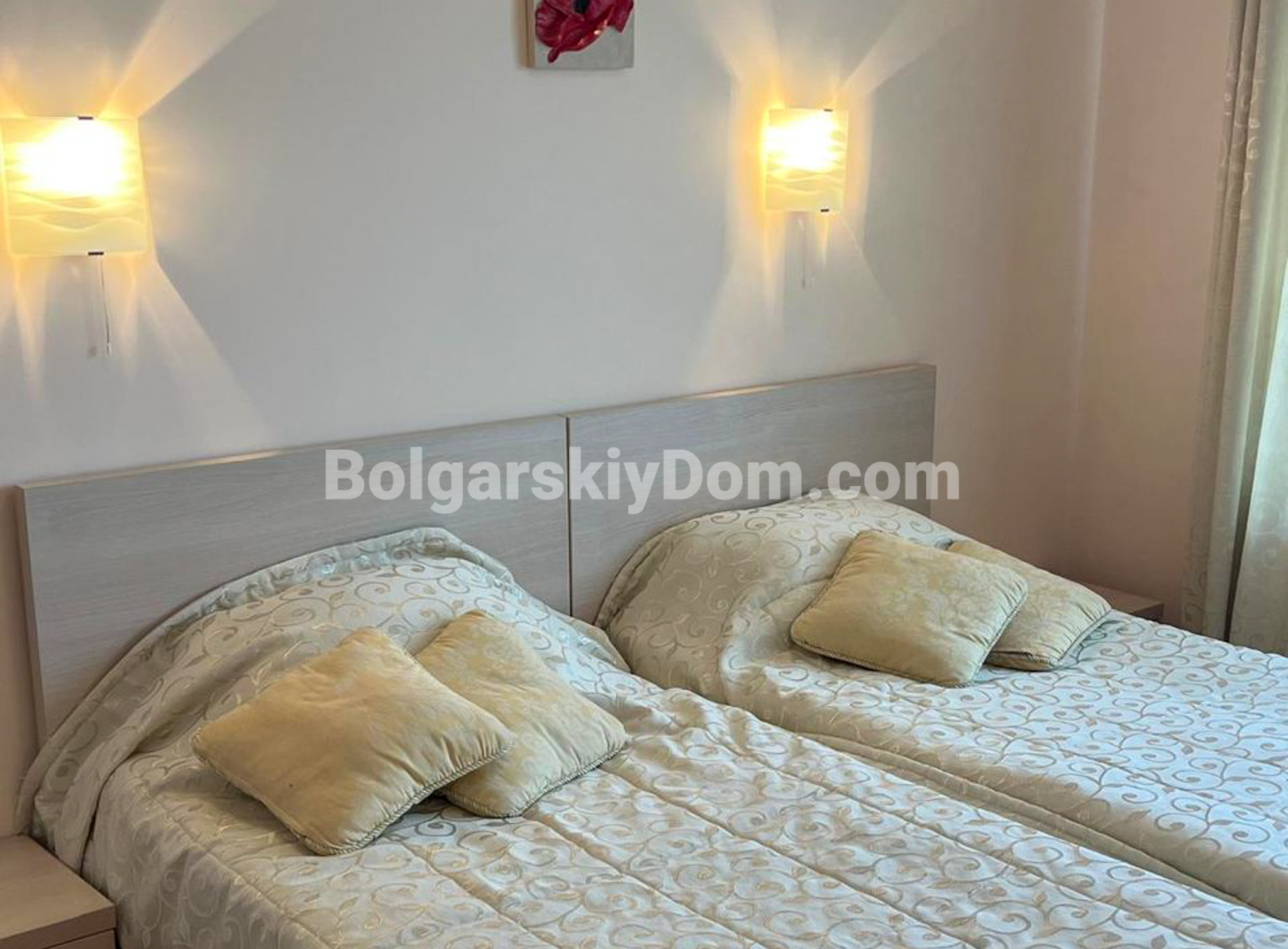 Что может быть лучше, чем просыпаться с панорамным видом на море, не выходя из спальни? Компания Болгарский Дом запускает в продажу апартамент, который полностью оправдывает свое название: двухкомнатная квартира площадью 65 кв.м. в комплексе Панорама Дримс. Ключевой плюс этого объекта, расположенного на четвертом этаже, – это большой балкон, с которого открывается потрясающий, панорамный вид на море и бассейн комплекса. Квартира имеет классическую и удобную планировку: отдельная спальня и просторная кухня-гостиная. Апартамент укомплектован всей необходимой мебелью и техникой, что означает полную готовность к немедленному заселению.