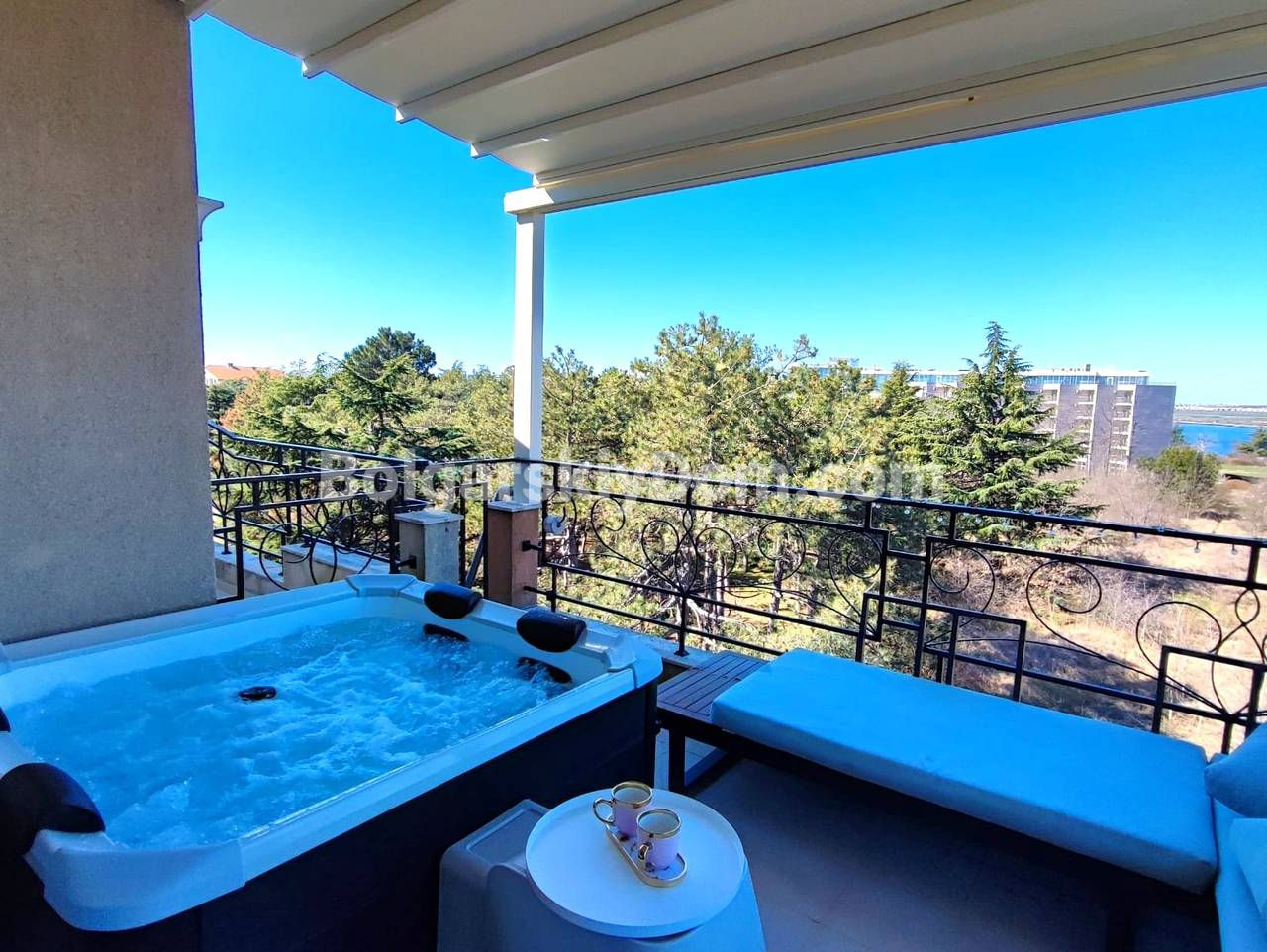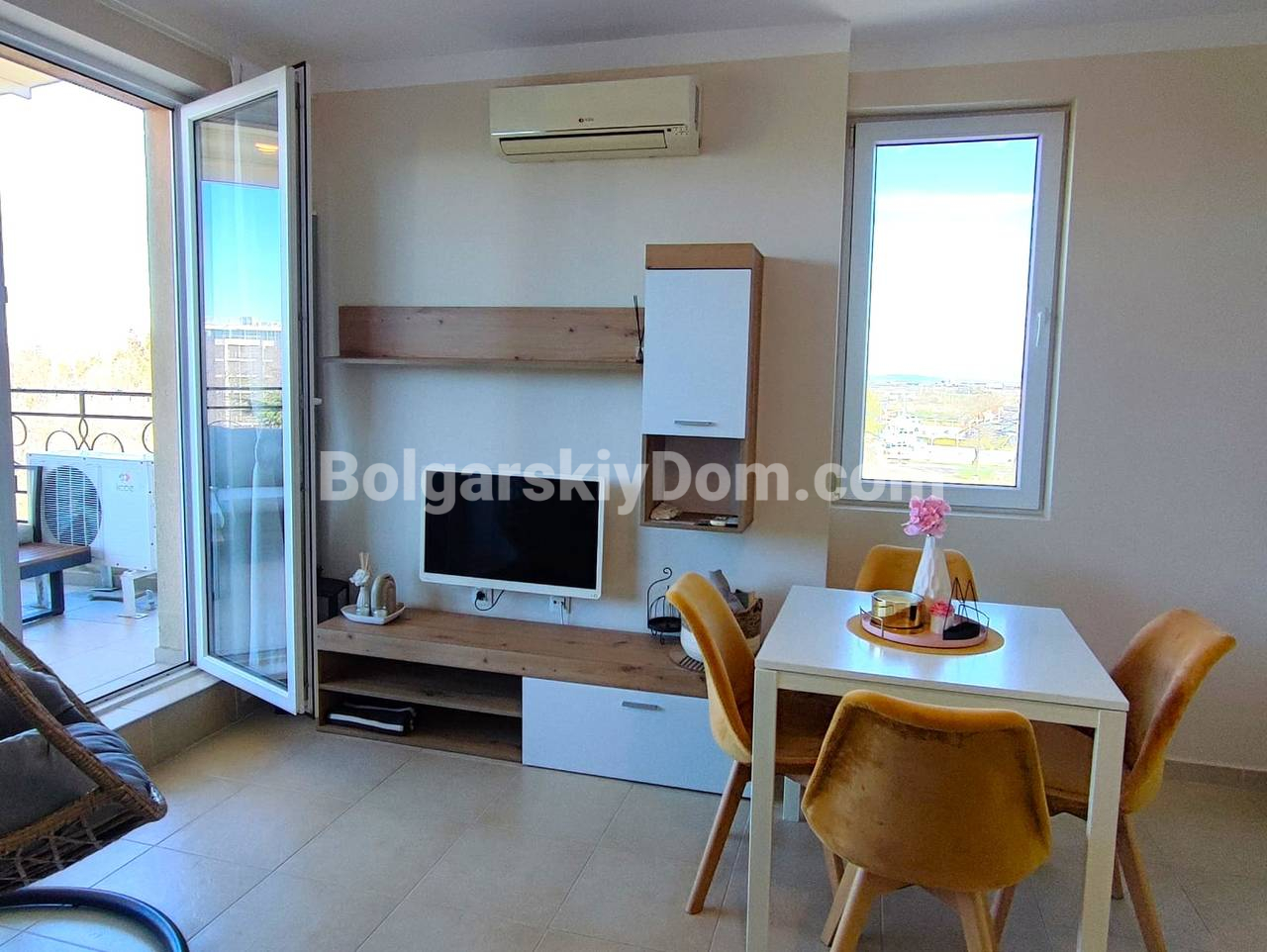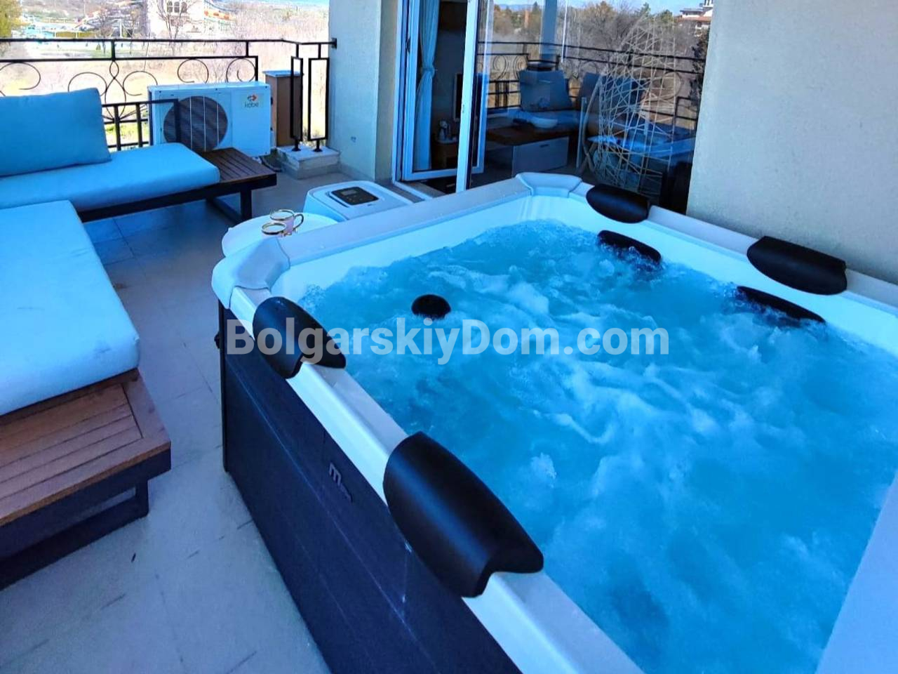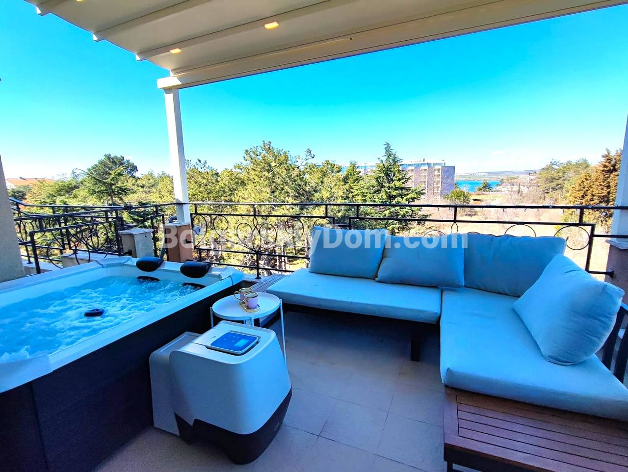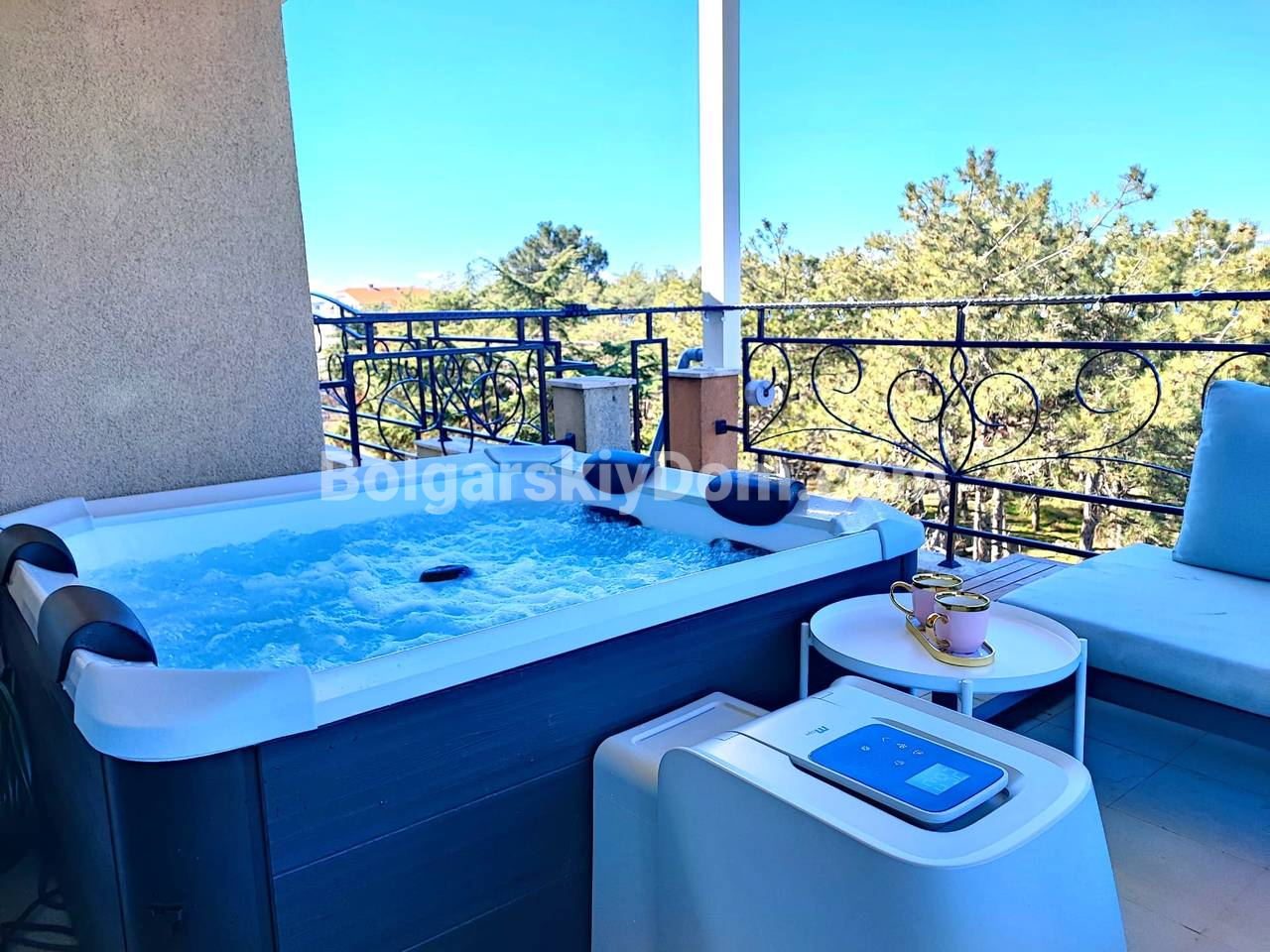 Как насчет того, чтобы иметь собственный спа-уголок прямо на балконе с видом на город? Компания Болгарский Дом презентует вам просторную двухкомнатную квартиру площадью 62 кв.м. в небольшом семейном комплексе на бальнеологическом курорте Поморие. Расположенный на четвертом этаже в современном доме с лифтом, этот апартамент имеет идеальную планировку: гостиная с кухней, отдельная спальня и просторная ванная. Но главная изюминка – это большой балкон, оборудованный зоной отдыха и собственным джакузи! Квартира продается полностью с мебелью и бытовой техникой, а благодаря наличию Акта 16 и бытовых коммунальных тарифов, жилье идеально подходит для постоянного проживания.